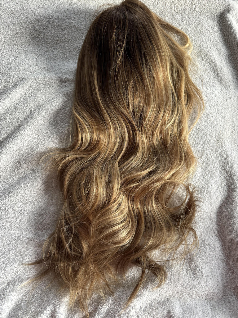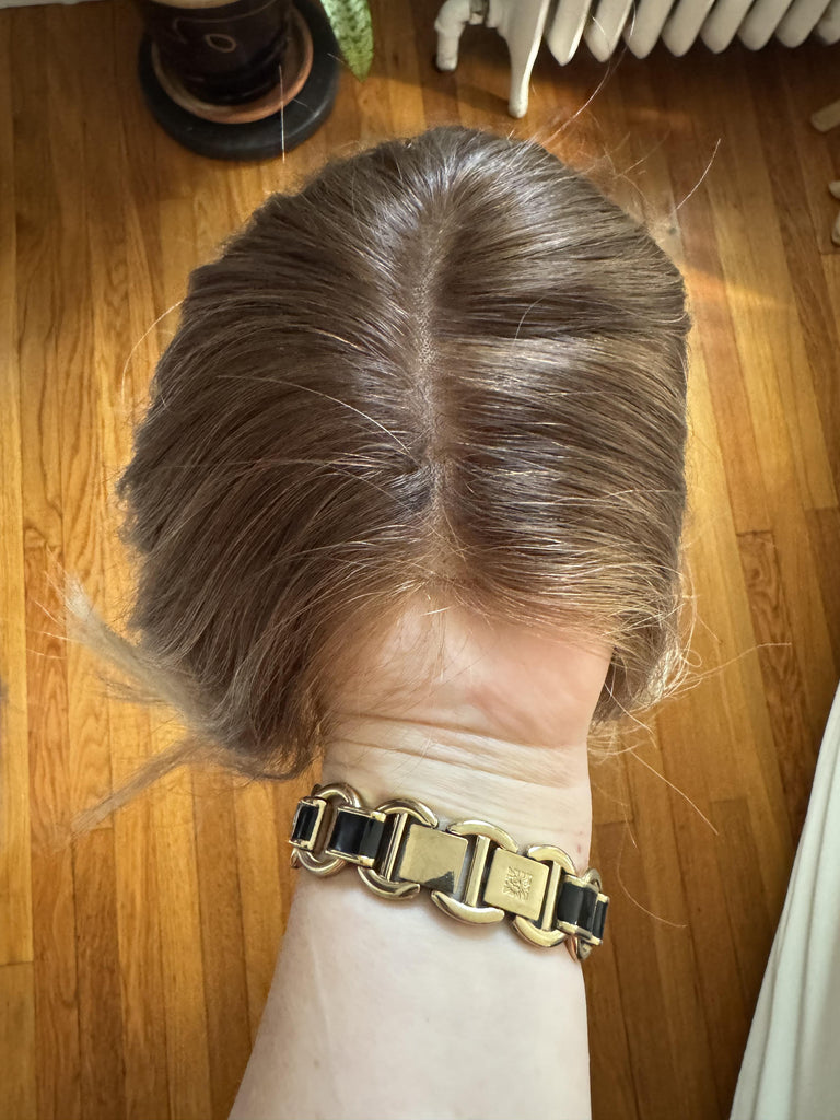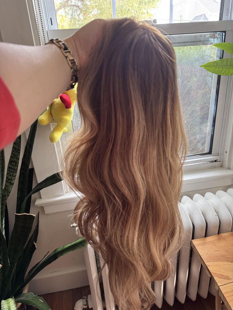 Other: This is a Chavie Russell “Red Label” wig crafted with all hand chosen virgin human hair. This exquisite wig features a handcrafted lace top that offers an undetectable, seamless blend with the scalp, ensuring a natural look and comfortable fit. It was bought for a wedding and worn 4 times total. I am usually a size small with a 21" circumference and this wig fit just right.