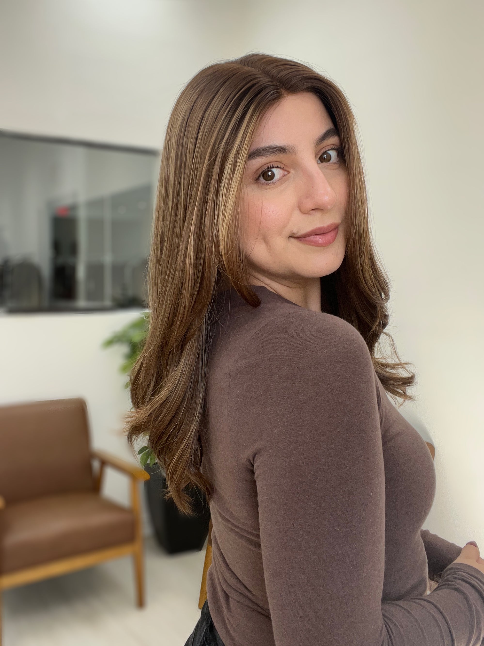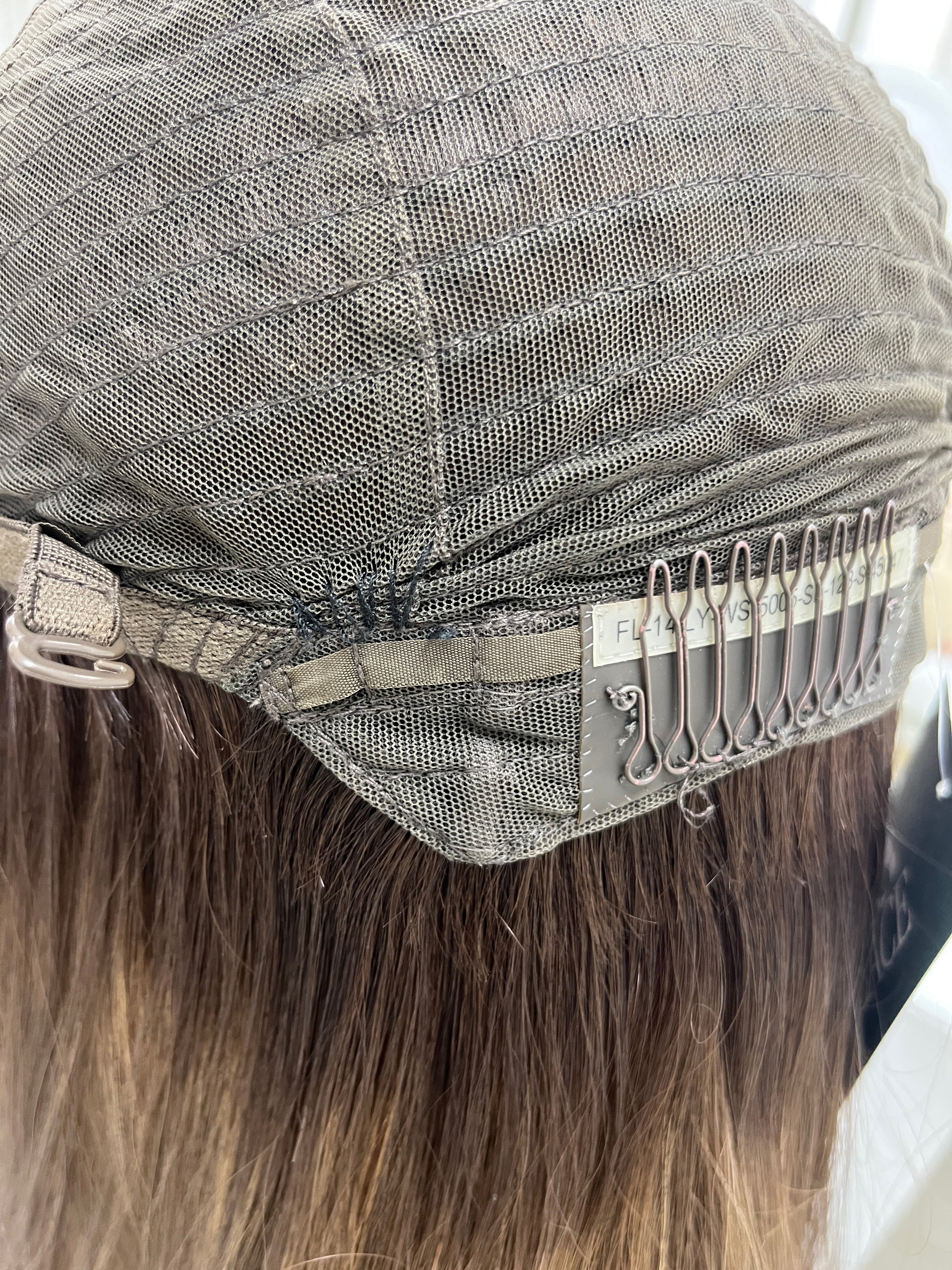 Follea Rene wigs can range from $2900-$4500 depending on color and length so this wig is a great value find! This piece is so dimensional not only in color but style as it has beautiful cascading layers and face framing that really brighten the face and provide so much movement throughout.