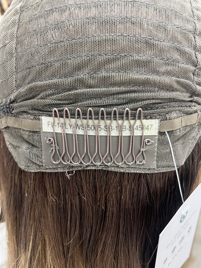 Other: Medium light density (about 120-125%). Lace is cut very close to the hairline in a jagged method. Knots are not bleached or plucked. There is light makeup staining near the front of the lace that is slightly visible in those areas. Light wear and tear on the nape comb. The cap has been resized originally a size small to an extra small. On one of the sides near the nape, thread was sewn over the wefts (can be removed with a seam ripper).