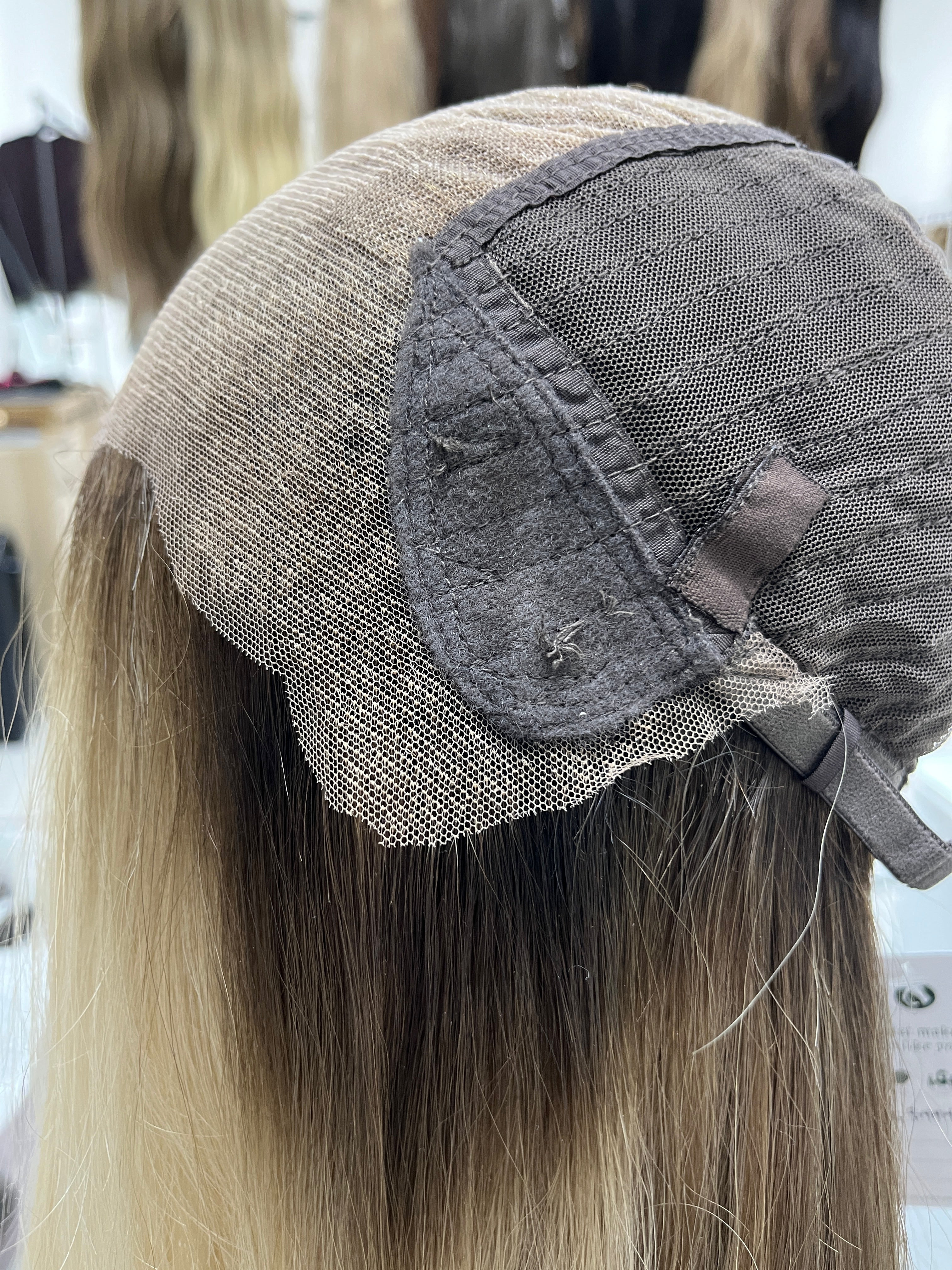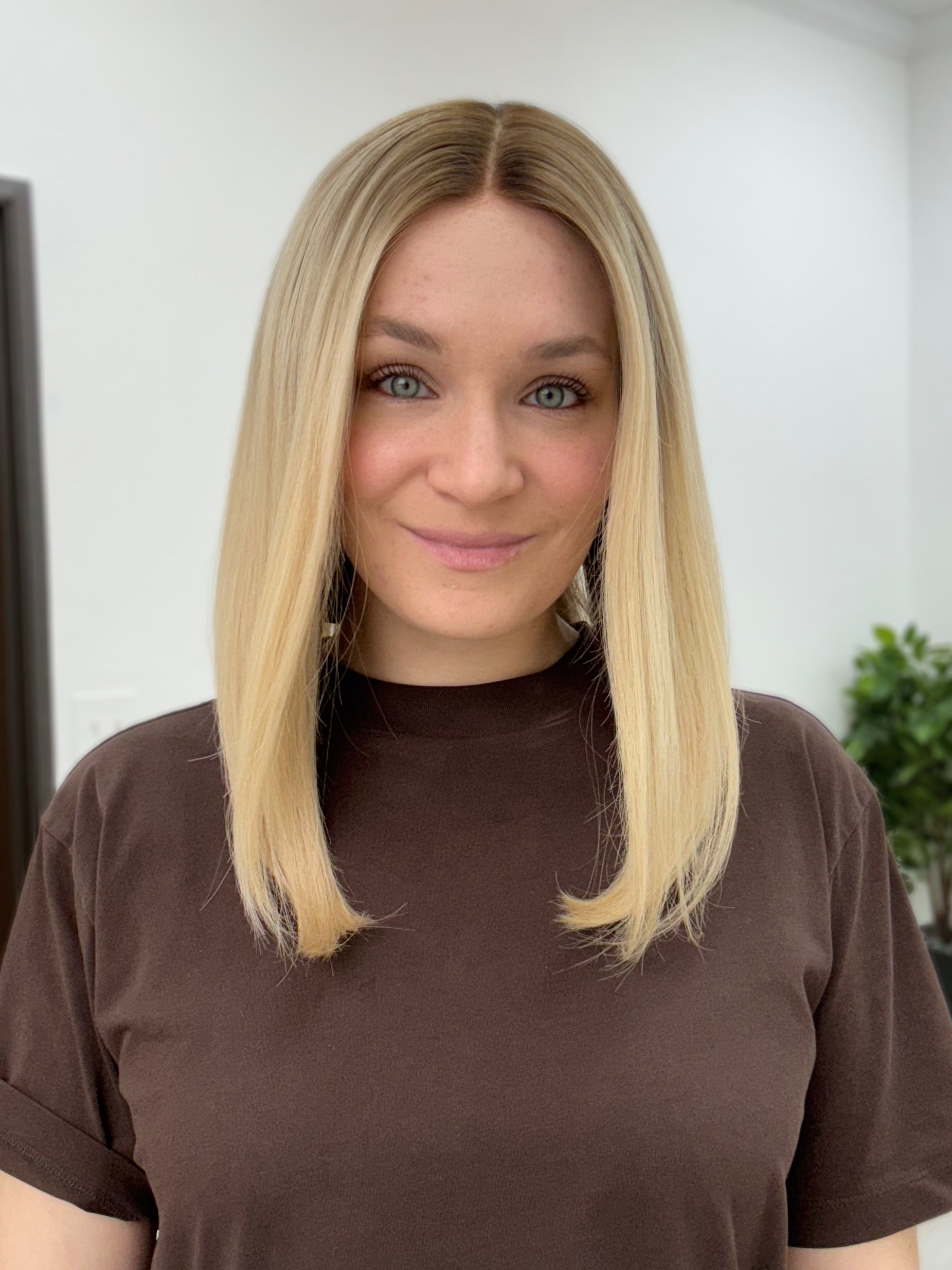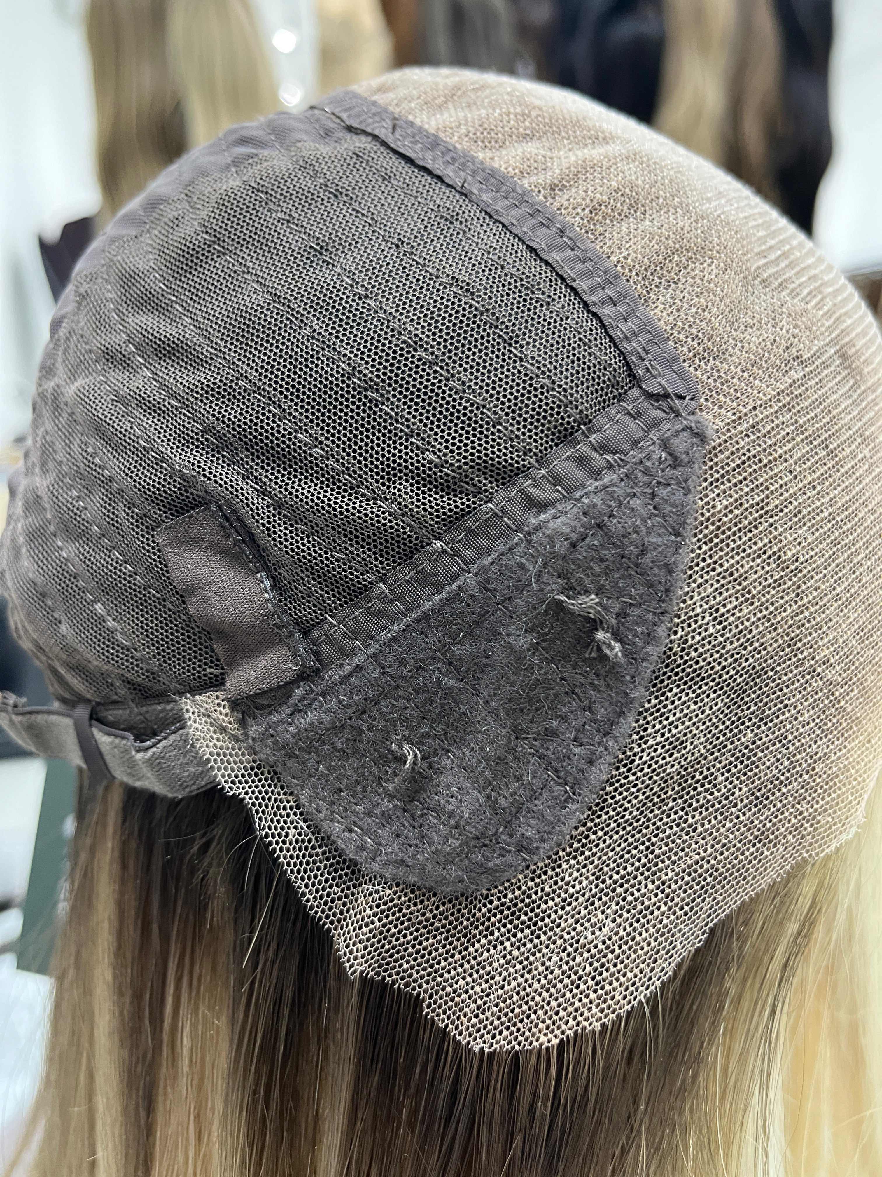 A stunning blonde Bijoux lace top wig made with Mongolian hair. The wig feels silky and soft, with a gorgeous shine overall. Mongolian hair is known for its smooth texture and easy manageability. A great option for a mid length blonde wig!