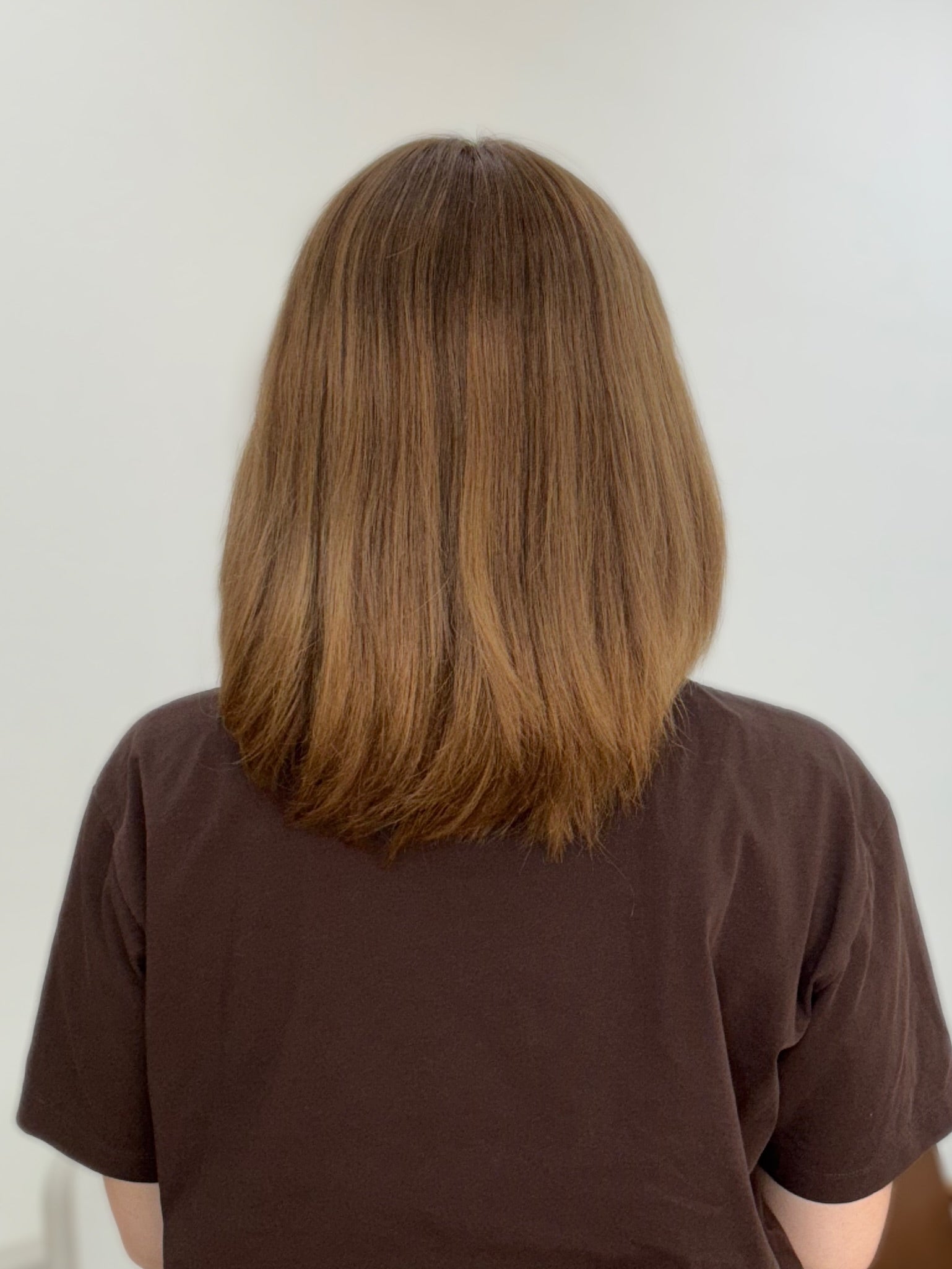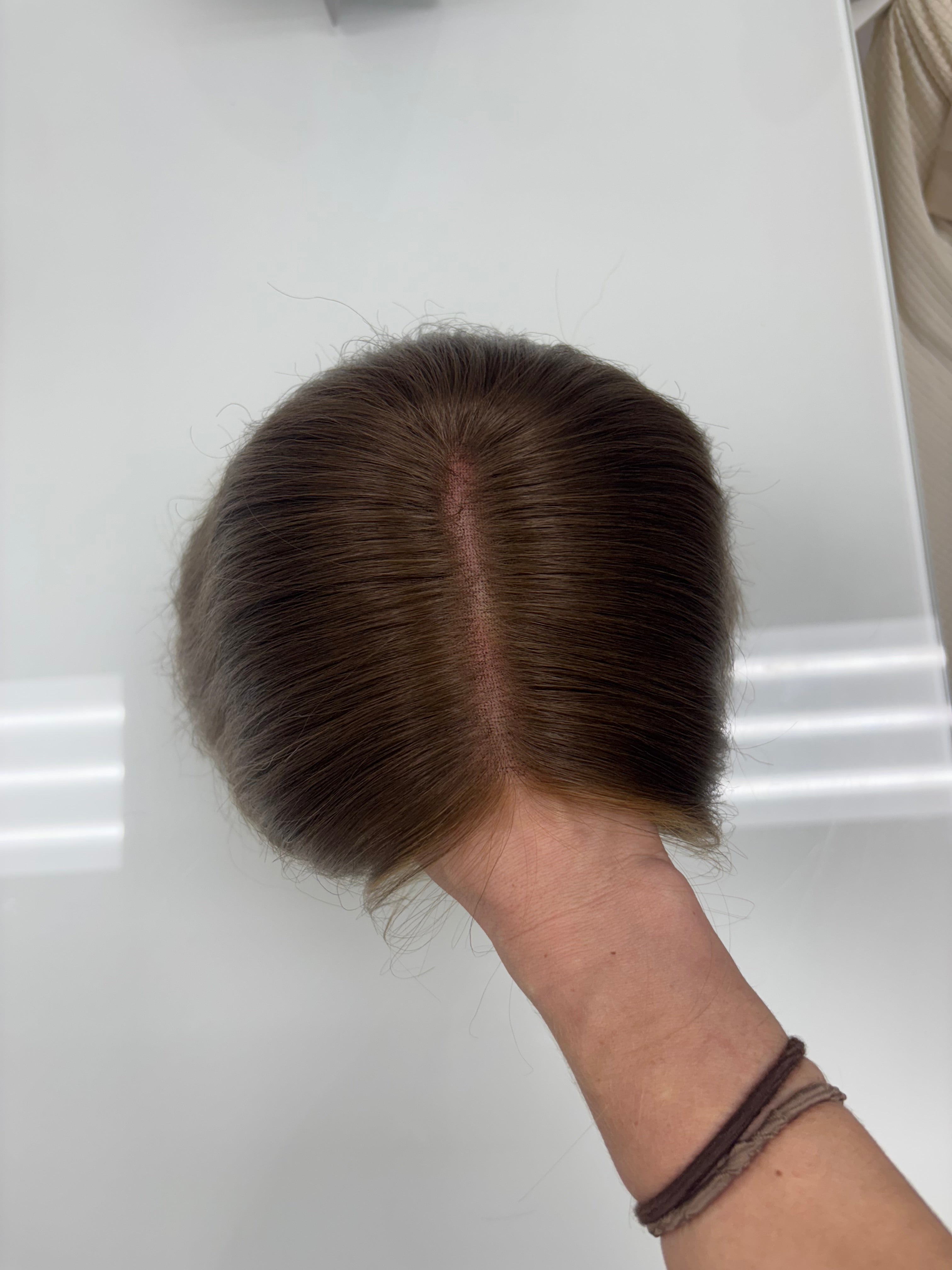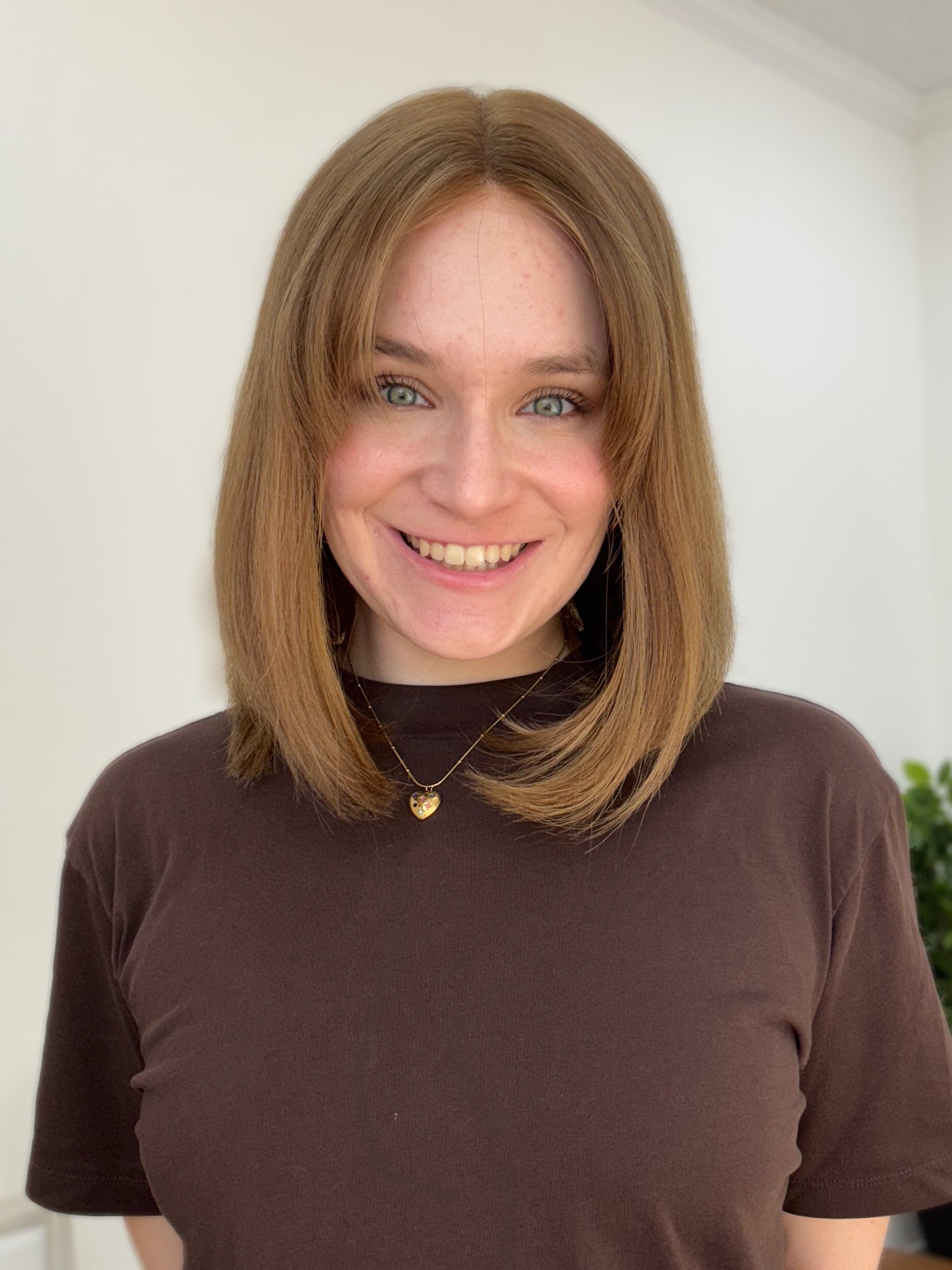 A like new piece with tons of life left. The cute bangs are very customizable, whether you prefer a soft side-swept look or loose, effortless fringe in front. The hair quality feels amazing from top to ends, and the warm brunette shade pairs beautifully with the bright money piece for dimension and brightness around the face. Overall, a gorgeous, easygoing style that still has plenty of wear ahead.Our team of experts carefully examine each piece to give you all the information you need to find the perfect wig or hair topper at a discounted price.