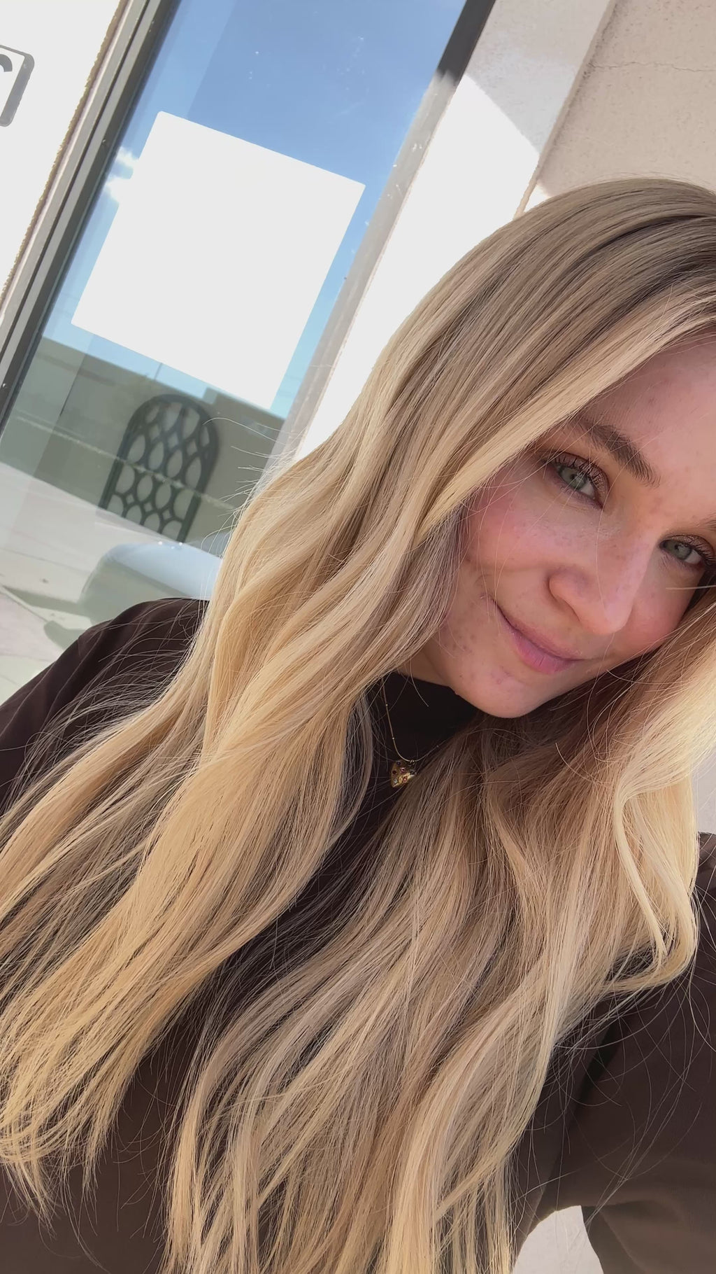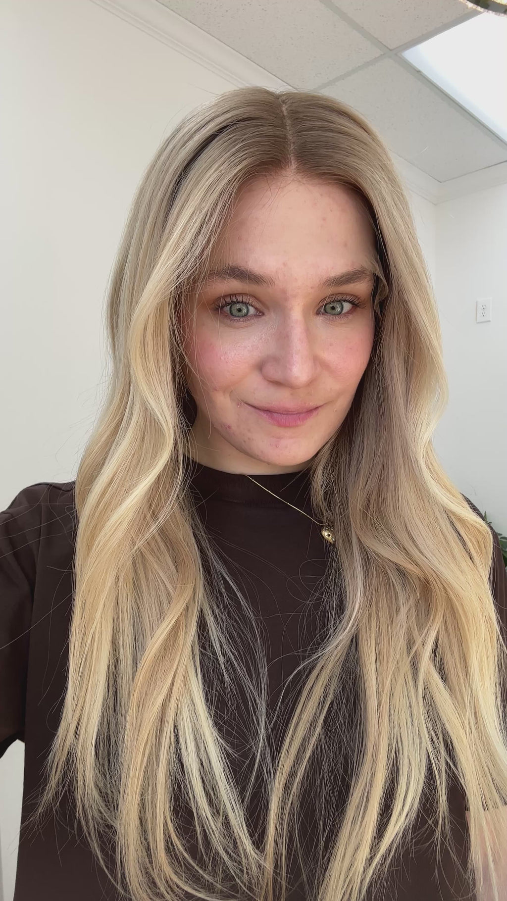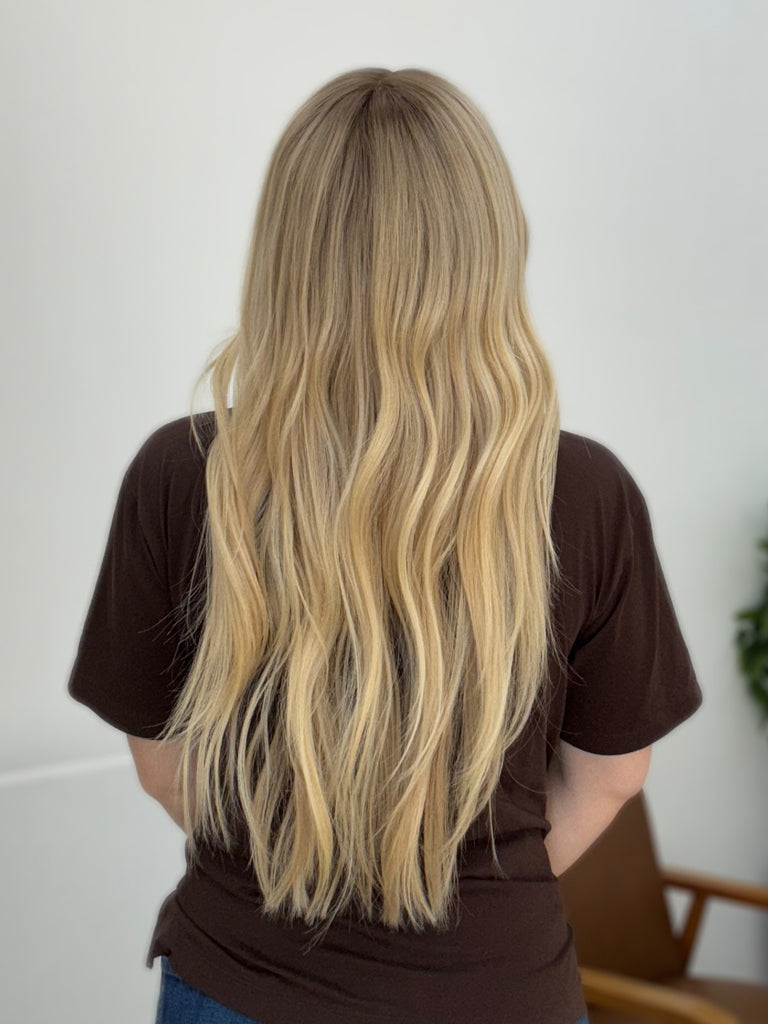 Color: Rooted champagne blonde with light blonde highlights/dimensional baby lights