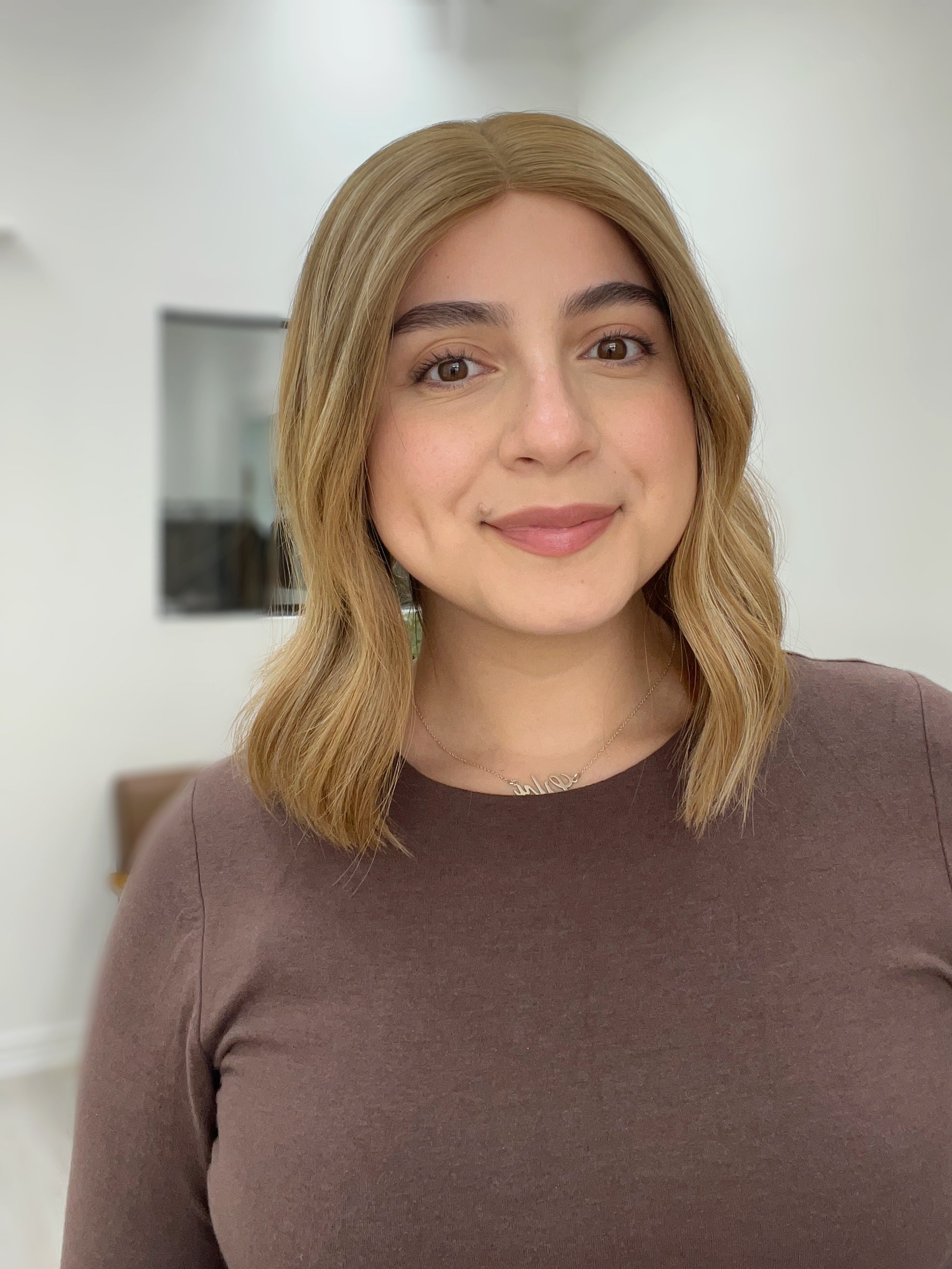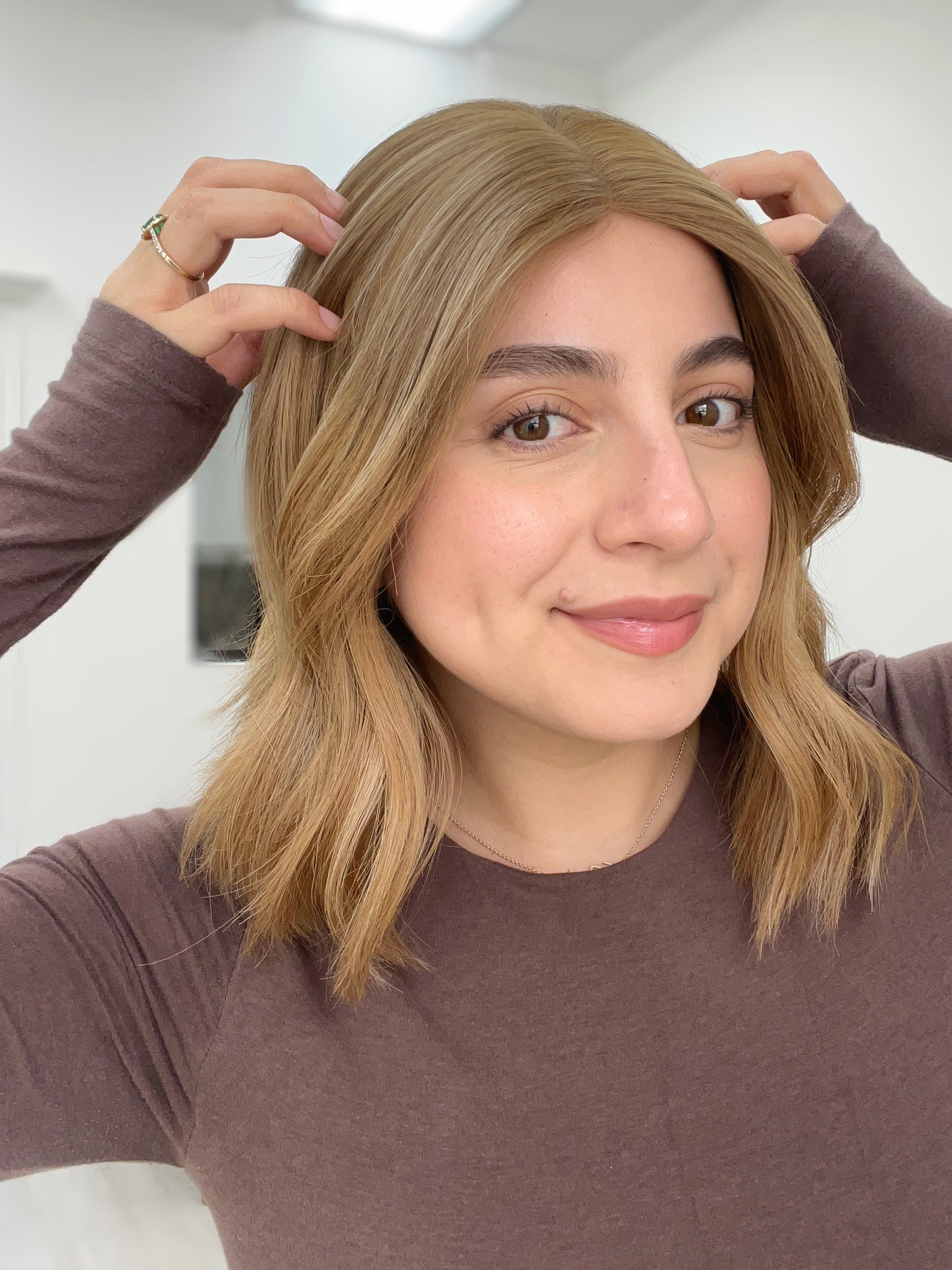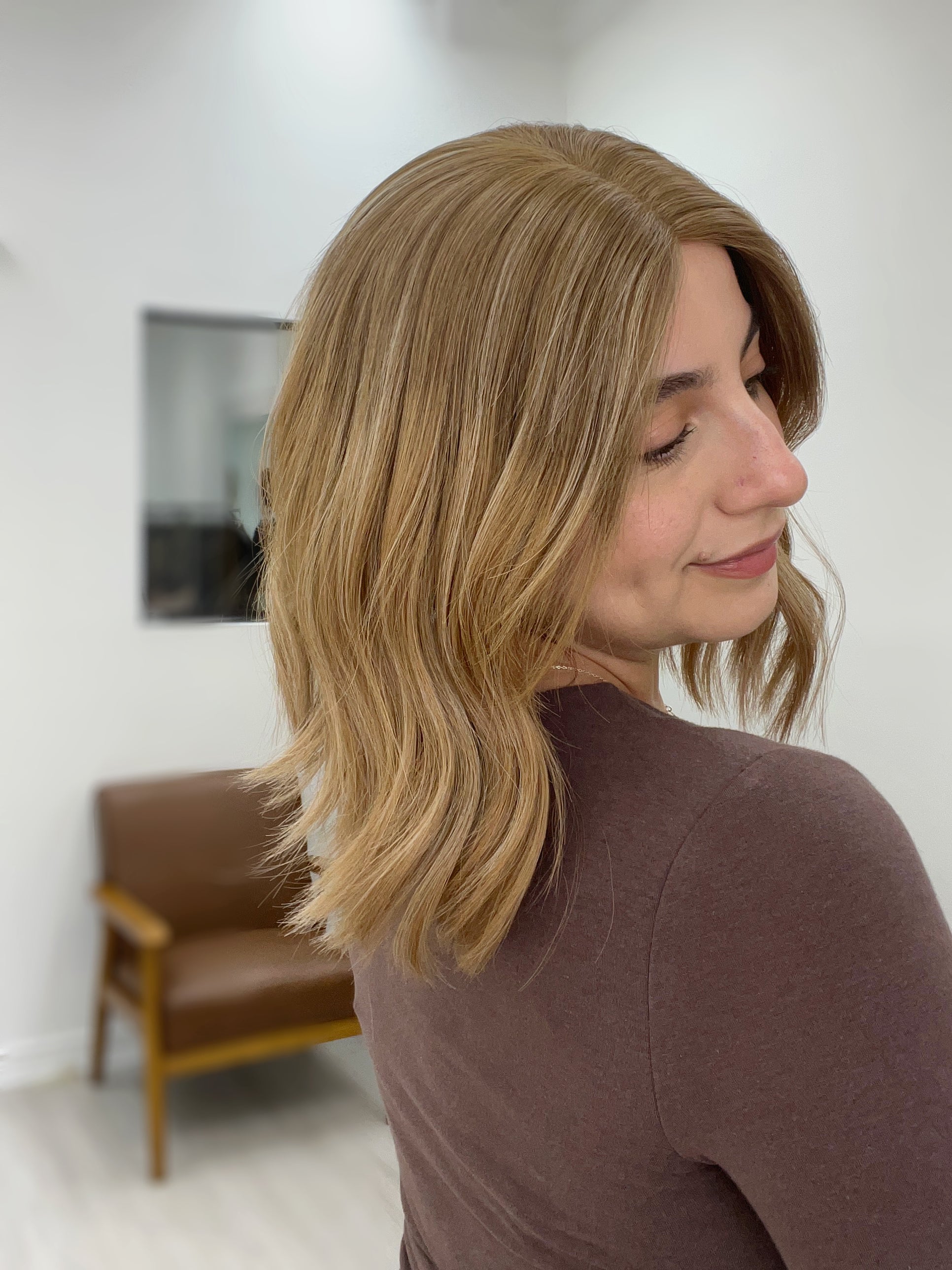 This piece captures the look of a soft, golden blonde with creamy dimension and a natural finish. Bright without being harsh and in great condition. With closed lace toppers, you are meant to blend with your hair. An ideal option for those looking for an extremely flat, realistic lay and density.