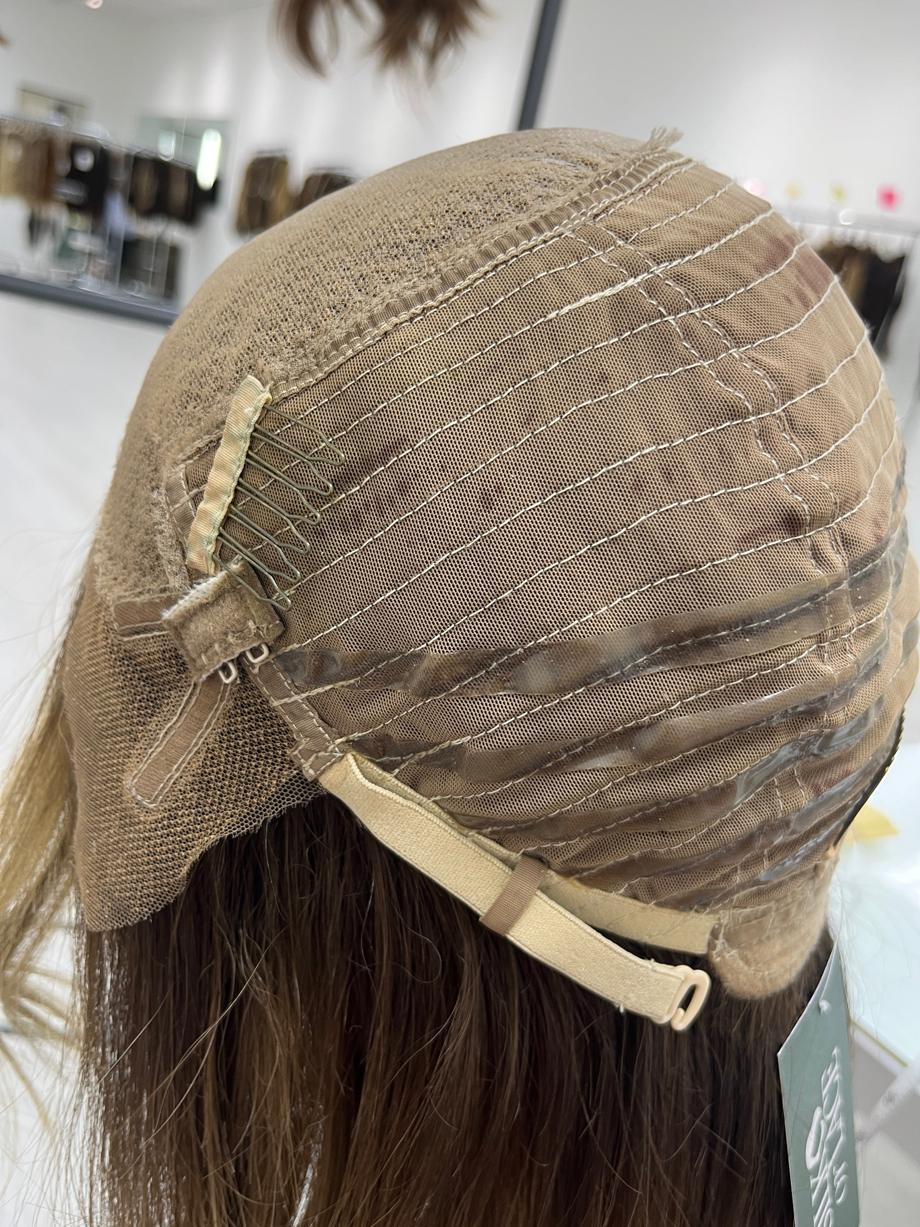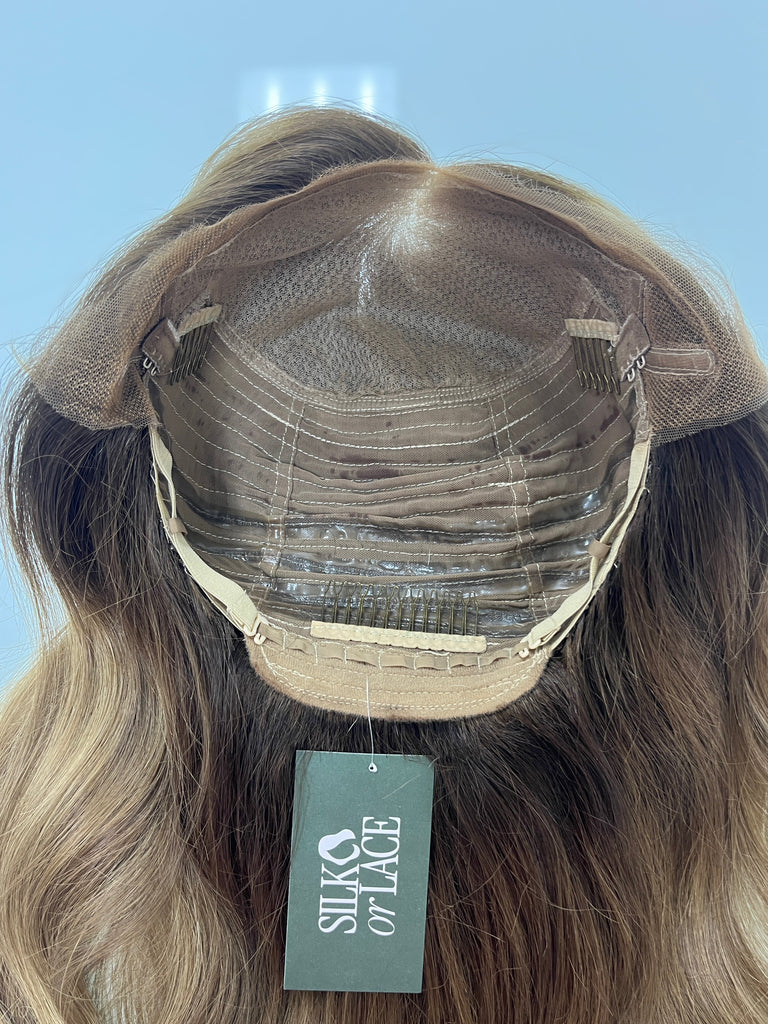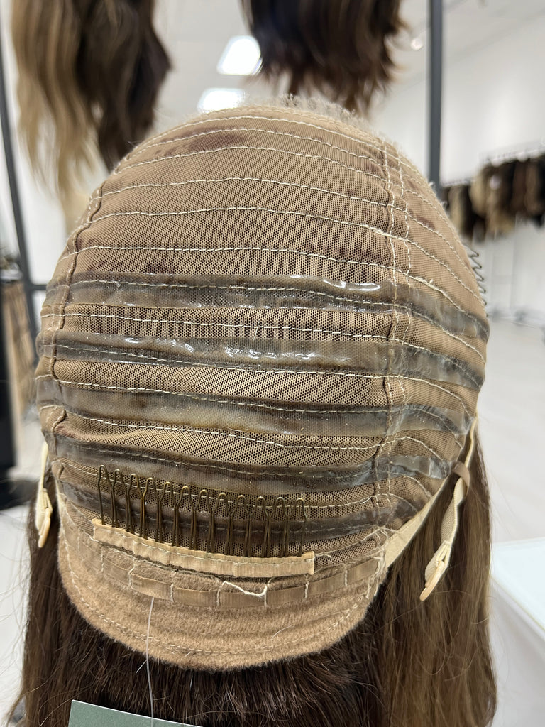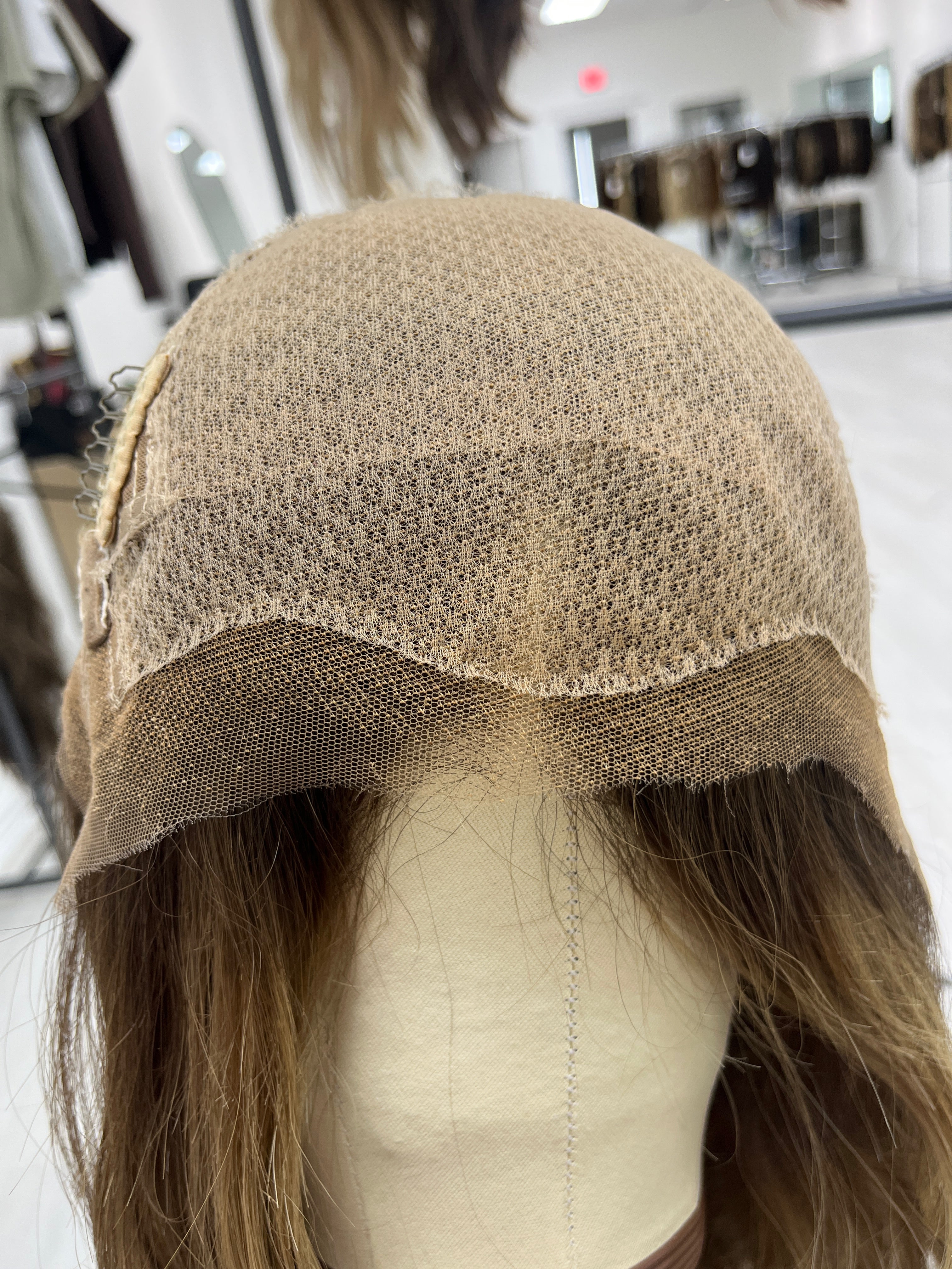 This beautiful dimensional bronde wig features a super natural, realistic hairline. It is a great option for someone looking for lots of volume and body yet with a lightweight fit overall.
