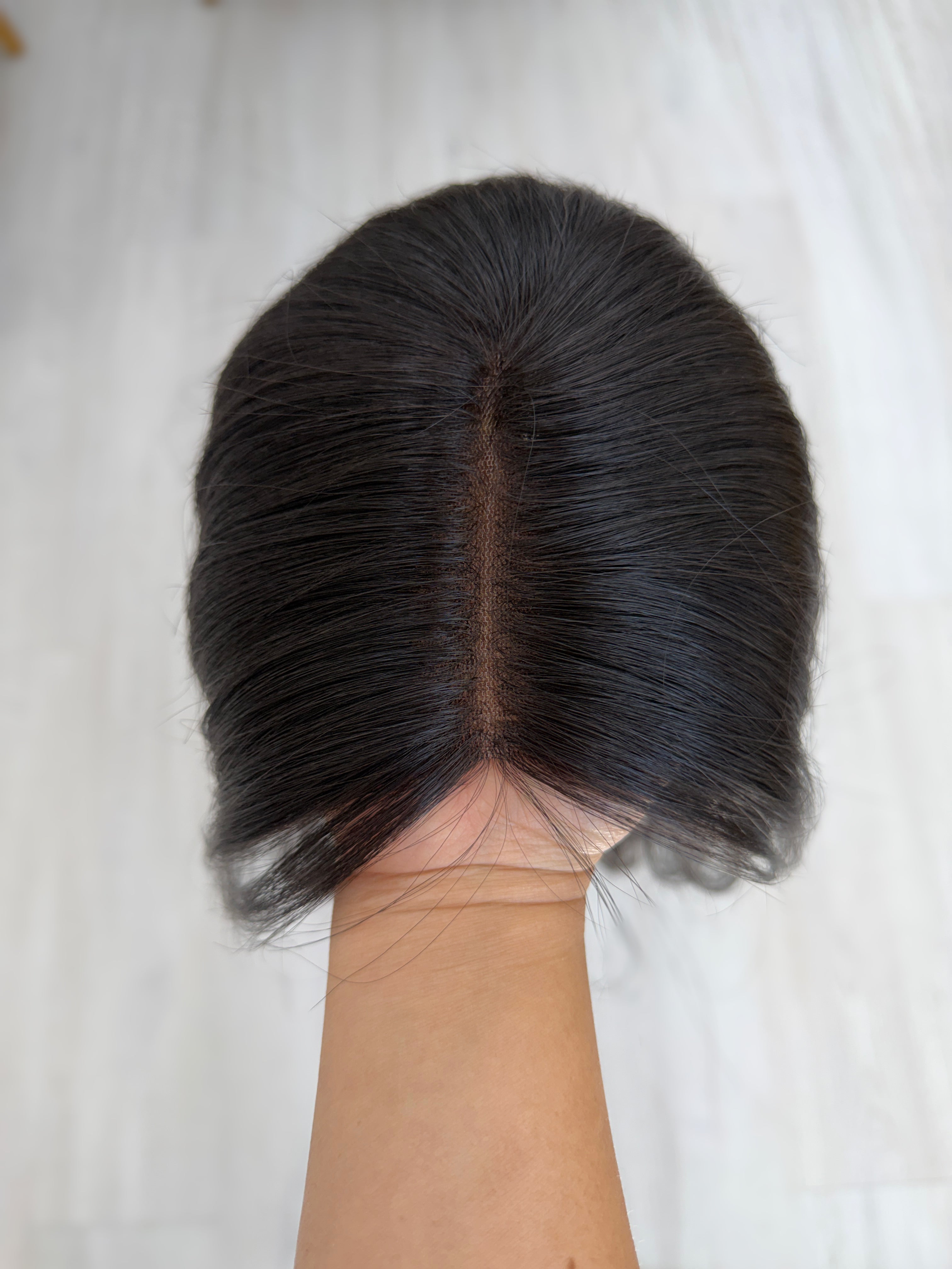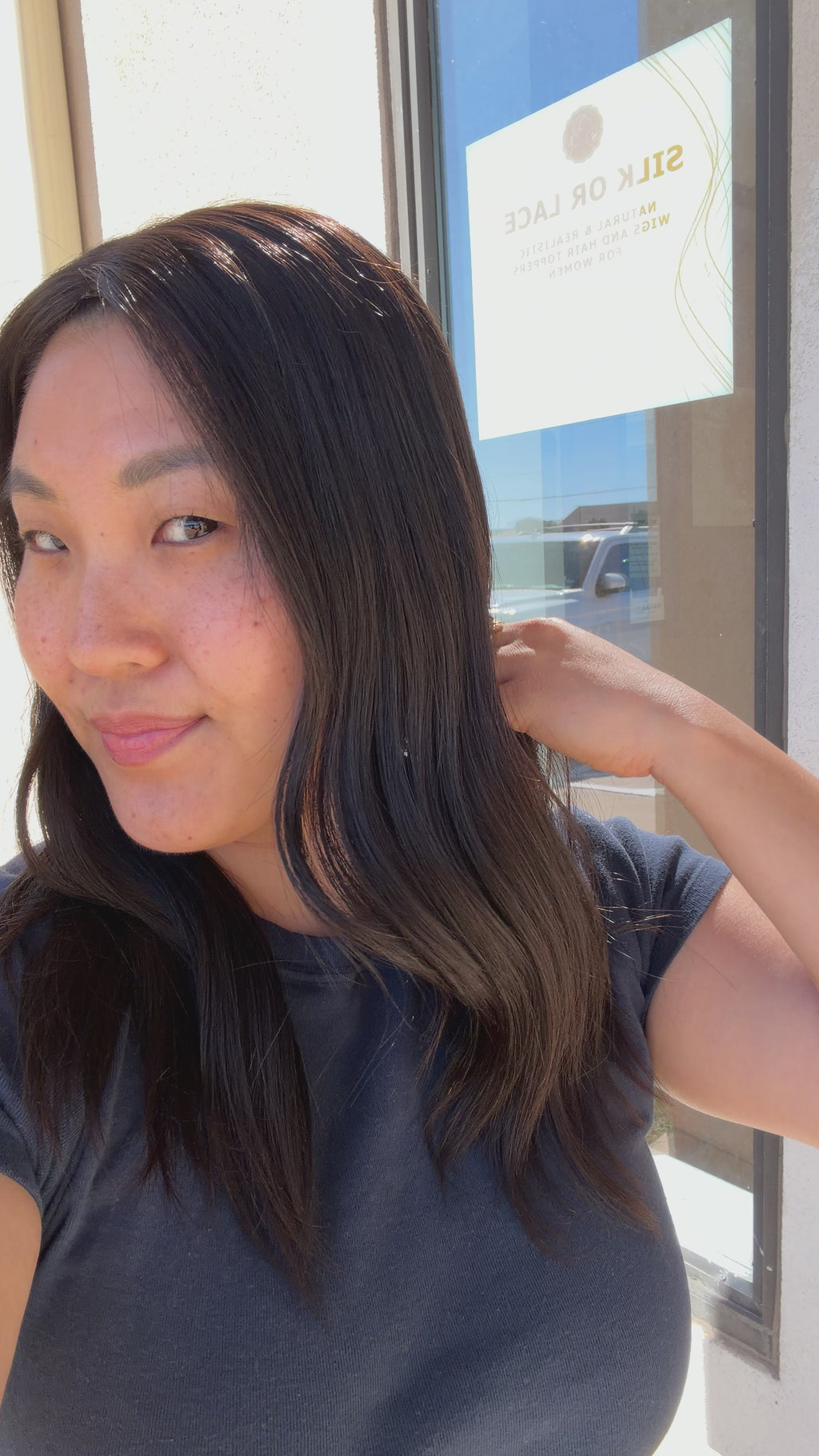 Silk or Lace Collection closed lace hair toppers function as your hair, but better! They are ultra low density, lightweight, and have a paper thin rim for an easy seamless, realistic blend for every day wear. Take note of our carefully designed details, such as our durable double lace, secure mini combs in front, and soft fine Brazilian hair!