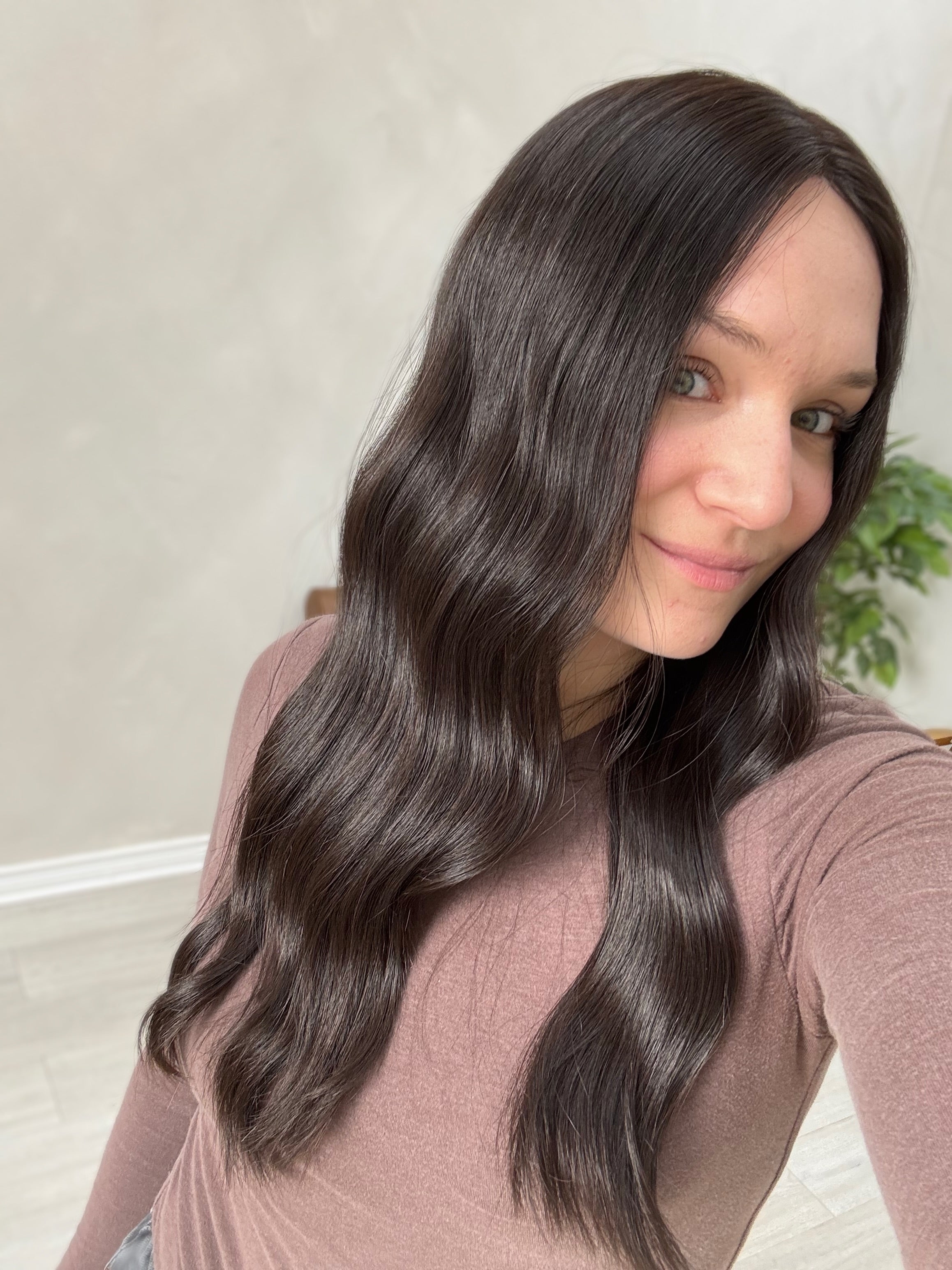 This is our best selling color of all time. She's our virgin darkest brown. If she looks like she's glowing, she practically is because virgin hair is so soft and silky! Halsey is Suran's go to color, a classic that never goes out of style.