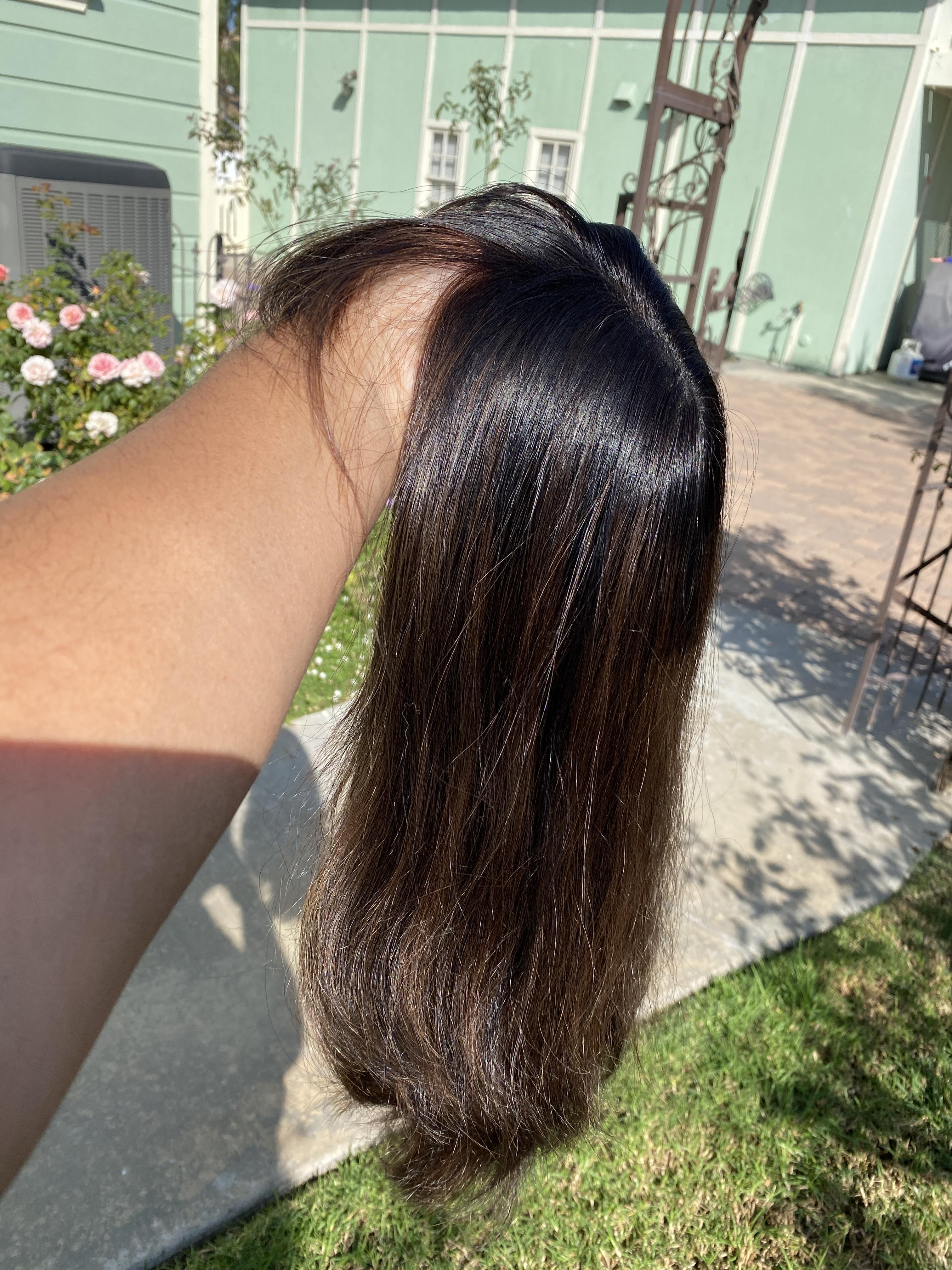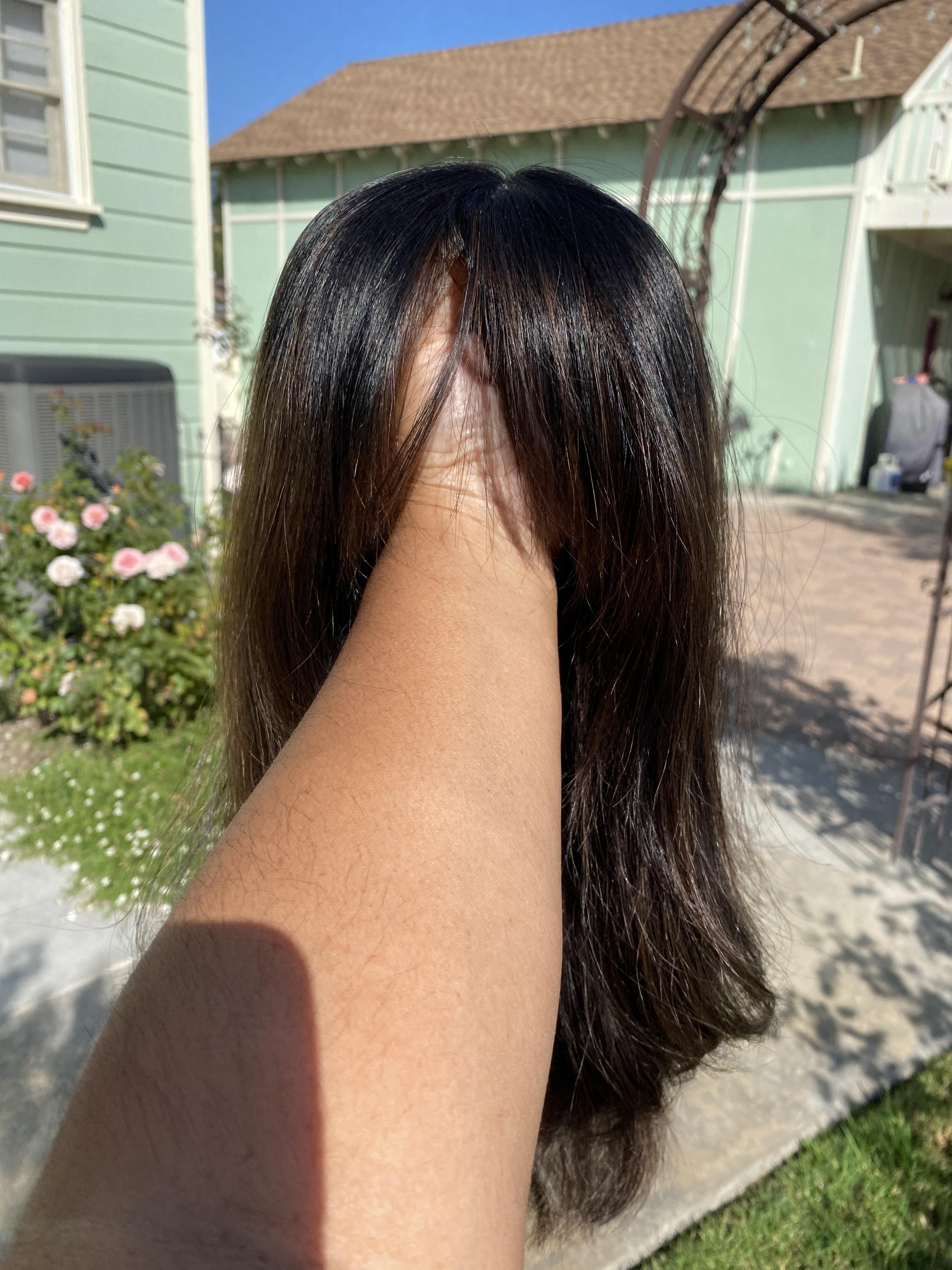 Lightly worn for a few months and well cared for. Bangs were trimmed but can be blended or grown out depending on preference. Hair is soft, smooth, and still in great condition. Selling only because bangs aren’t my style.