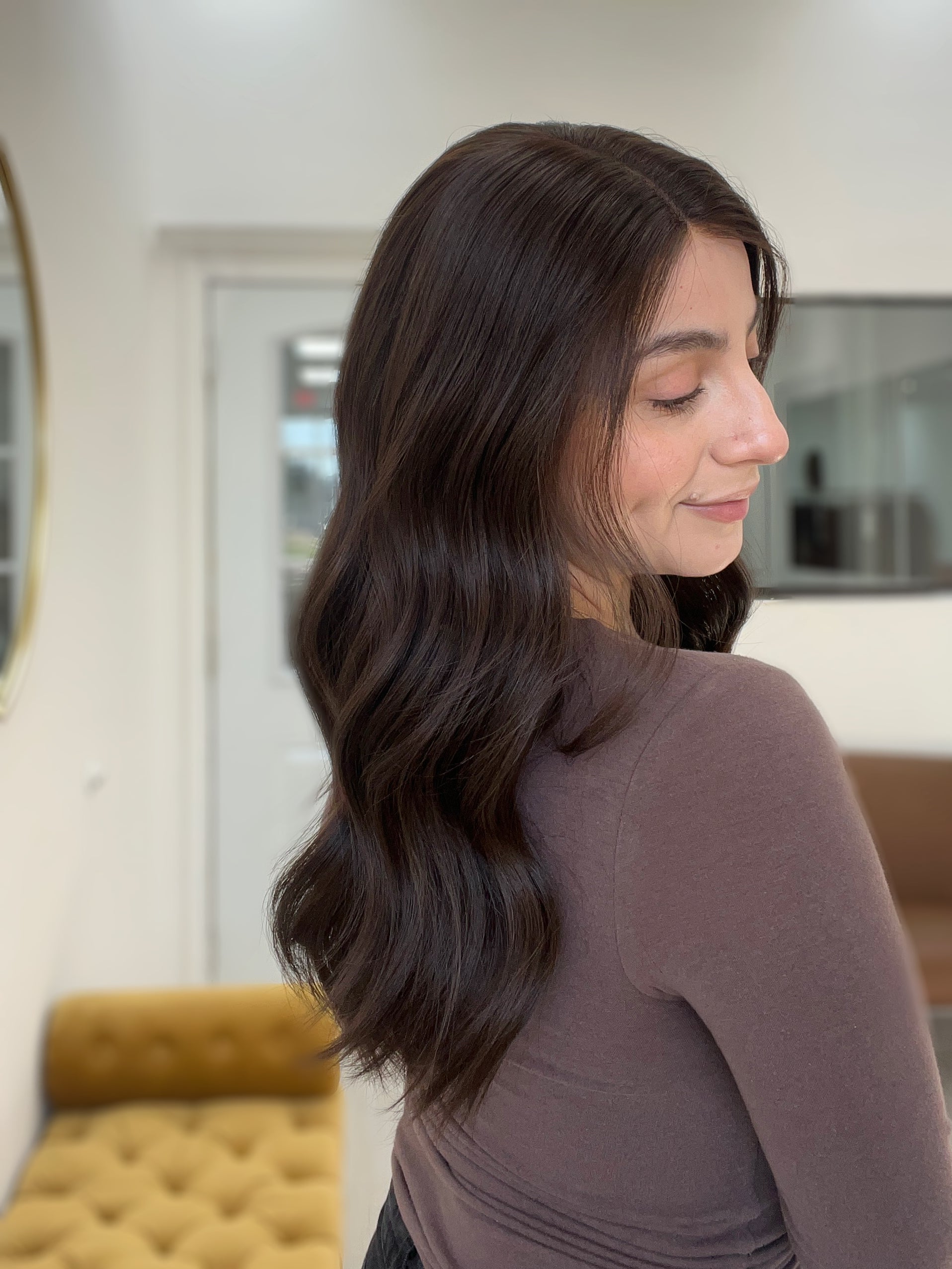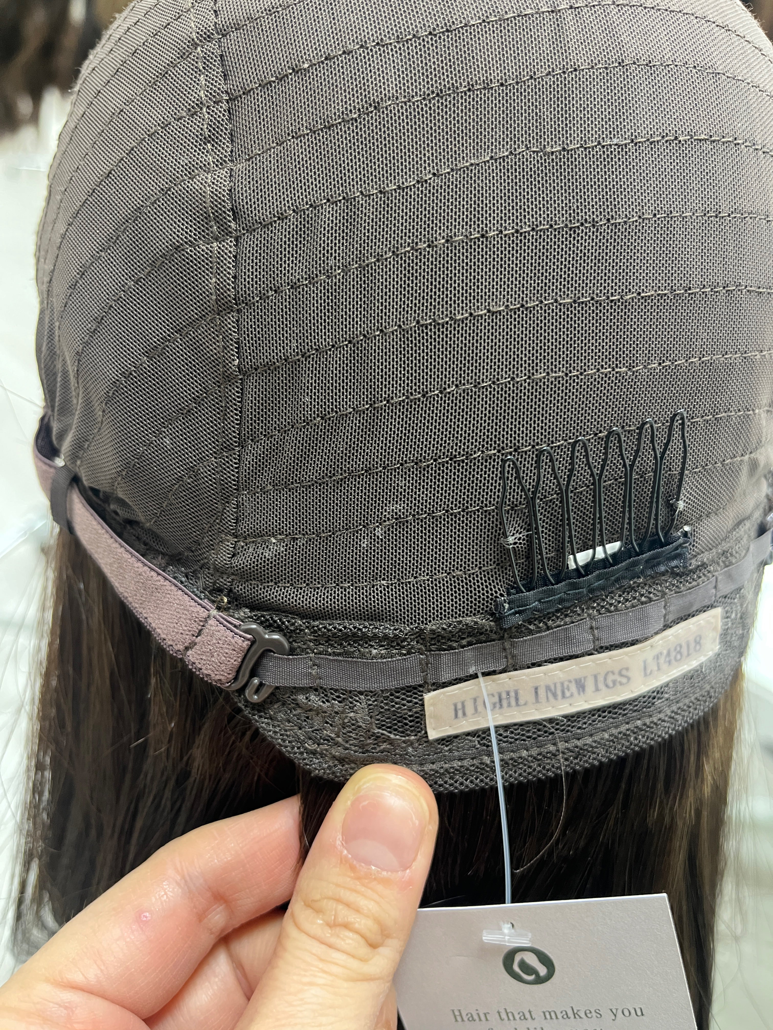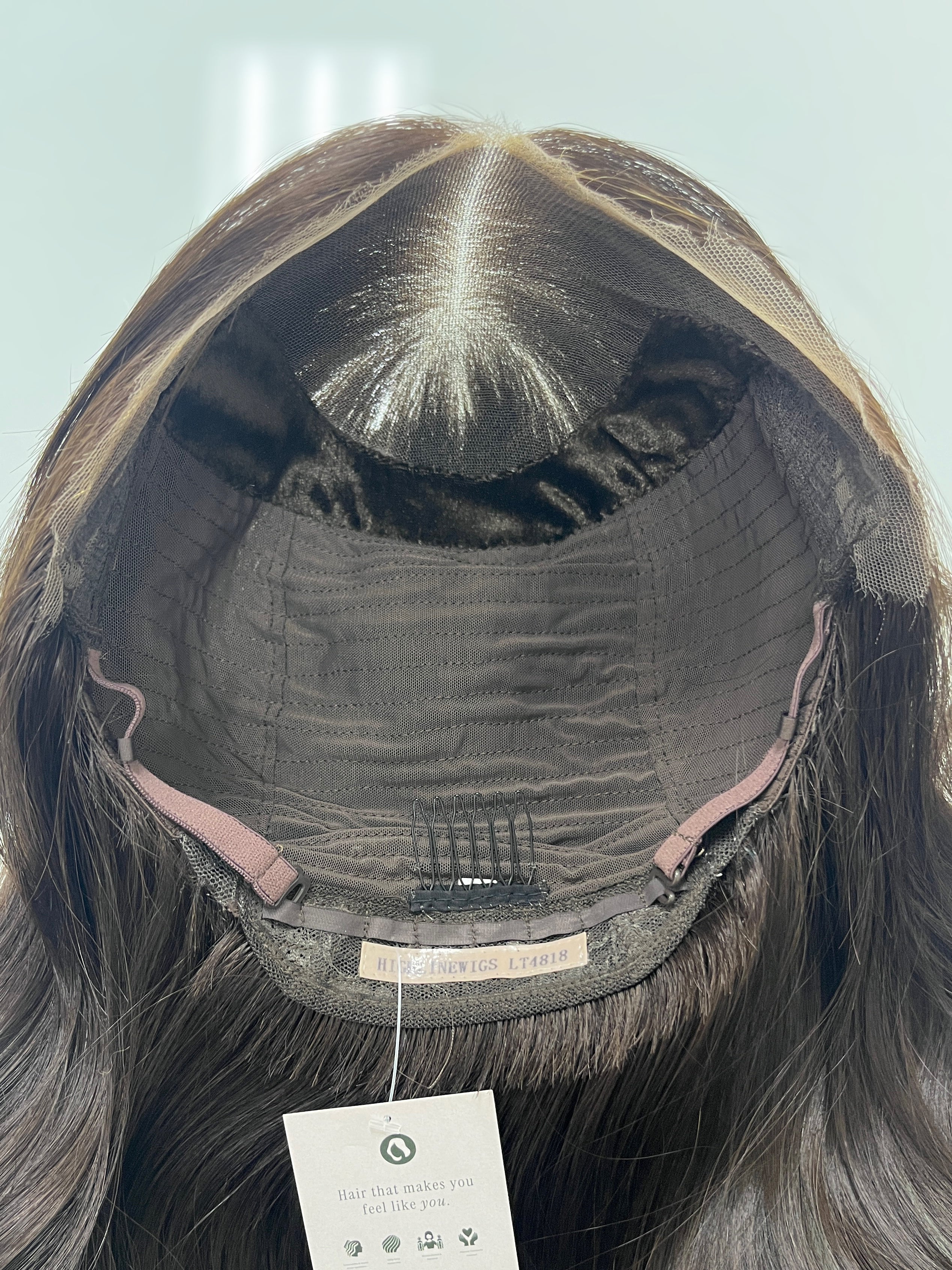 This Highline lace top wig is in a classic dark brown that is in great condition. The hair feels silky soft smooth and is made with high quality Brazilian hair. It features a natural, realistic hairline and the density is lightweight overall. You'll definitely want to snatch this one up as it is such a popular color and brand in our resale section!