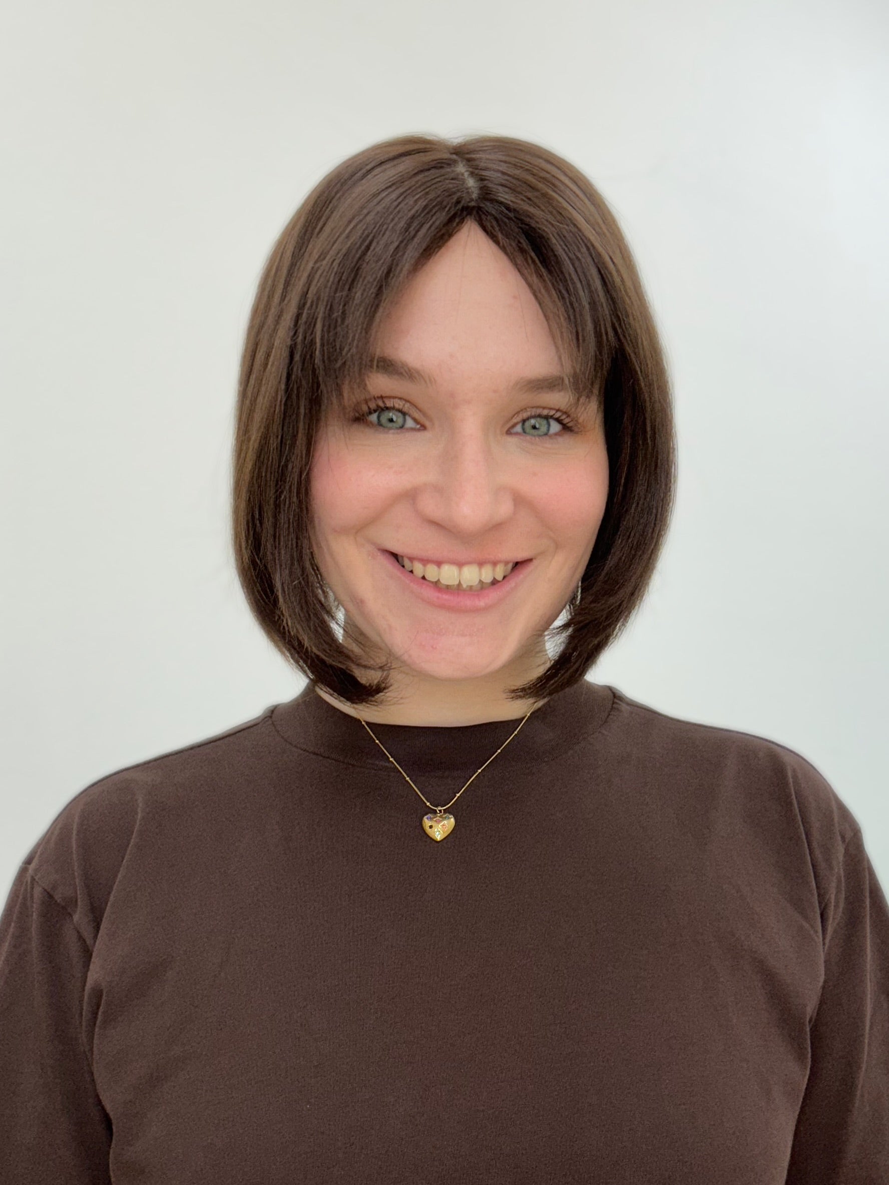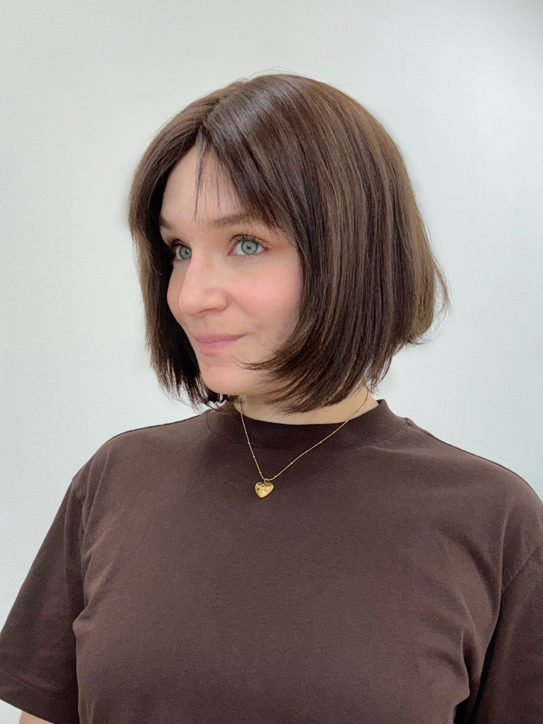 This adorable bob with bangs is an ideal choice for first-time topper wearers, especially those with shorter bio hair. The bangs minimize the need for blending, while the bob cut adds a fresh, energetic feel to the overall look.
