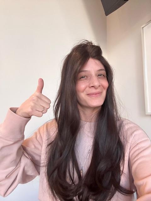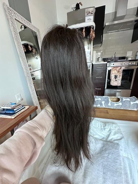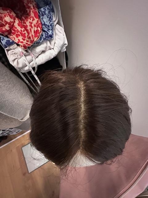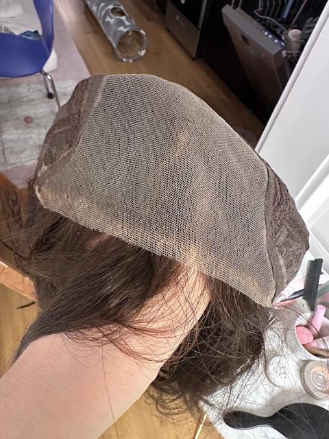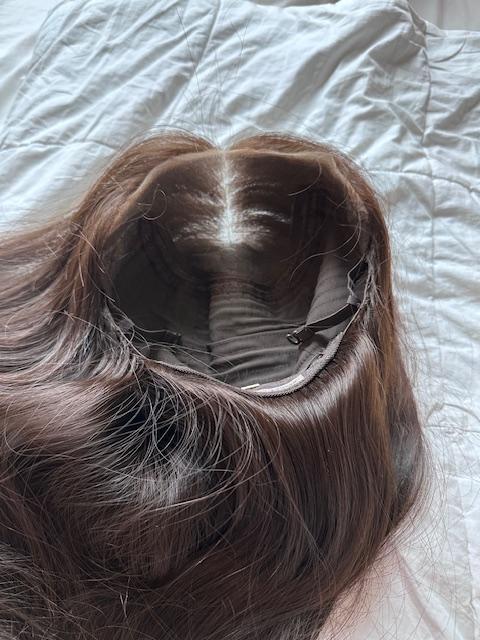This piece has been taken care well care of, treated very gently, always air dried and would just add a few curls with a curling wand. I'd always store this piece in it's silk bag, away from any environmental factors. I have a 22" circumference and usually wear a size medium and this wig fits just right.