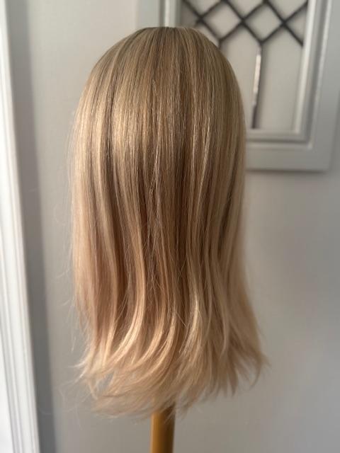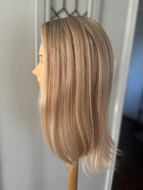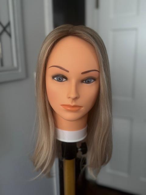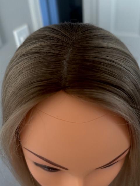 I do not have enough hair to wear toppers anymore. This is a great, lightly worn hair piece - practically new! The dimensional blonde in this topper is beautiful and will go with so many tones of blonde!