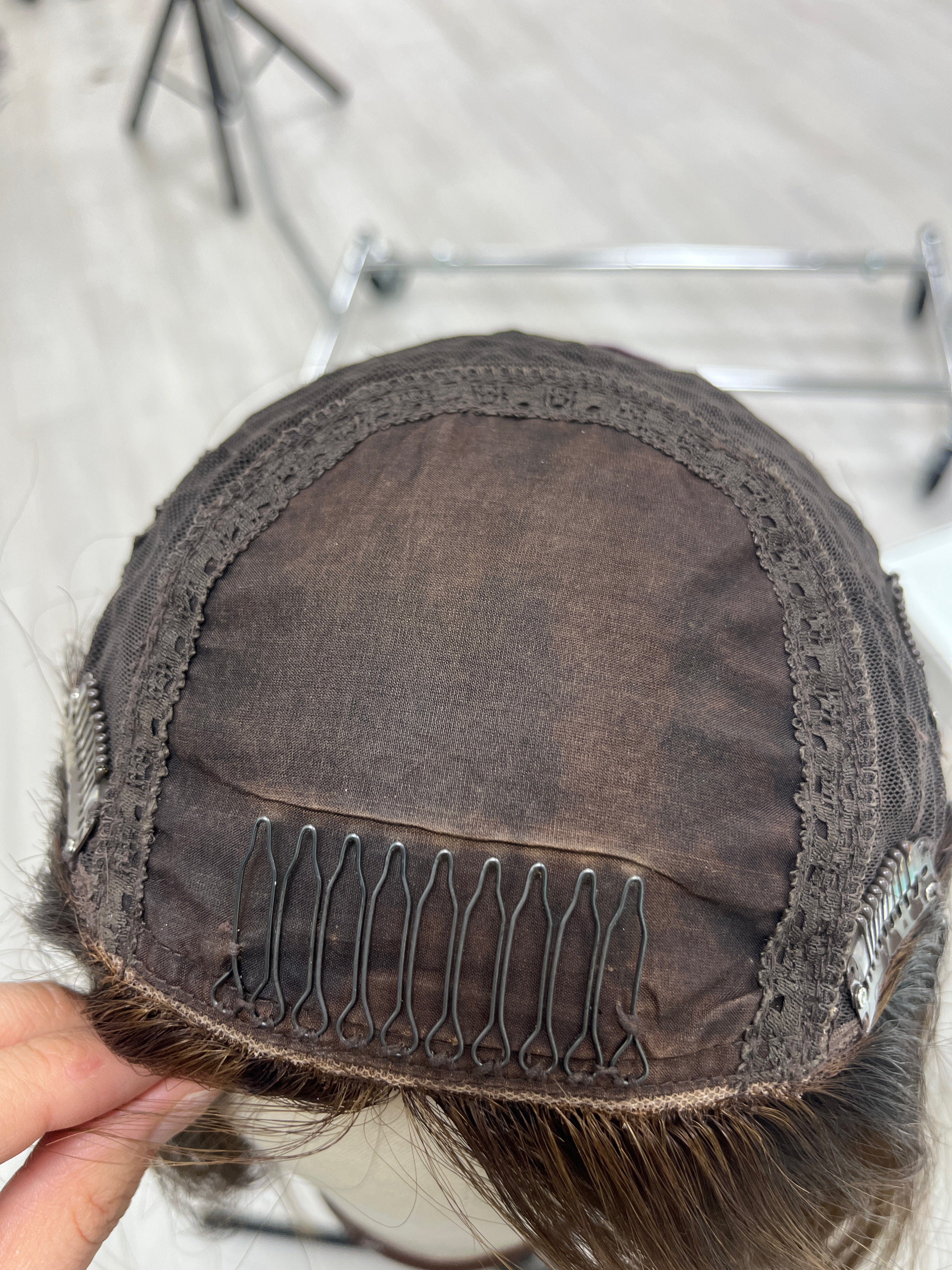 Other: Light density (about 115%). Light wear and tear on the comb and clips. Light discoloration on the silk top that does not affect the integrity of the piece.