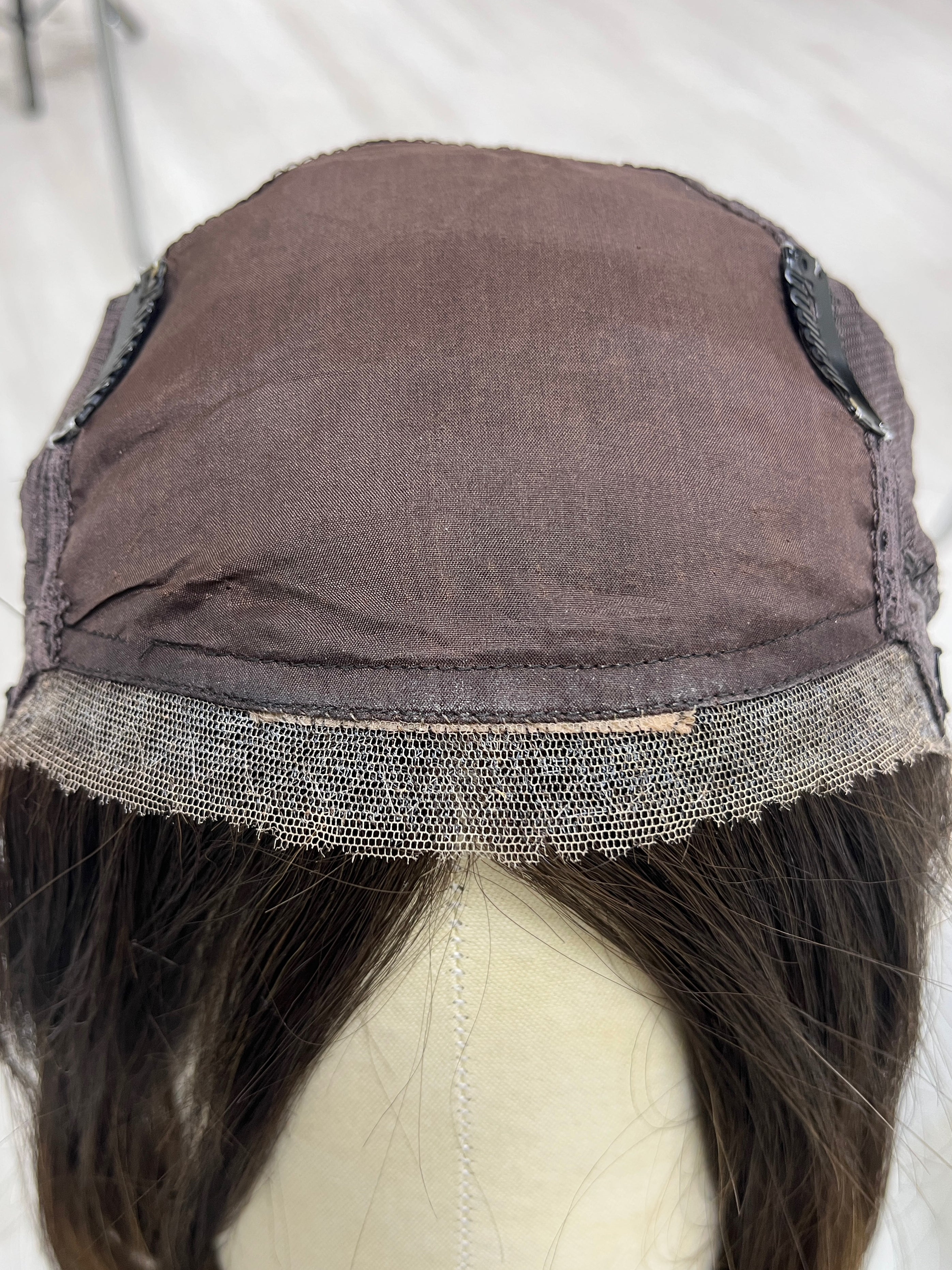 Other: Medium to medium light density (about 120-125%). The lace is cut very close to the hairline in the traditional Milano zig zag method with a bit of fraying. Knots are not bleached. There are some short return/baby hairs sticking out near the front of the hairline.