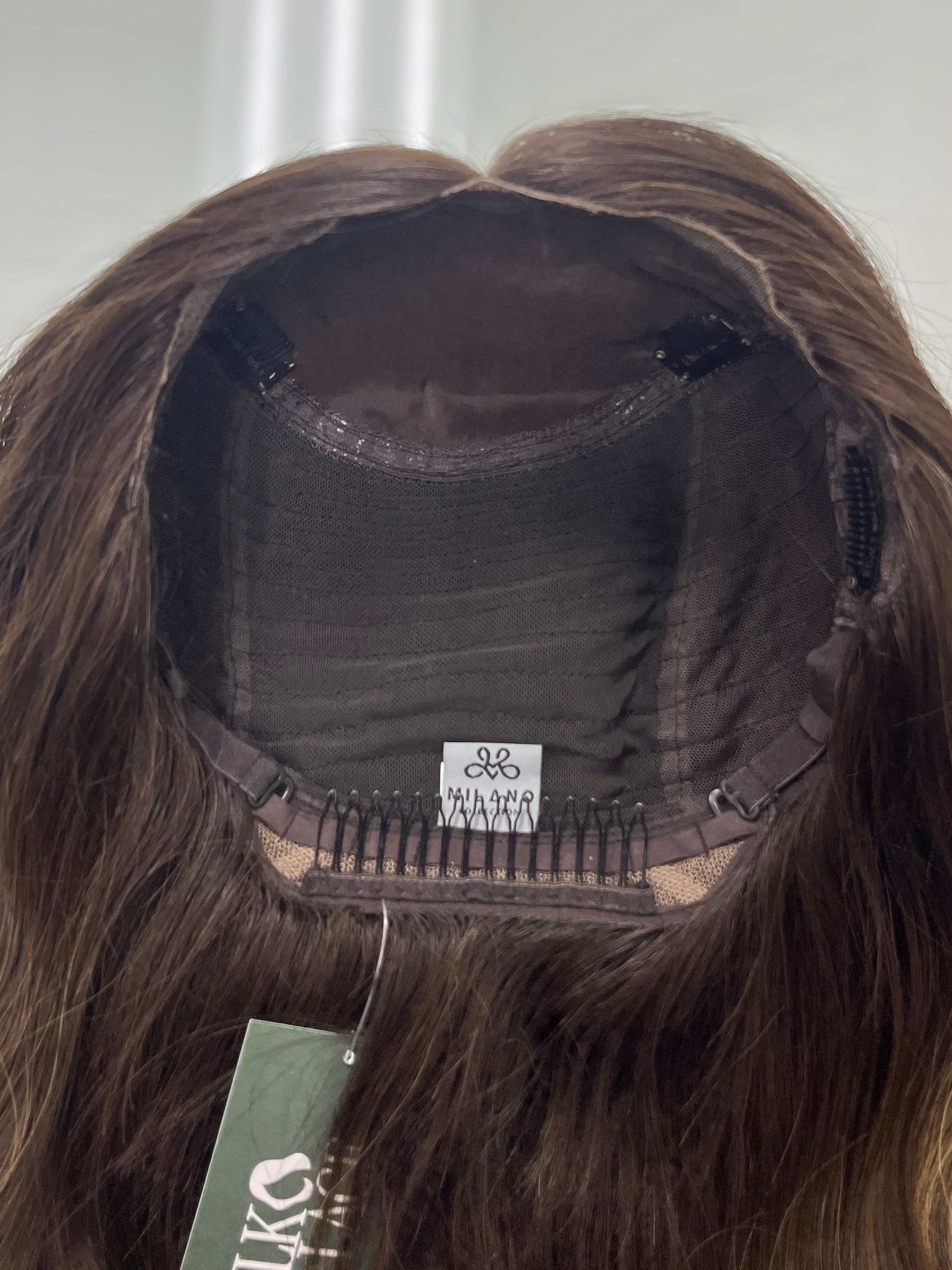 With the ponytail construction from this Milano silk top, lace front wig, you'll be able to wear it up and down giving you lots of versatility! It also has beautiful long layers for natural movement and manageability. The dimensional brunette color is rich and warm perfect for those with warmer undertones. Overall, in great condition with a great discount.