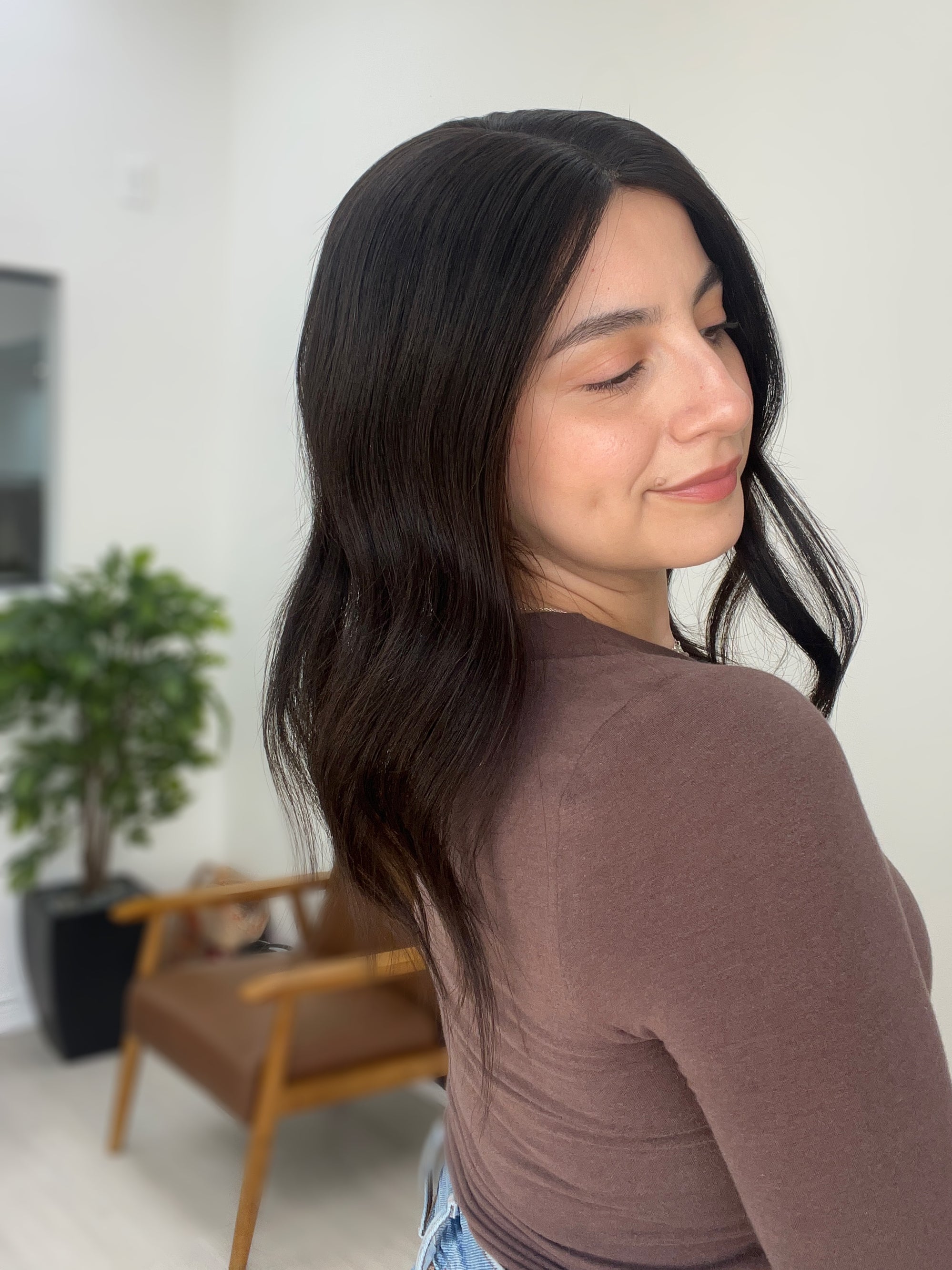 Color: Soft black (about a level #2) with subtle dark chocolate brown lowlights (about a level #3)
