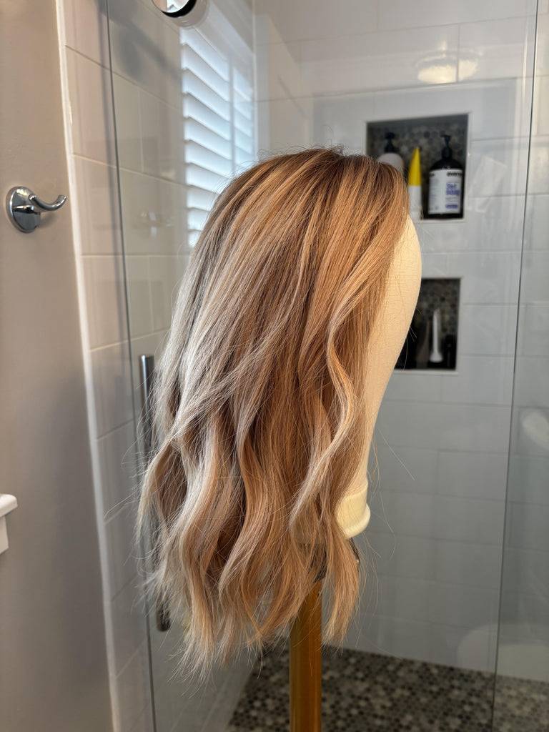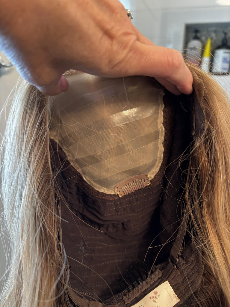 This wig was purchased at Wigs by Tiffani salon in New Orleans with silk liner added for additional durability and lace cut by Tiffani herself! I am downsizing my collection. She is a beauty! Can be worn straight or with curls and I have even worn her in a pony tail! Beautiful condition! Very gently loved and worn approximately 10 times total. Lots of room to customize the lace. I am a 22” circumference and she fits me perfectly!