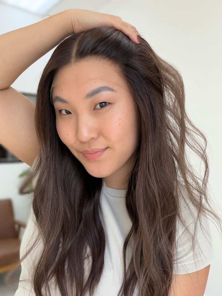 Color: Ash brown mushroom balayage with dark chocolate brown root
