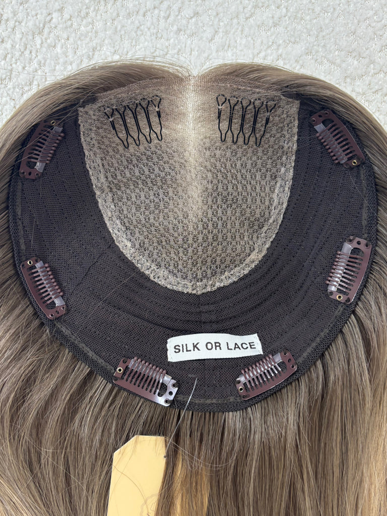 Silk or Lace Collection closed lace hair toppers function as your hair, but better! They are ultra low density, lightweight, and have a paper thin rim for an easy seamless, realistic blend for every day wear. Take note of our carefully designed details, such as our durable double lace, secure mini combs in front, and soft fine Brazilian hair!