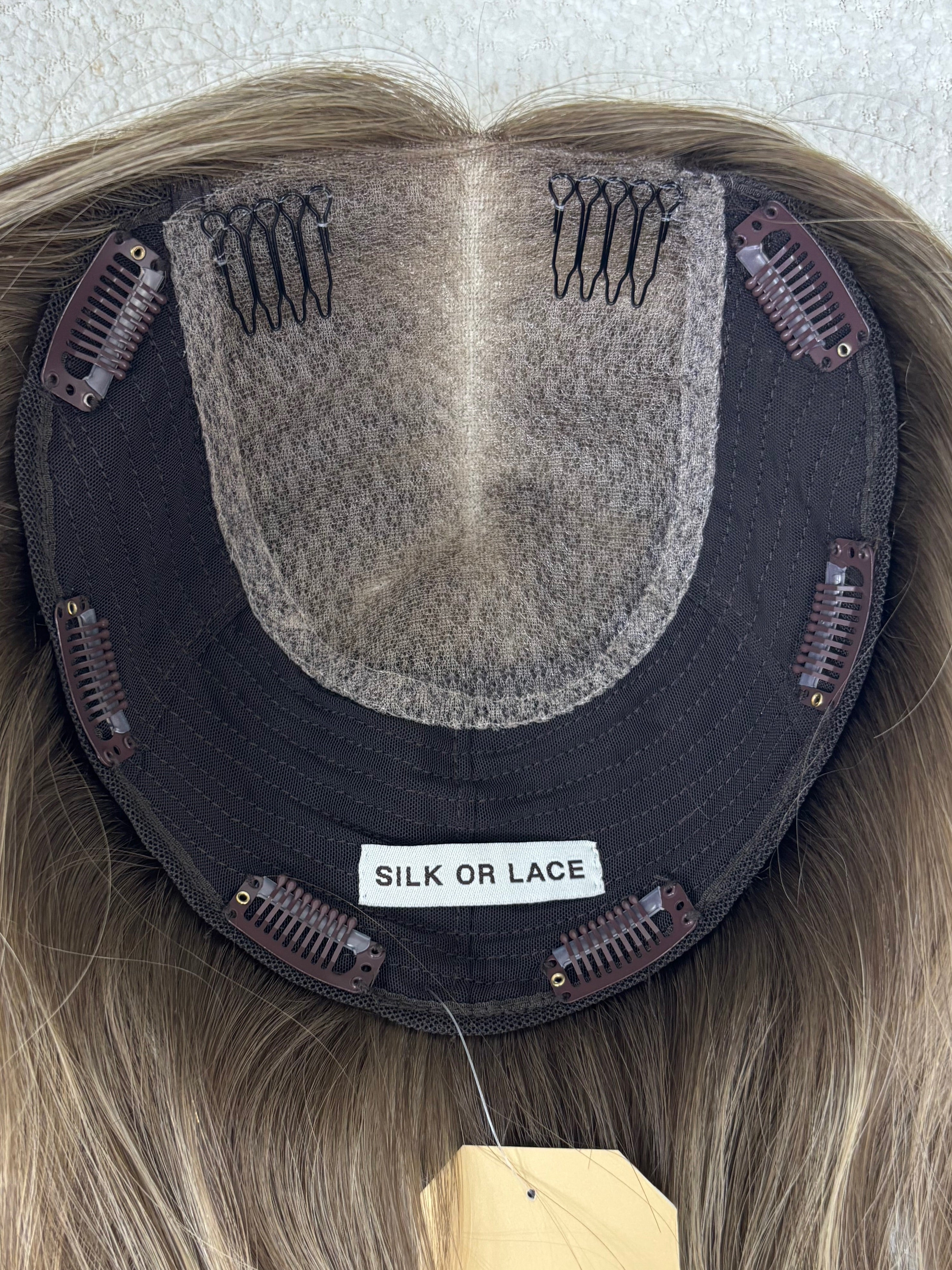 Silk or Lace Collection closed lace hair toppers function as your hair, but better! They are ultra low density, lightweight, and have a paper thin rim for an easy seamless, realistic blend for every day wear. Take note of our carefully designed details, such as our durable double lace, secure mini combs in front, and soft fine Brazilian hair!