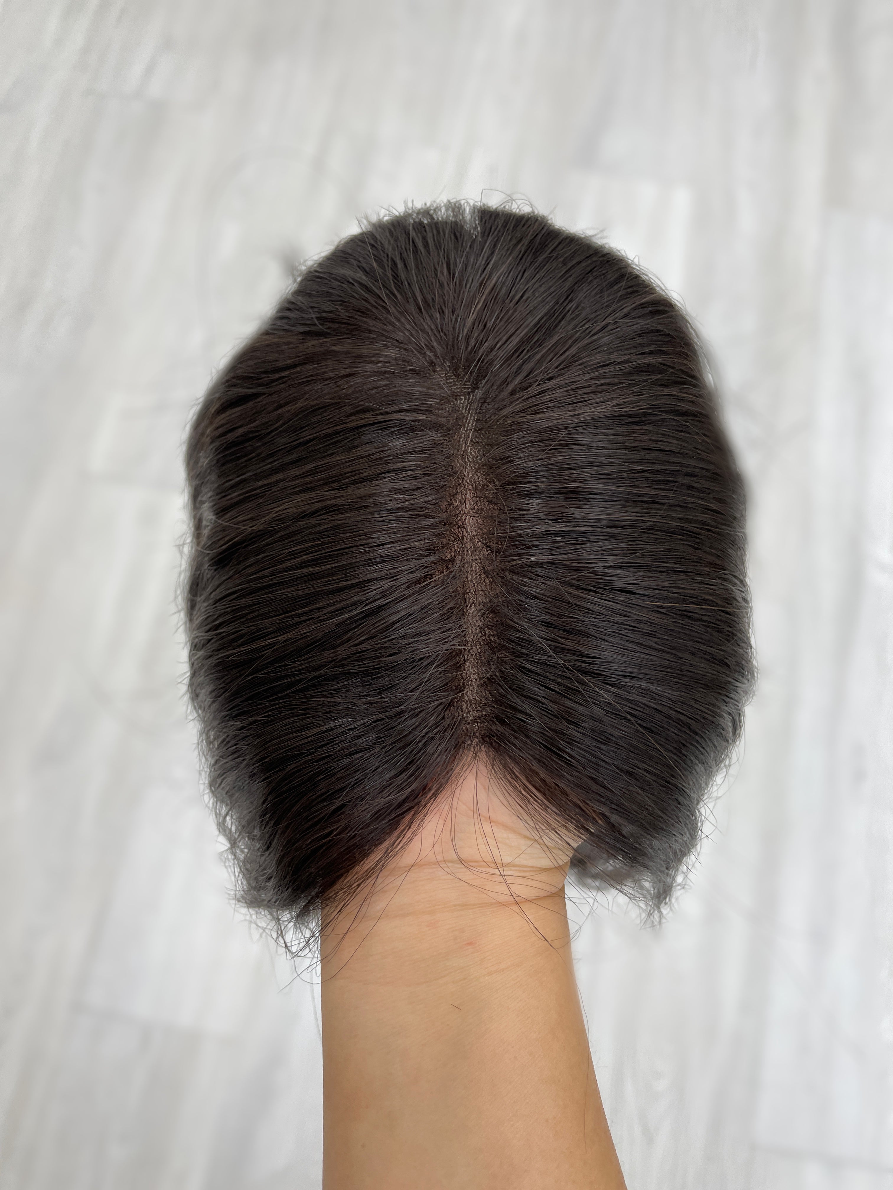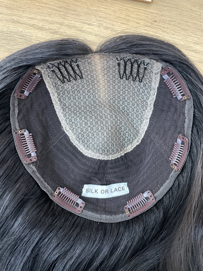 Silk or Lace Collection closed lace hair toppers function as your hair, but better! They are ultra low density, lightweight, and have a paper thin rim for an easy seamless, realistic blend for every day wear. Take note of our carefully designed details, such as our durable double lace, secure mini combs in front, and soft fine Brazilian hair!
