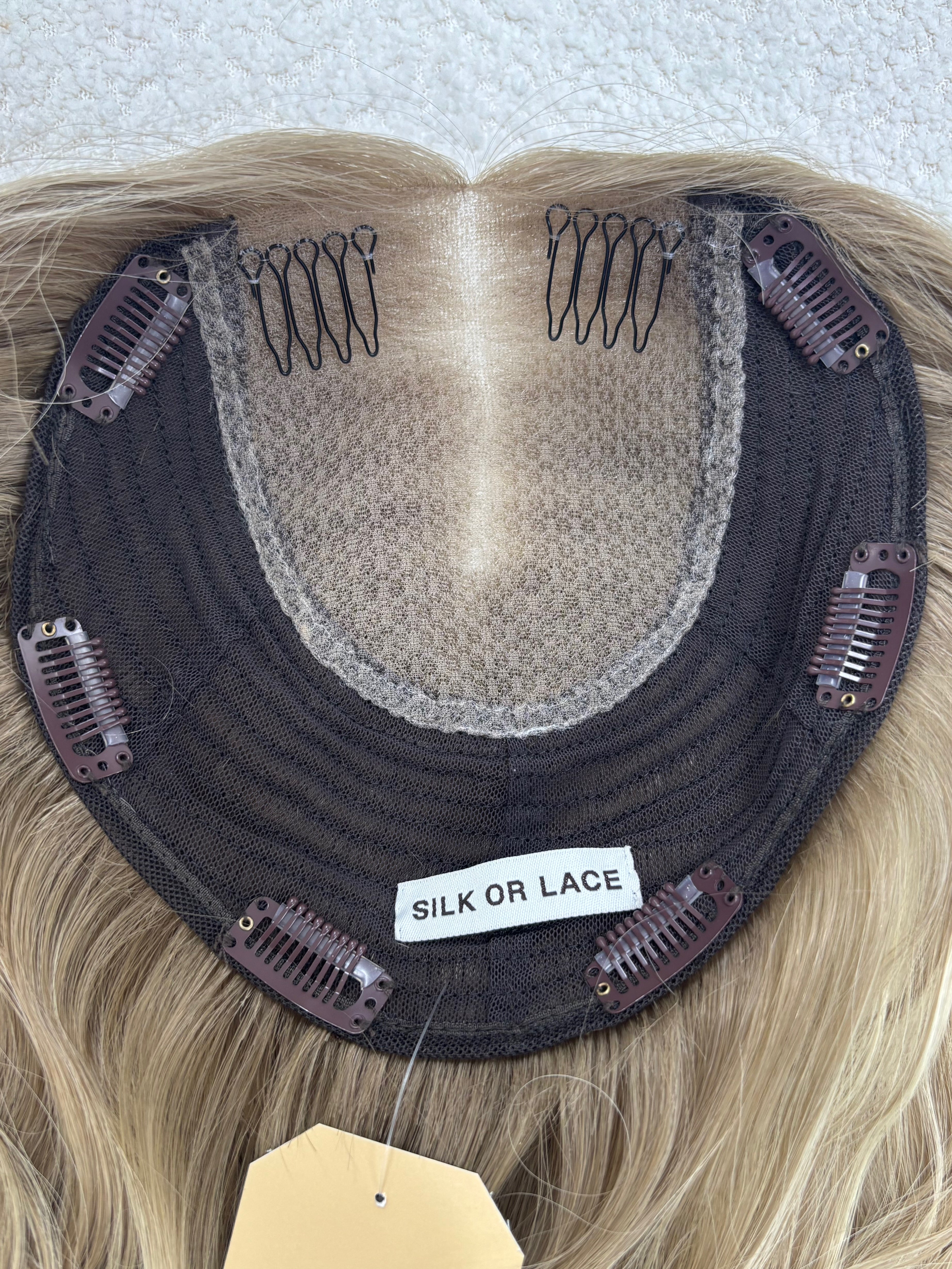 Silk or Lace Collection closed lace hair toppers function as your hair, but better! They are ultra low density, lightweight, and have a paper thin rim for an easy seamless, realistic blend for every day wear. Take note of our carefully designed details, such as our durable double lace, secure mini combs in front, and soft fine Brazilian hair!