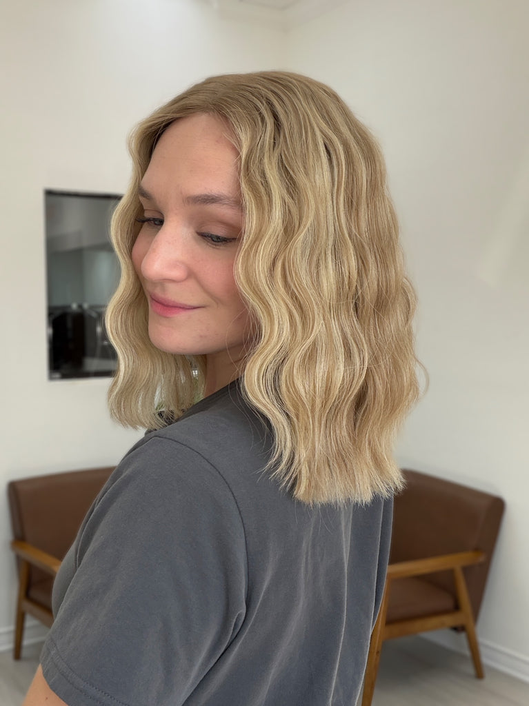 Color: Neutral buttercup blonde with light blonde dimension throughout