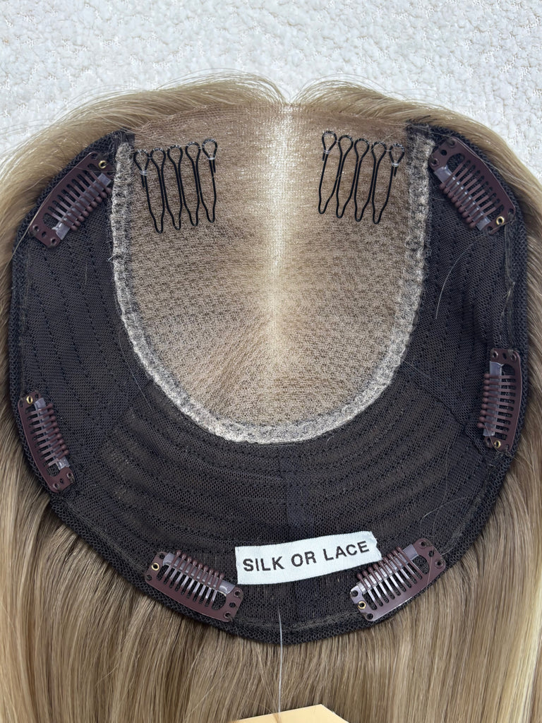 Silk or Lace Collection closed lace hair toppers function as your hair, but better! They are ultra low density, lightweight, and have a paper thin rim for an easy seamless, realistic blend for every day wear. Take note of our carefully designed details, such as our durable double lace, secure mini combs in front, and soft fine Brazilian hair!