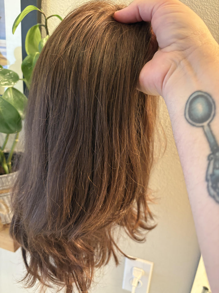 Thanks so much for sending a feedback with our Follea Rene Wig, "Custom Colored Tea" (R2958)! We take pride in providing high quality resale products at a discounted price! We're thrilled to how satisfied you are with the overall hair quality of the piece. So glad to be part of your alternative hair journey and thanks for trusting us!