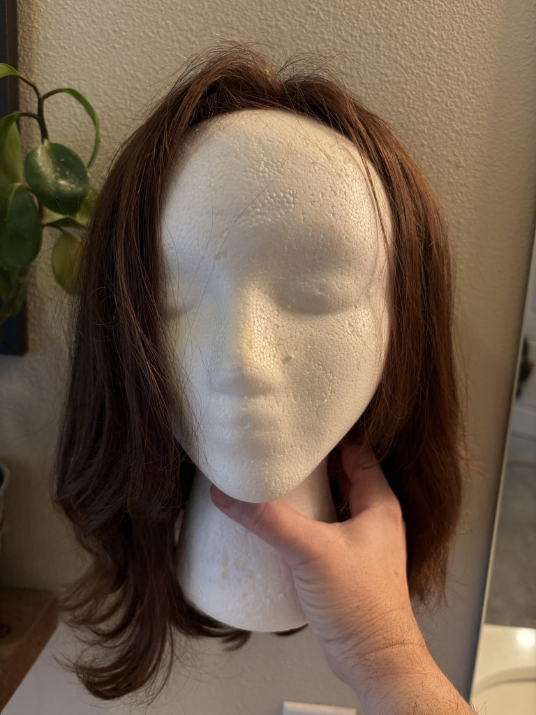 Other: I bought this wig and it is in new condition. I have a couple of times. It's gorgeous European hair. It sits on a foam head in my closet. I never wear it.