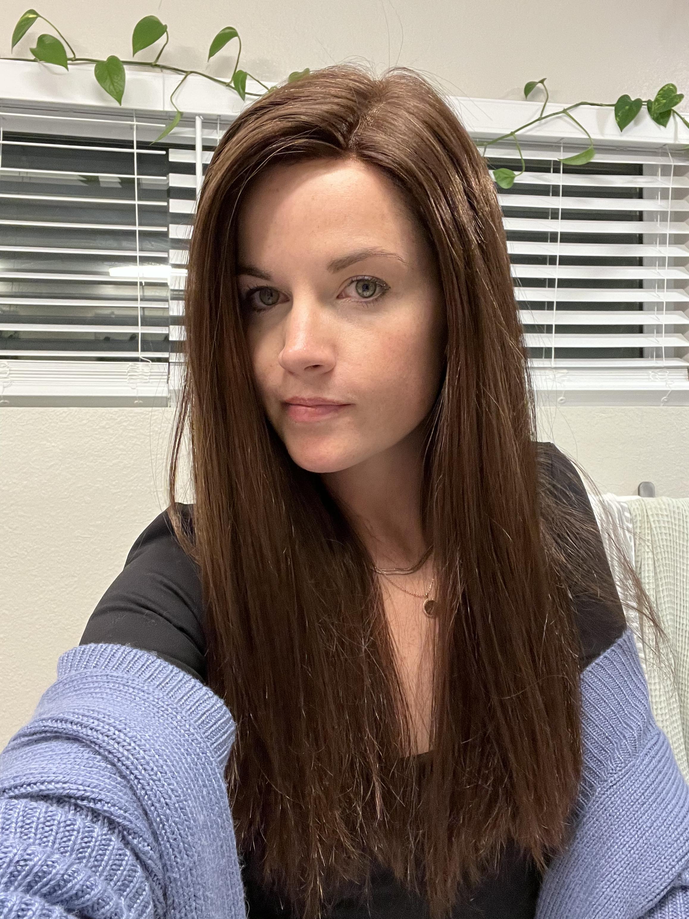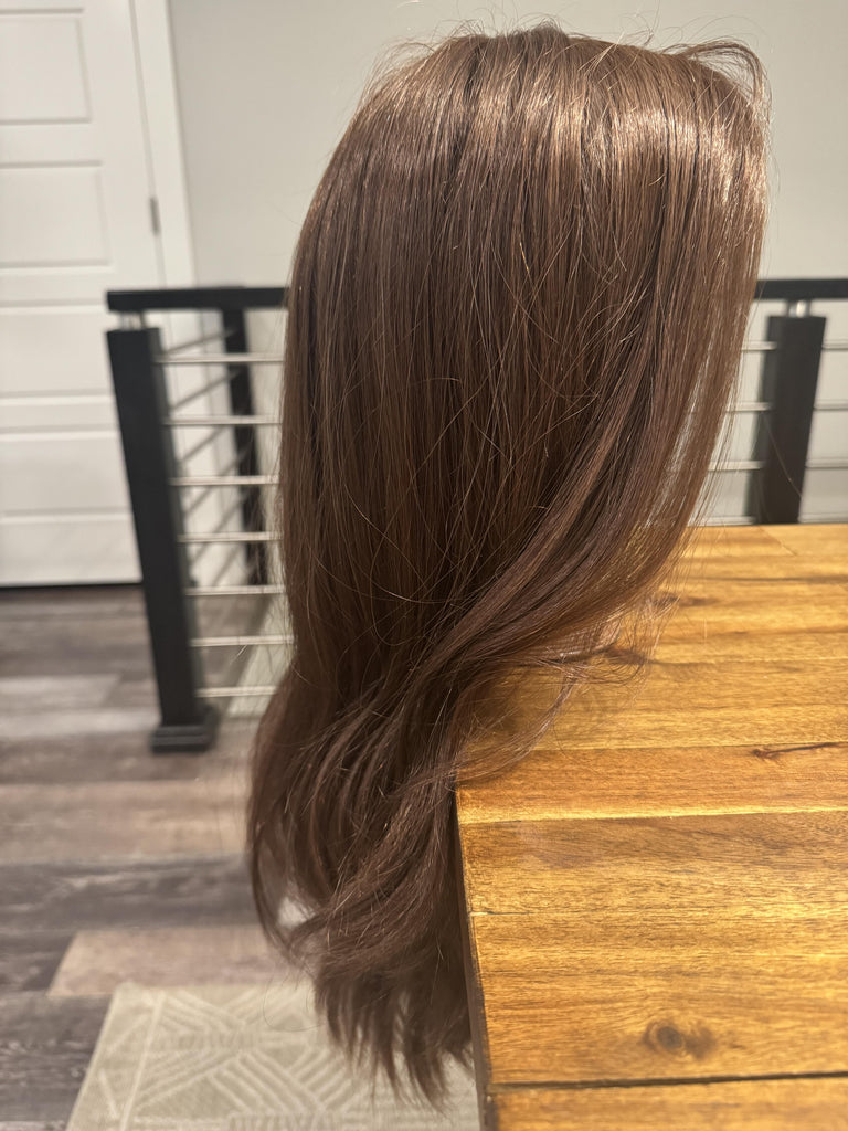 Other: The Follea René Wig by Daniel Alain is made of premium, World Select, human ponytail hair and has a slightly thicker texture with more fullness as compared to European hair. Return hairs provide volume and fullness. René features a lace front hairline for a natural look and has a hand-tied lace top with a machine wefted back. René can be parted in any direction and worn in low ponytails, top knots and single braids. This piece was purchased October 2021 for my wedding and I ended up choosing a topper for my wedding instead. I did wear the piece 15-20 times 2021-2023 with a few washes in between. The lace was very conservatively cut with lots of room to cut further back if desired.