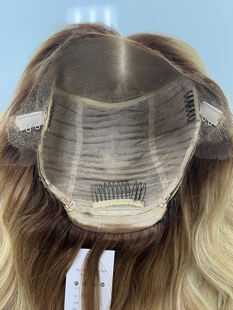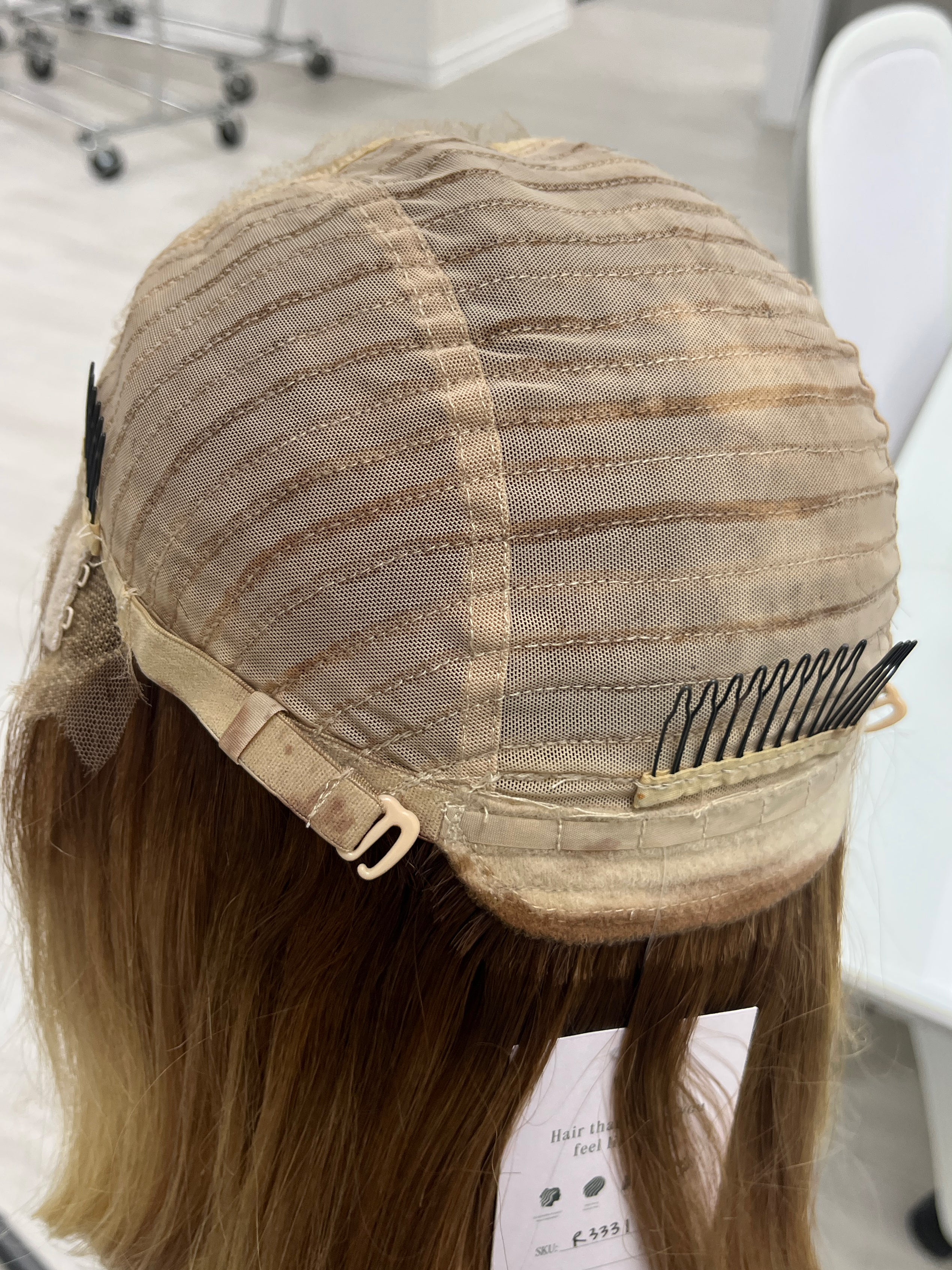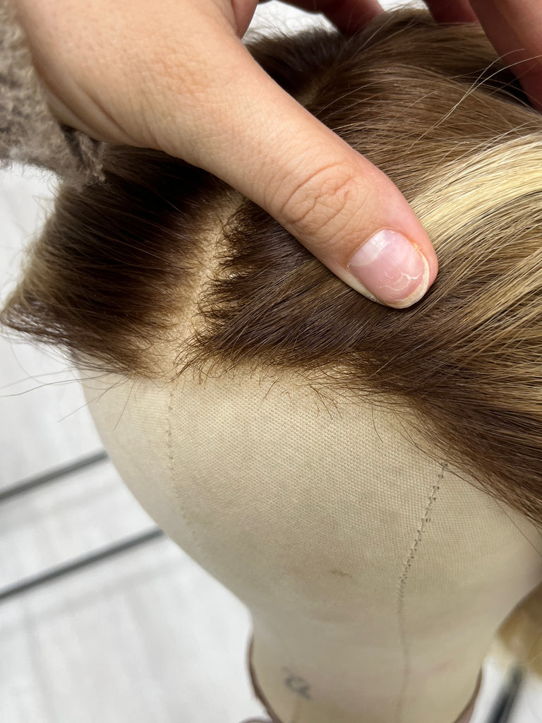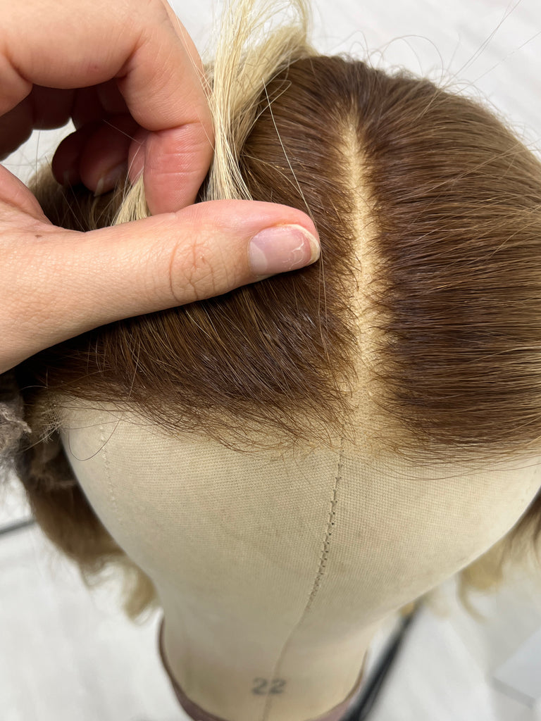 Considerations: This piece comes with loop holes to add a wig strap for extra security that can be purchased on Amazon. The lace slightly lifts (which may be due to the size) - this piece may best be worn with a bit of glue or tape. The root has some color irregularities/oxidization - you can take this piece to a professional to tone/neutralize if you do not prefer.