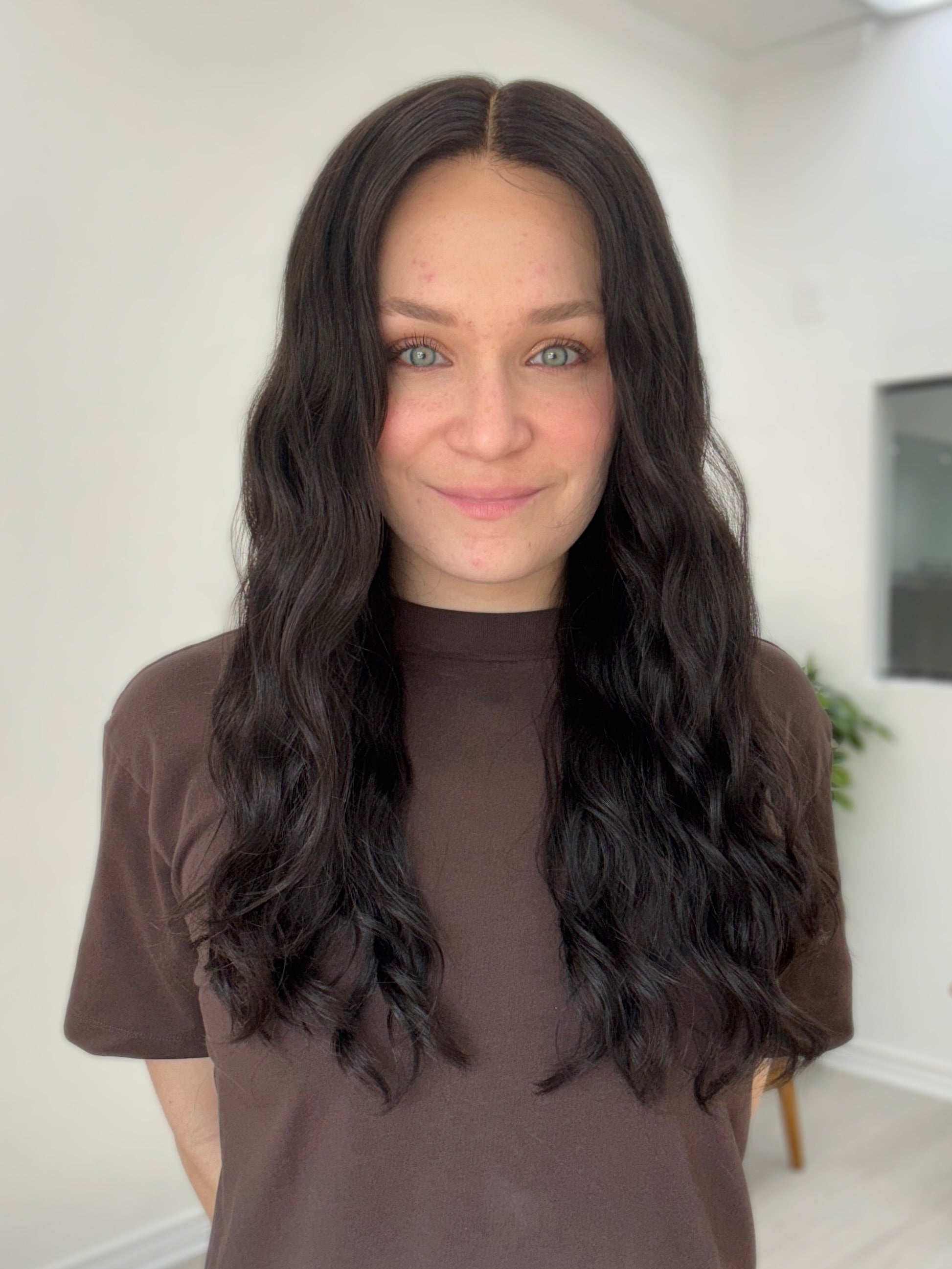 This is our best selling color of all time. She's our virgin darkest brown. If she looks like she's glowing, she practically is because virgin hair is so soft and silky! Halsey is Suran's go to color, a classic that never goes out of style.