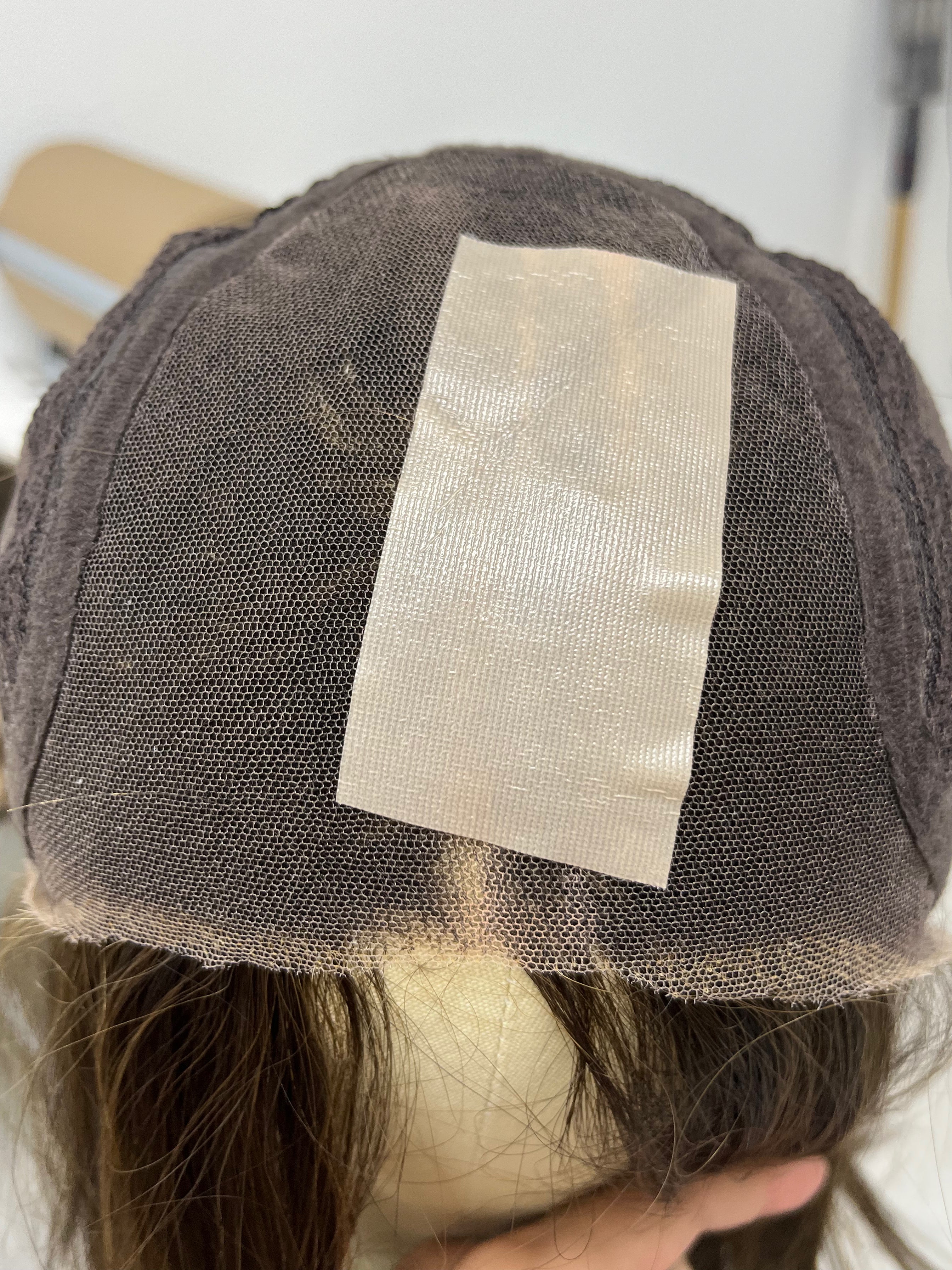 Other: Medium to medium light density. Lace is cut close to the hairline. Knots are bleached and lightly plucked near the front of the hairline about 1cm in. The rest of the knots are not bleached. Note: there is makeup/concealer on the lace front that is visible (see photos for reference). There is scar tape applied on the lace front that can be removed. No clips or comb.