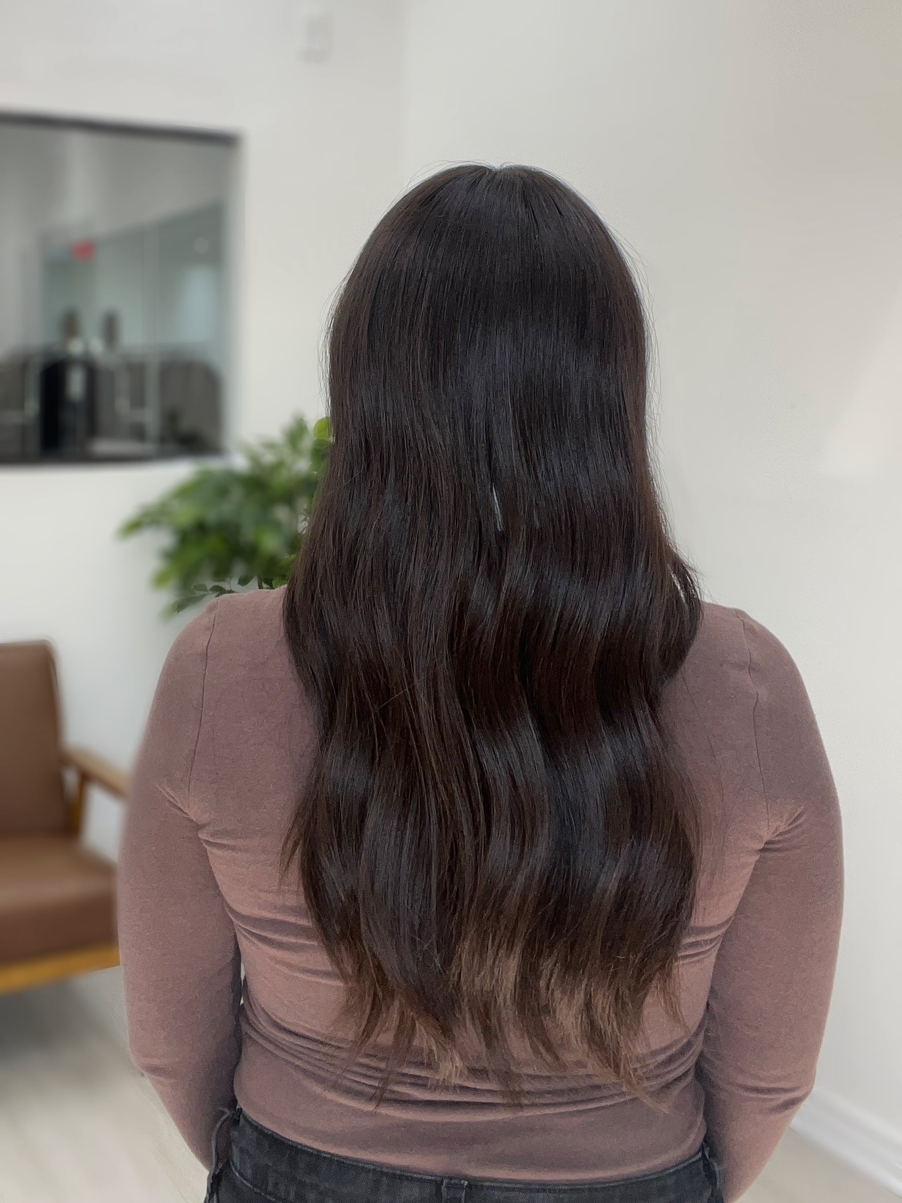 Considerations: The hair feels slightly dry toward the ends, a deep conditioning treatment can help maintain nourishment on the hair over time. Overall, in good condition with plenty of life left.