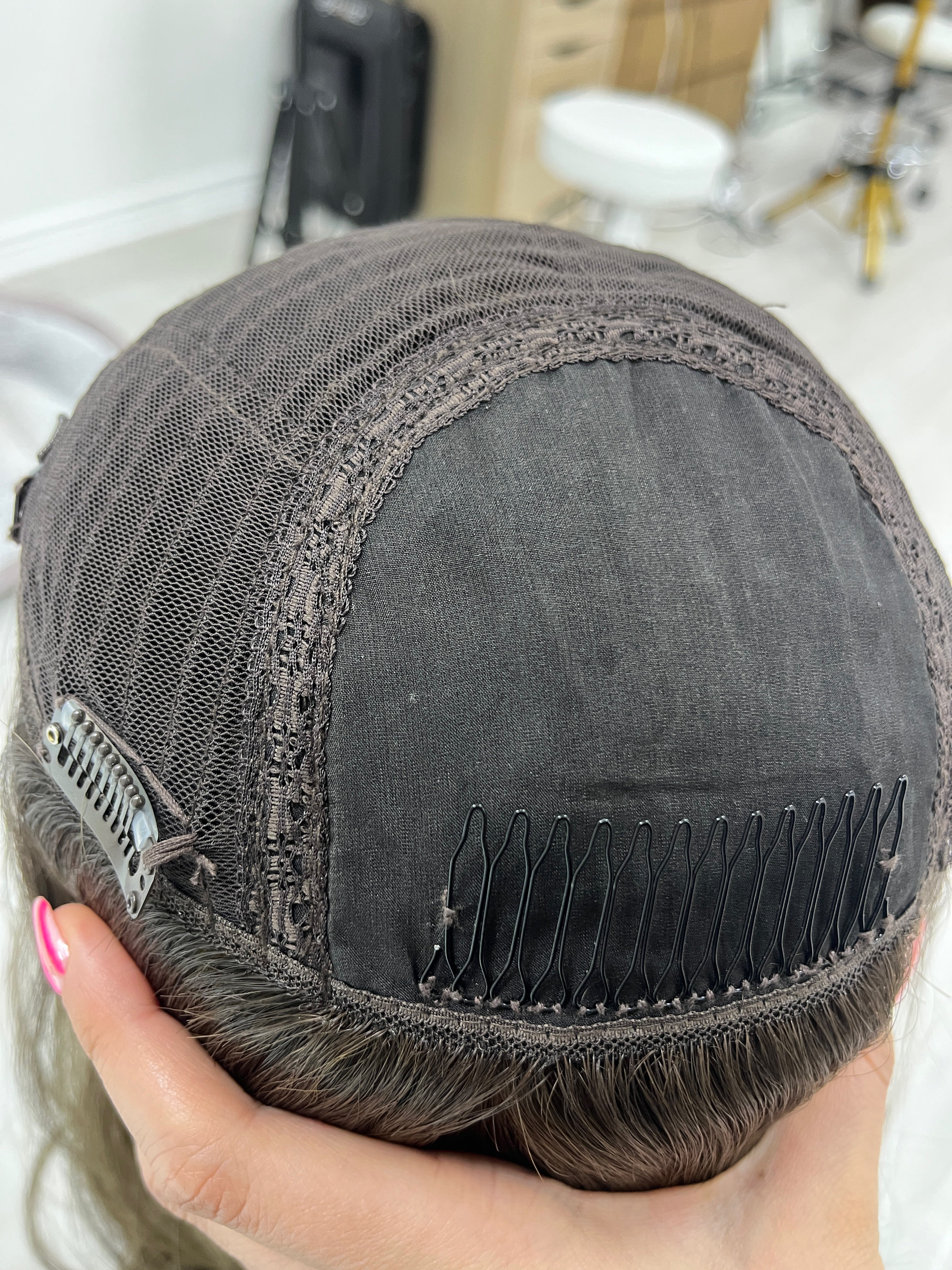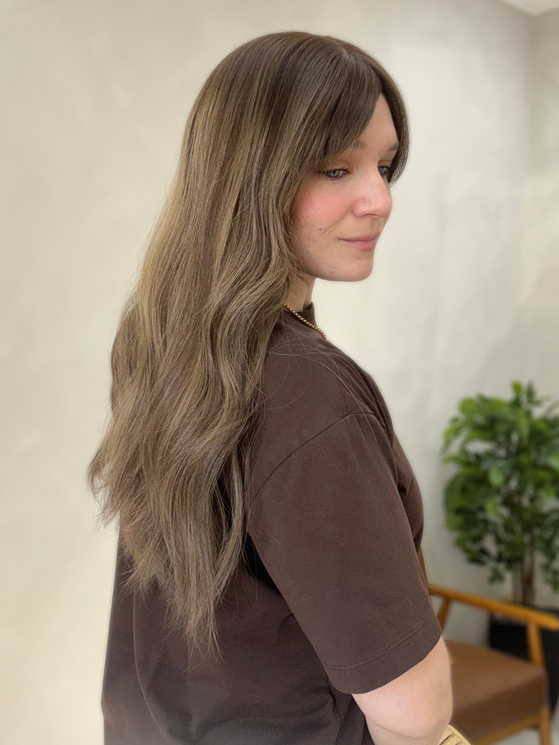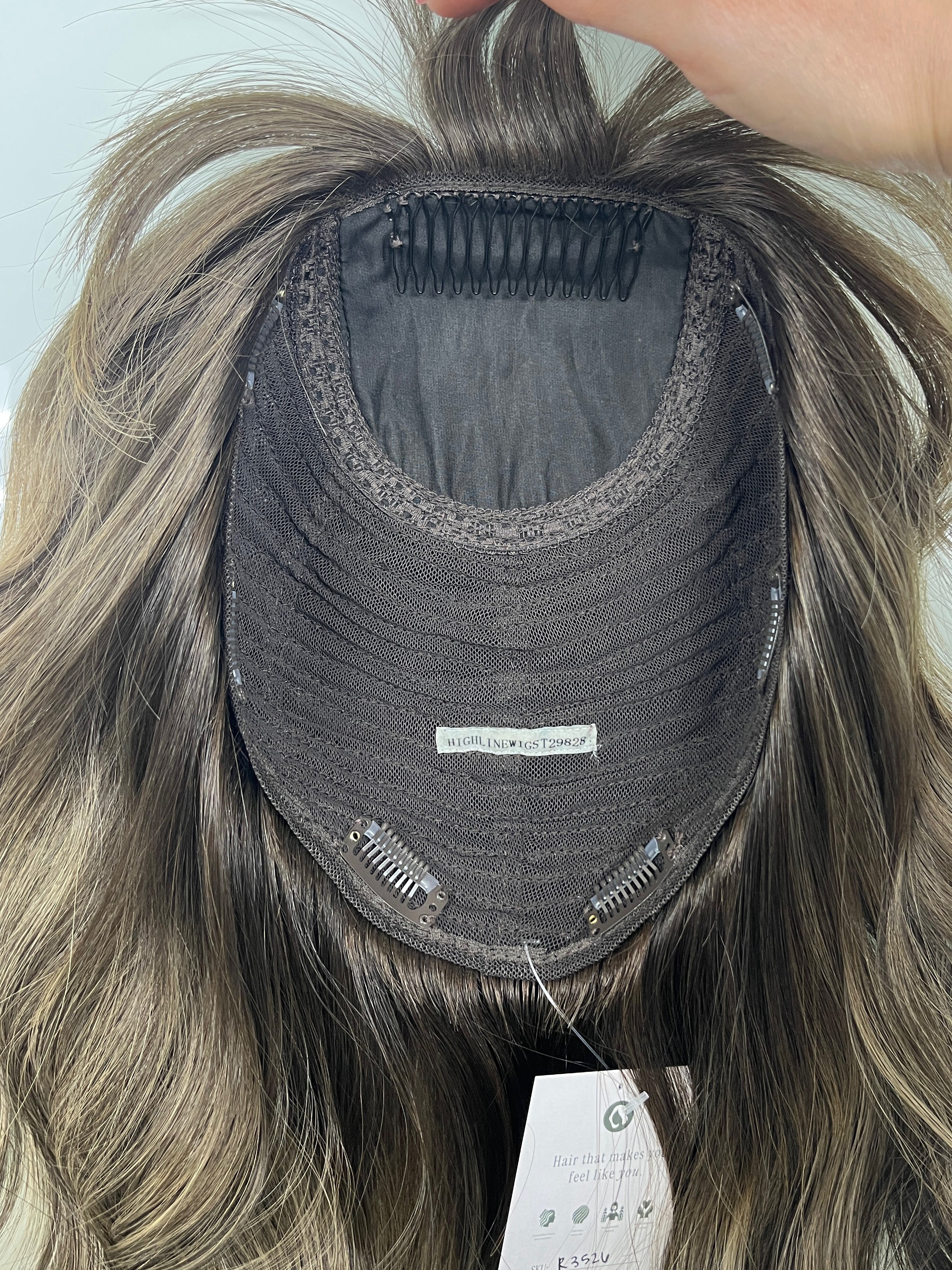 This is a great Highline Wigs hair topper find as we rarely get in the bigger cap sizes! With a bigger cap size, you get a lot more coverage and extra comfort as the clips will be positioned lower on your head. This hair topper features dimensional face framing and bangs making it a great beginner friendly topper as you don't have to blend much (if any) of your hair with it. If you've been looking for a mermaid length hair topper without it feeling heavy then this is perfect as the density is full of body and volume yet lightweight and comfortable. The neutral/ashy tones are ideal for those with neutral to cool undertones.