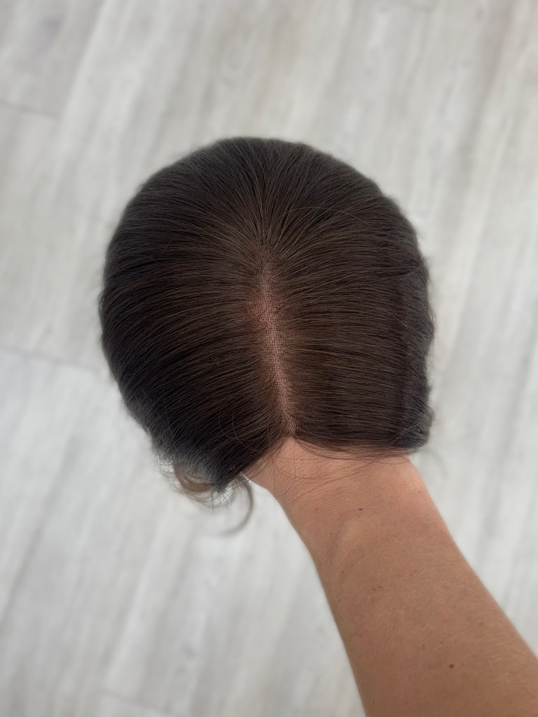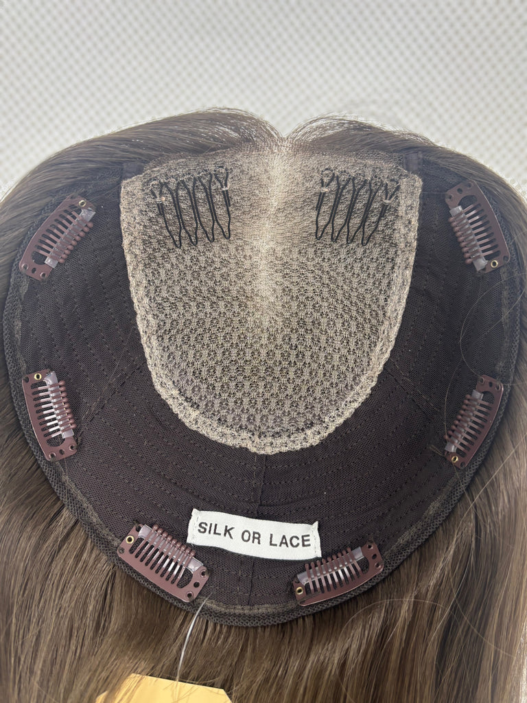 Silk or Lace Collection closed lace hair toppers function as your hair, but better! They are ultra low density, lightweight, and have a paper thin rim for an easy seamless, realistic blend for every day wear. Take note of our carefully designed details, such as our durable double lace, secure mini combs in front, and soft fine Brazilian hair!