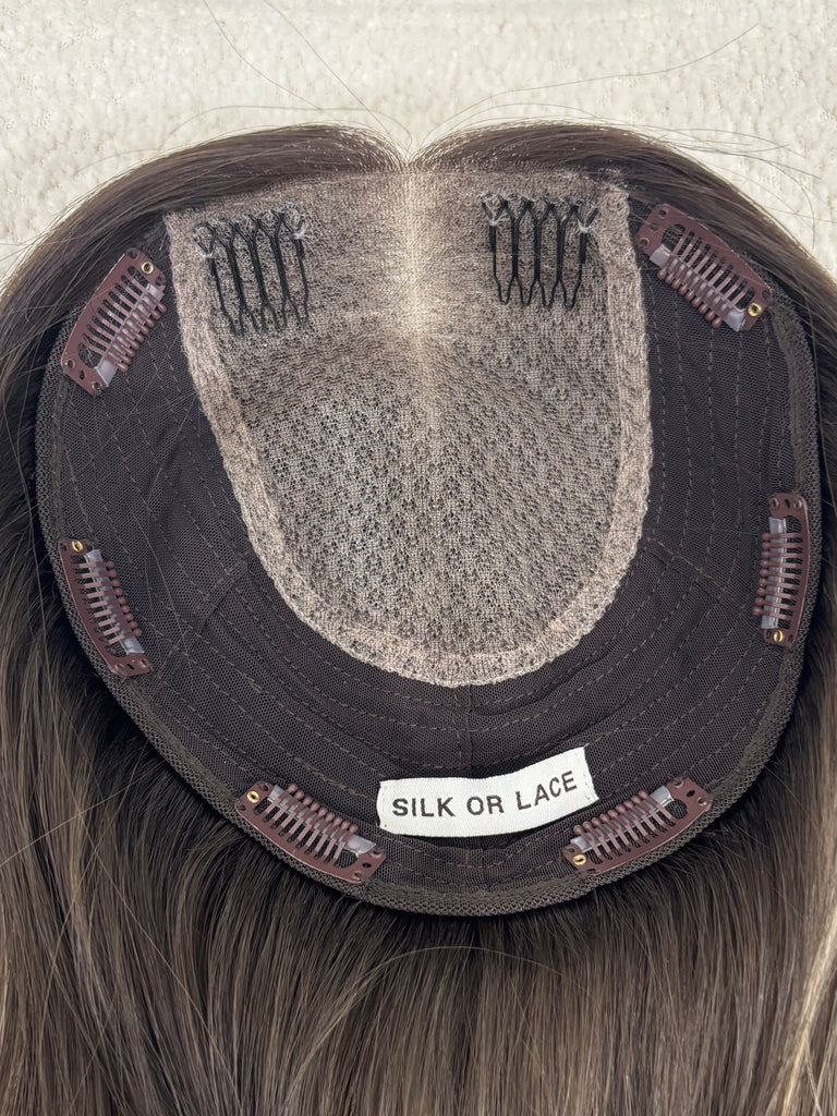 Silk or Lace Collection closed lace hair toppers function as your hair, but better! They are ultra low density, lightweight, and have a paper thin rim for an easy seamless, realistic blend for every day wear. Take note of our carefully designed details, such as our durable double lace, secure mini combs in front, and soft fine Brazilian hair!