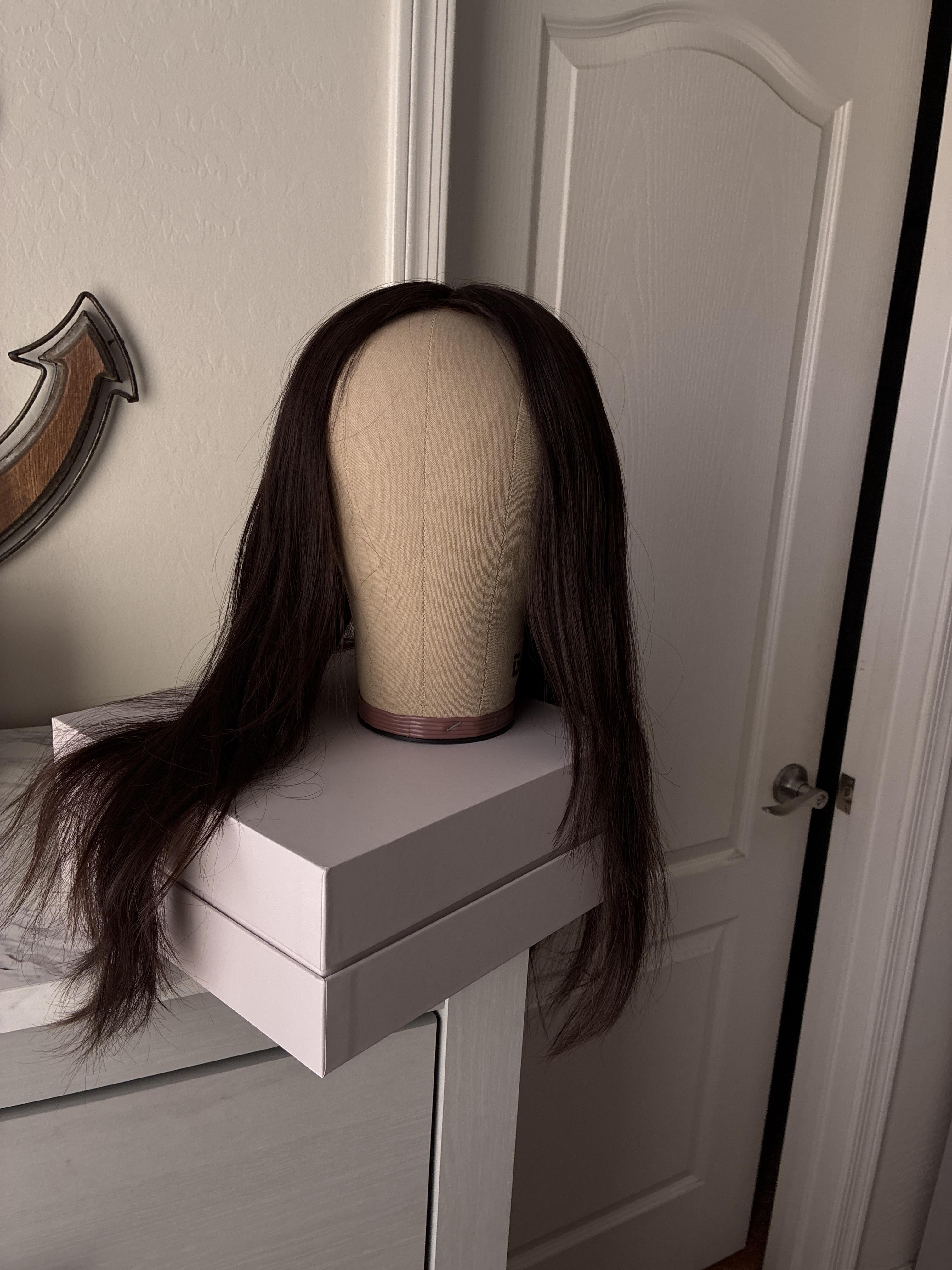 Other: Light weight/low density. 100% Remy Hair. Comfortable cap with stay on technology (no glue or tape needed). This is one of my favorite Lusta colors as it’s virgin hair and such a rich beautiful brunette that is just waiting for the right person to showcase her more often! I am usually a size medium and this fits just right.