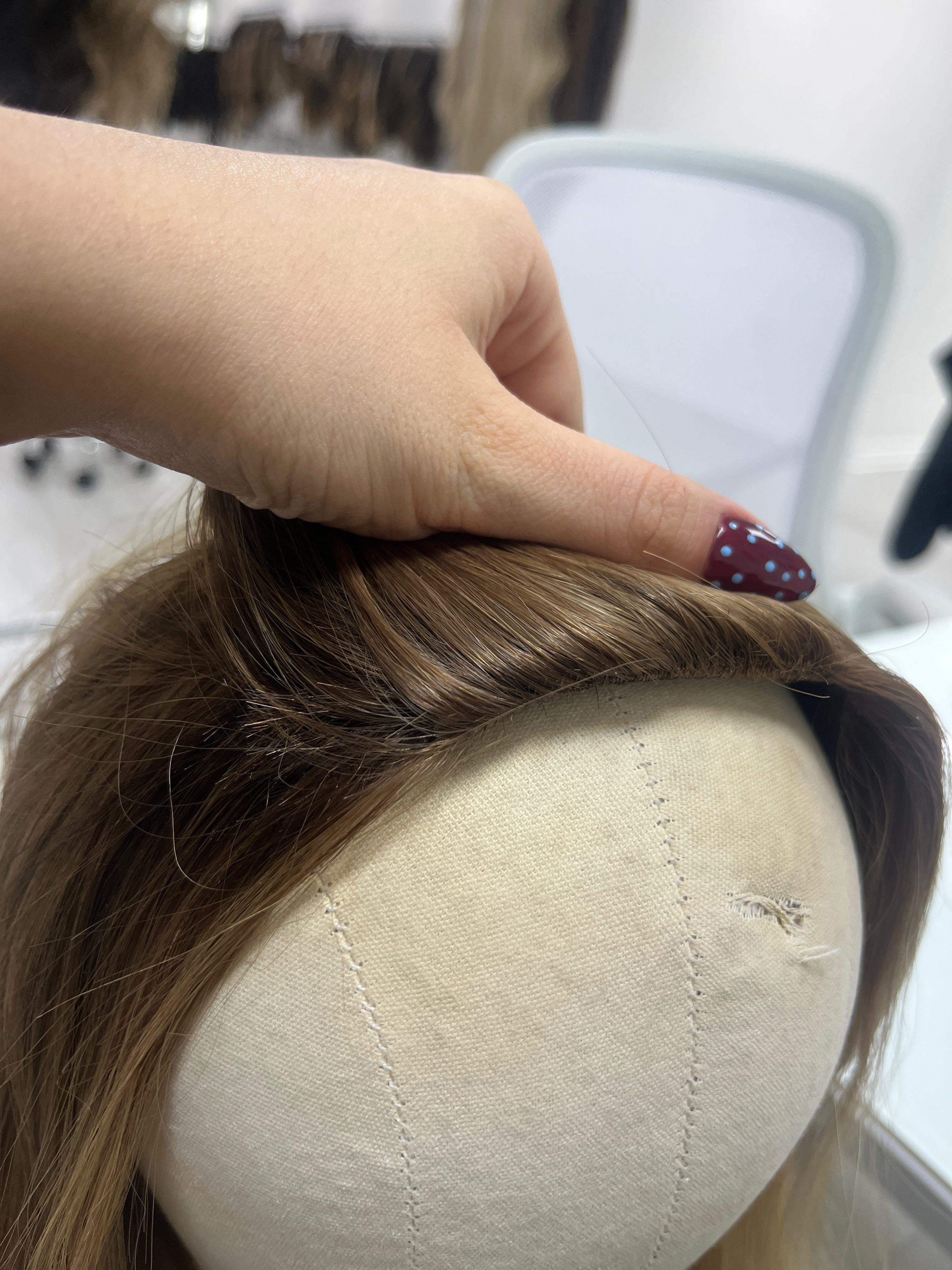 To see how we took measurements for this hair piece, read our Measurement Procedure.