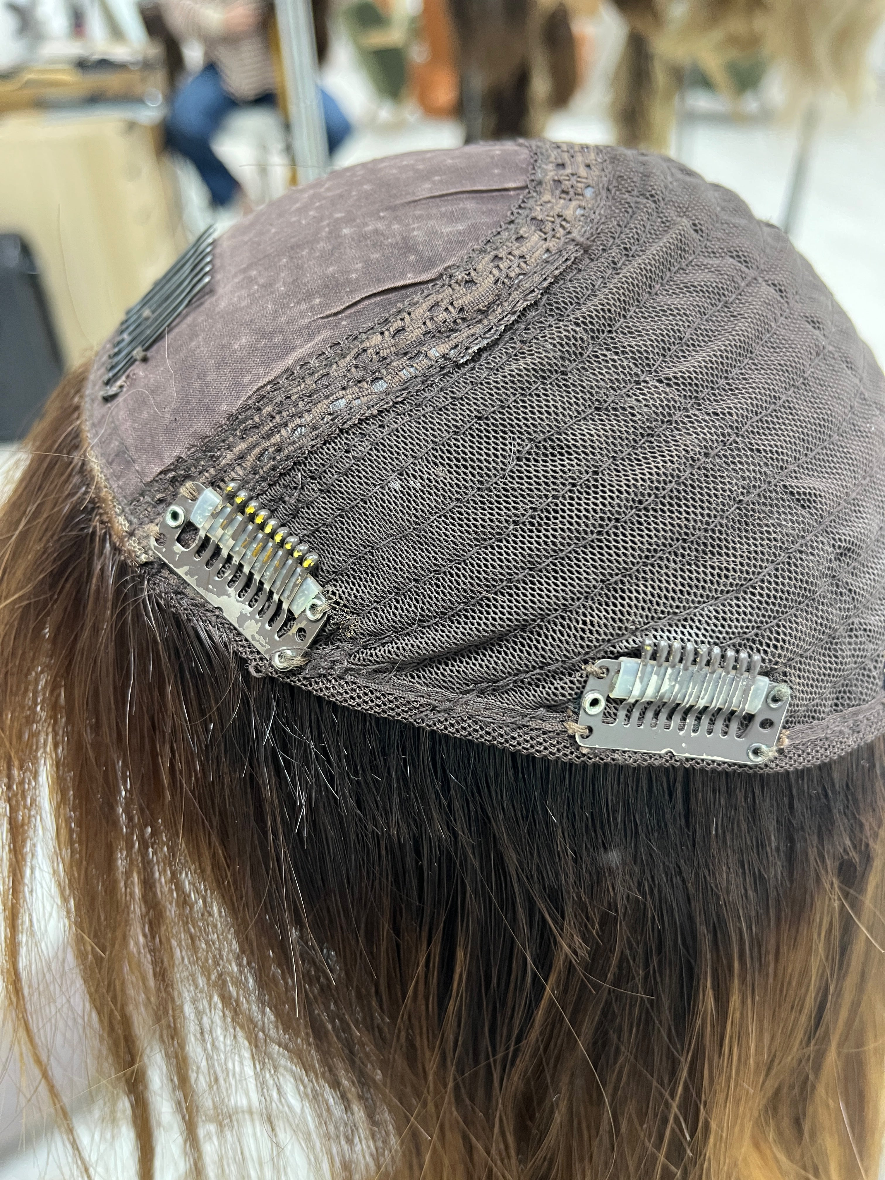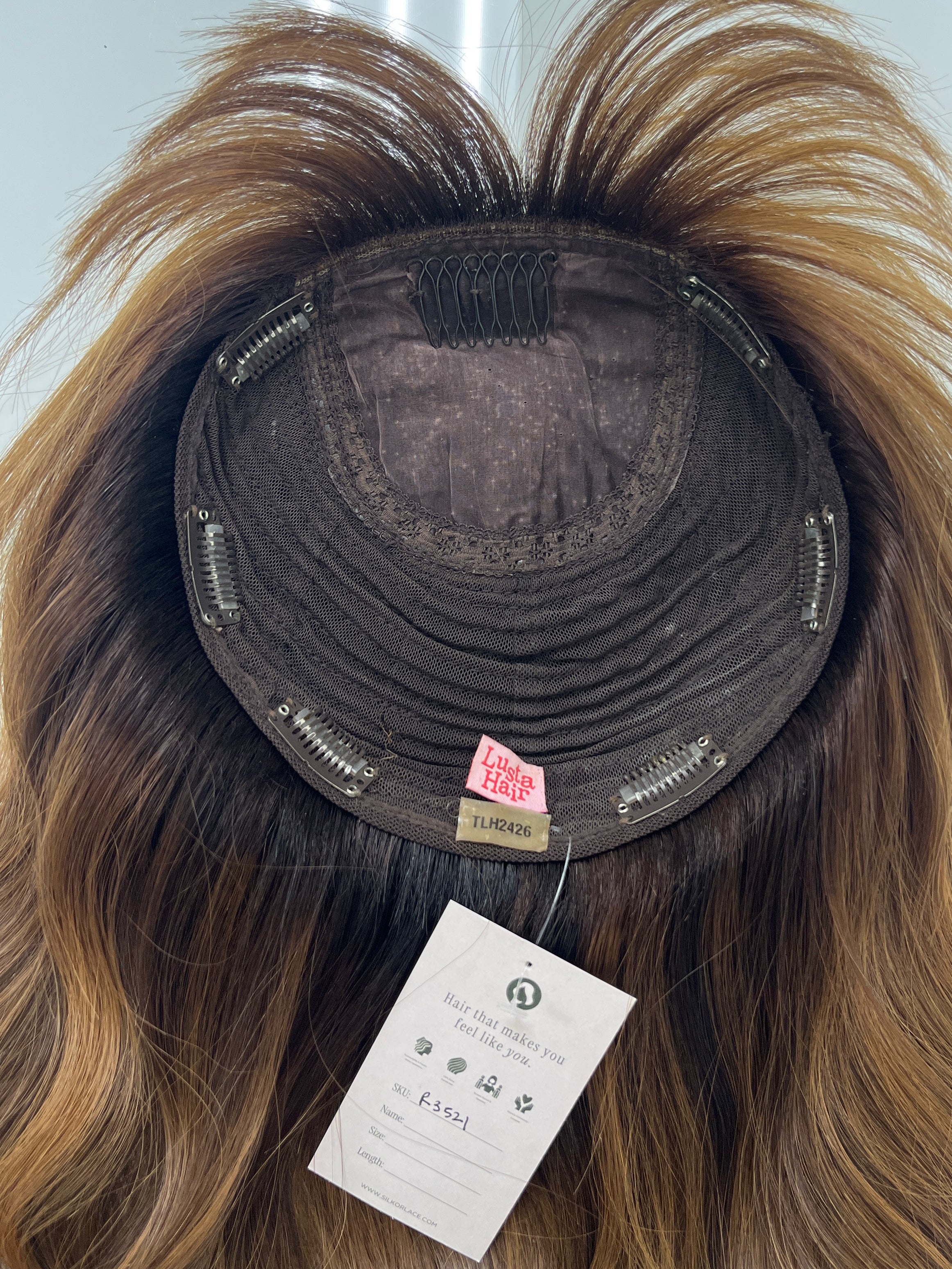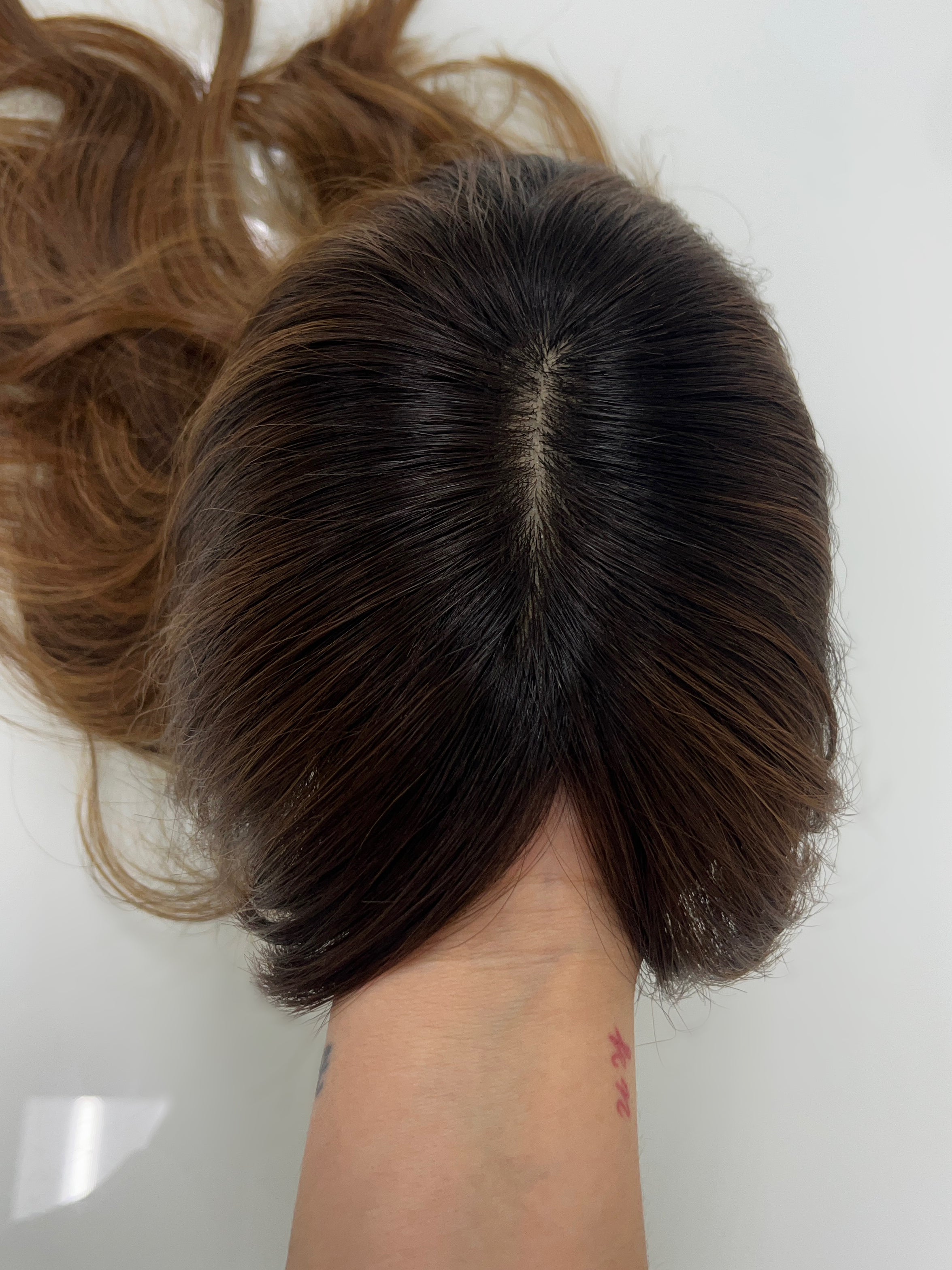 The silk top toppers from Lusta Hair are a great option for those looking for a hair loss or thinning hair solution to add extra coverage/volume. The silk top construction is meant to be blended with your hair for an ultra realistic scalp-like look. A great option for those looking for a dimensional copper brunette with warm tones throughout.