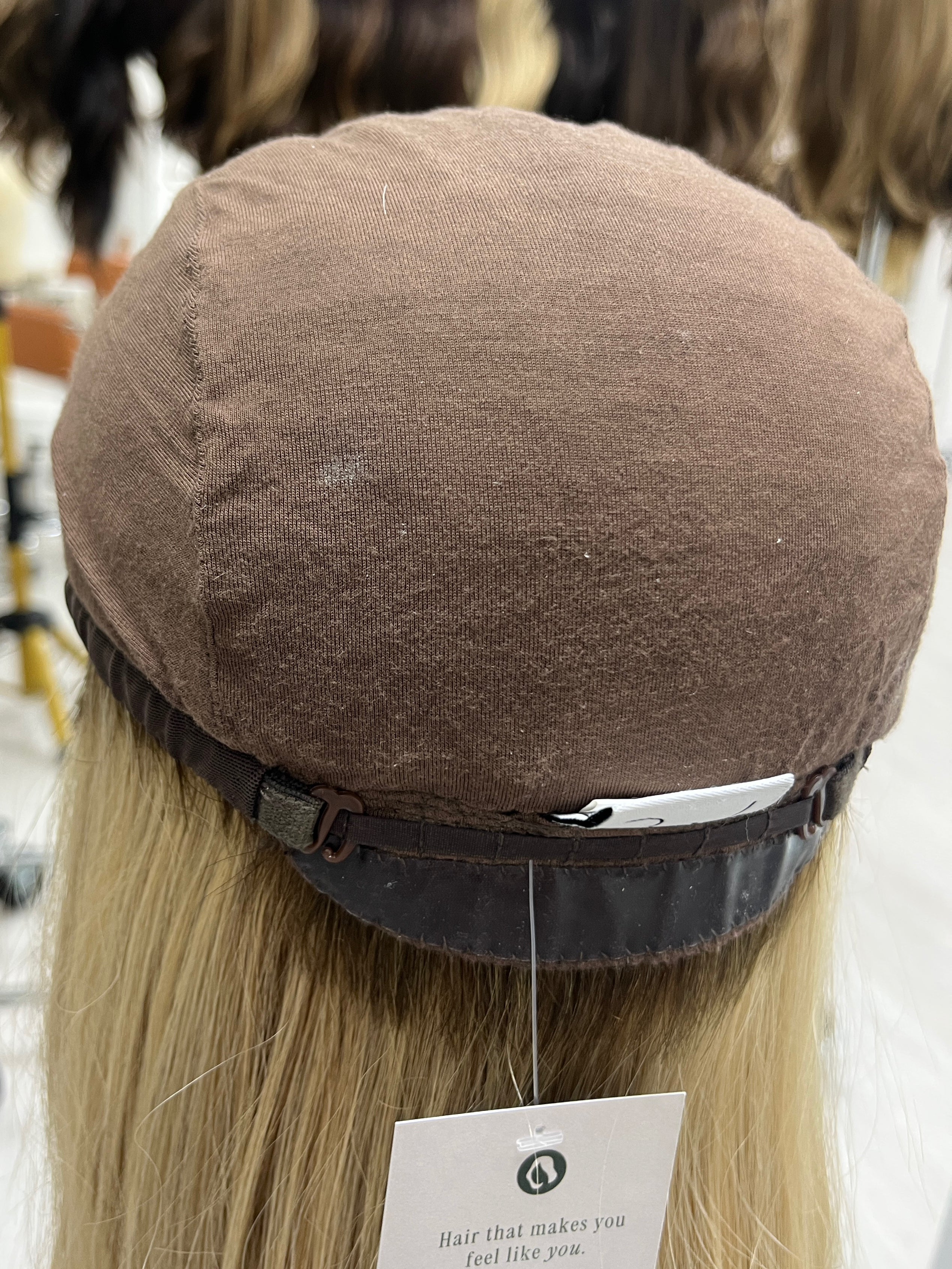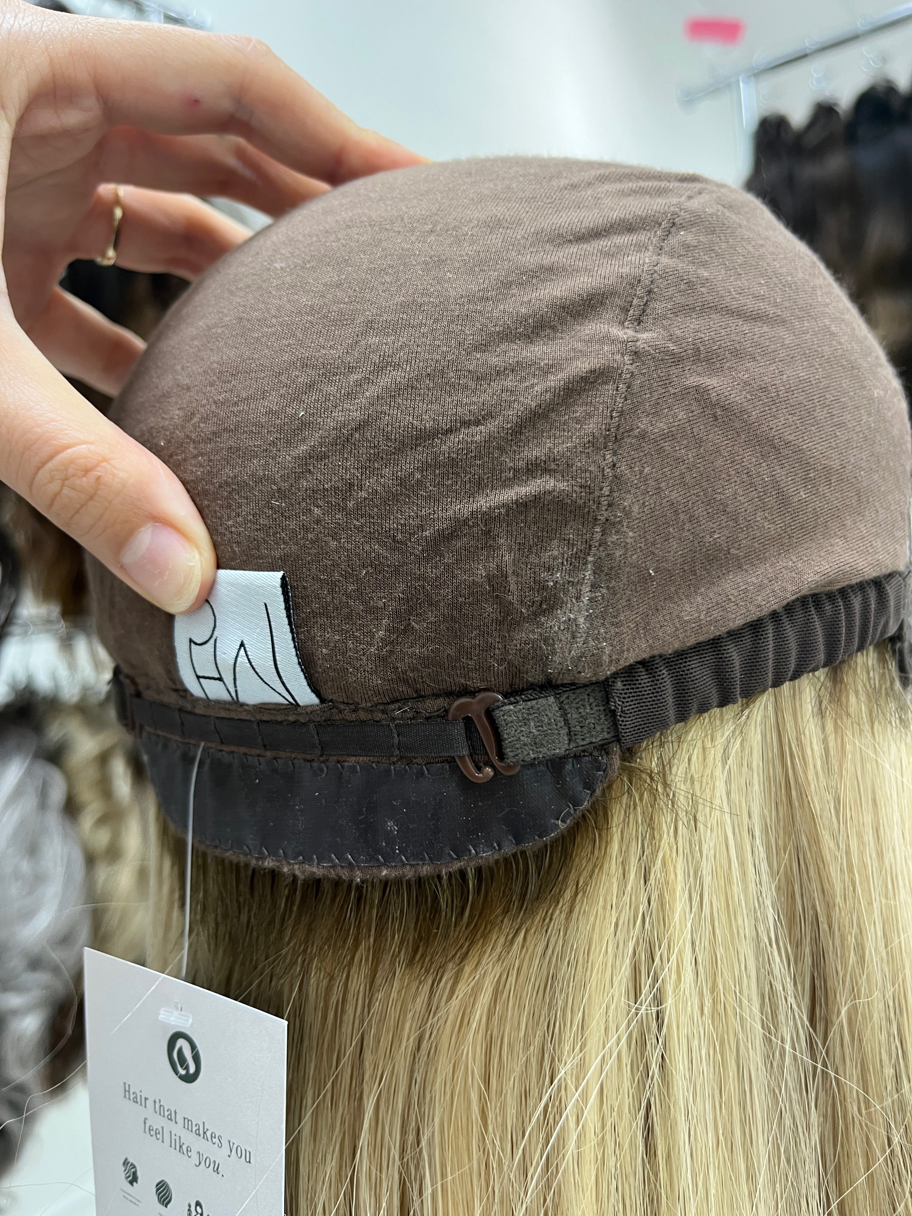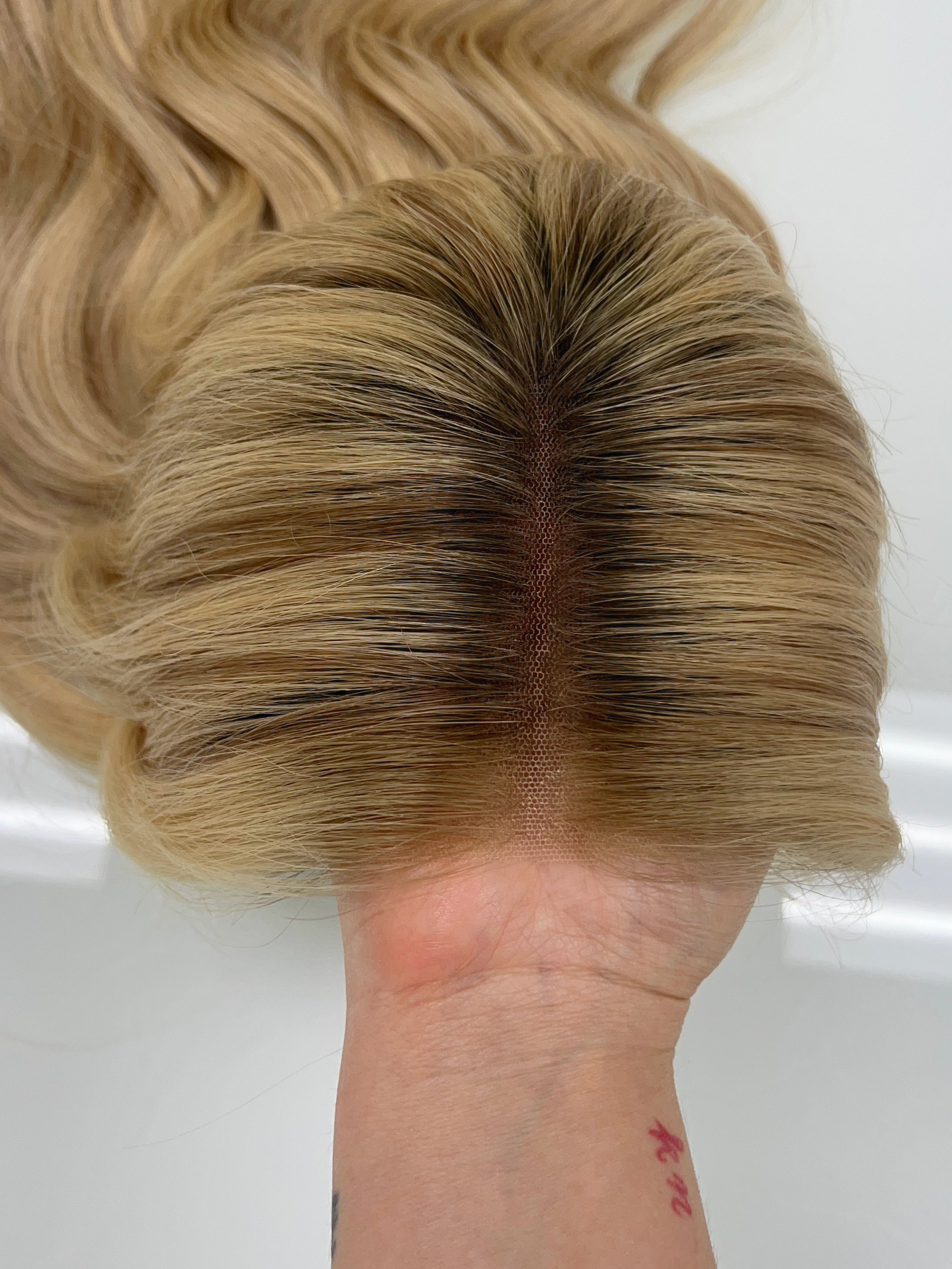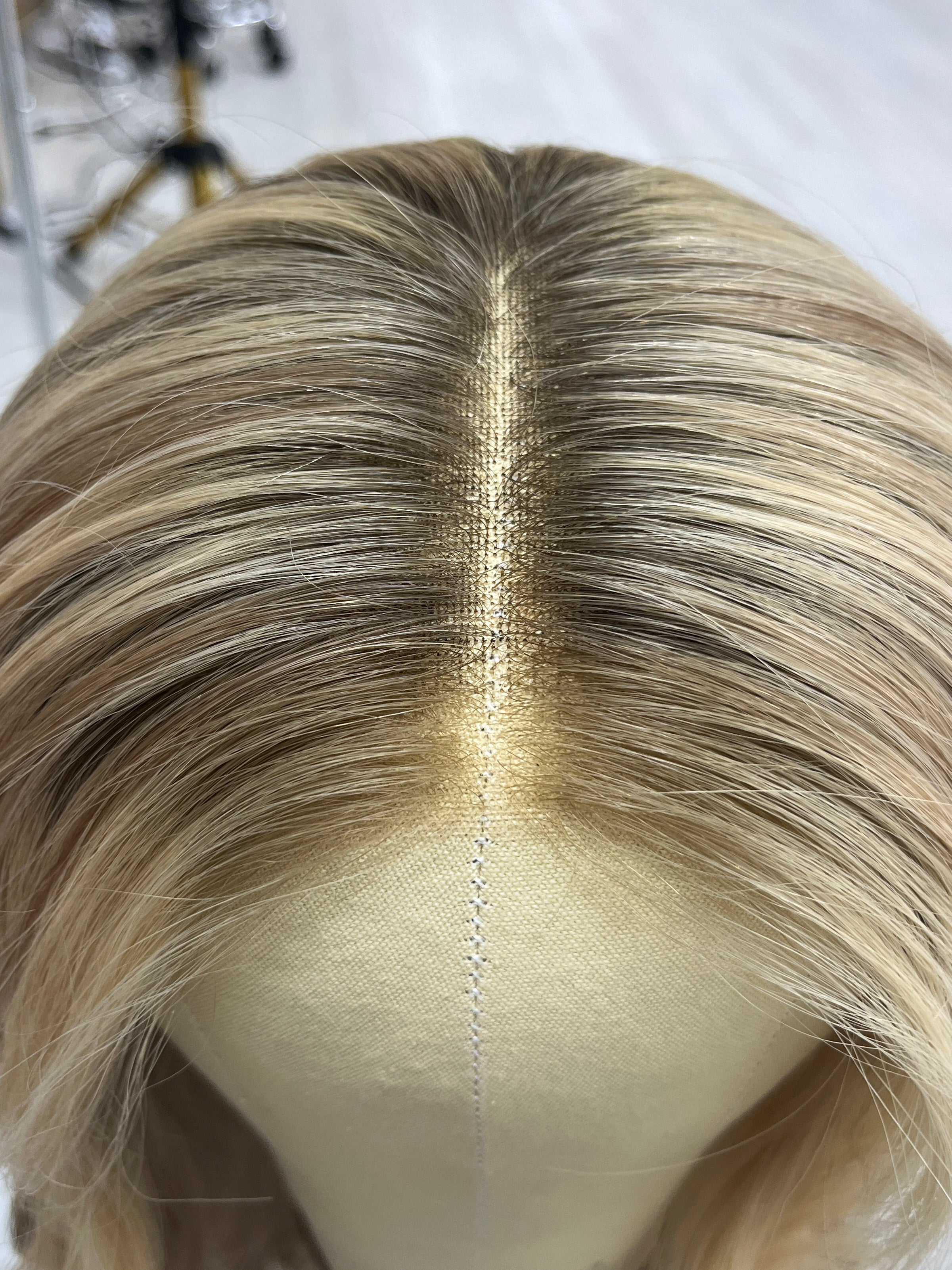 Considerations: There are some color irregularities on the root blend as the first inch or so is a beige blonde while the rest of the root is a shadow root. Overall, in good condition.