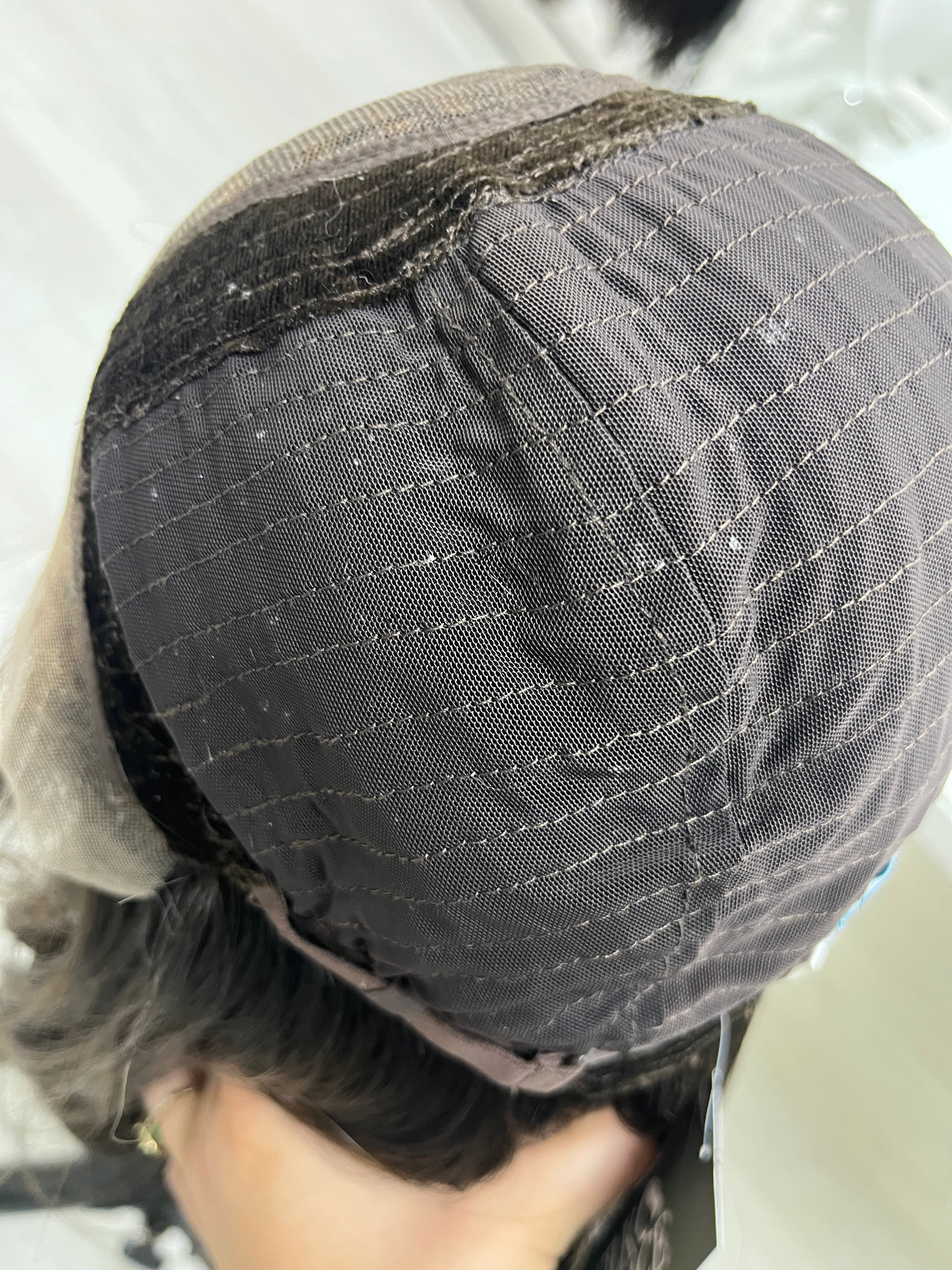 Other: Medium to medium light density (about 120-125%). The lace is uncut. Knots are lightly bleached near the front of the hairline about less than 1 cm in. The rest of the knots are not bleached. The knots are lightly plucked. There is staining inside the cap that is not visible on the outside and does not affect the integrity of the piece. There is loose thread by the ear tabs that does not affect the integrity of the piece. The seller added a haircut.