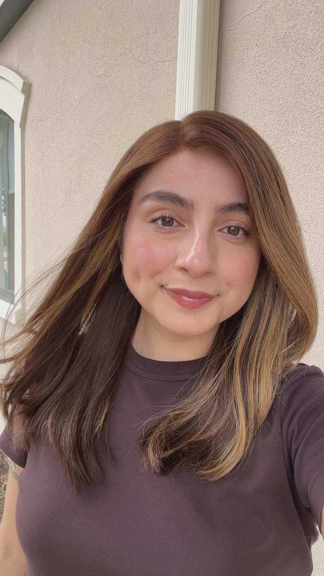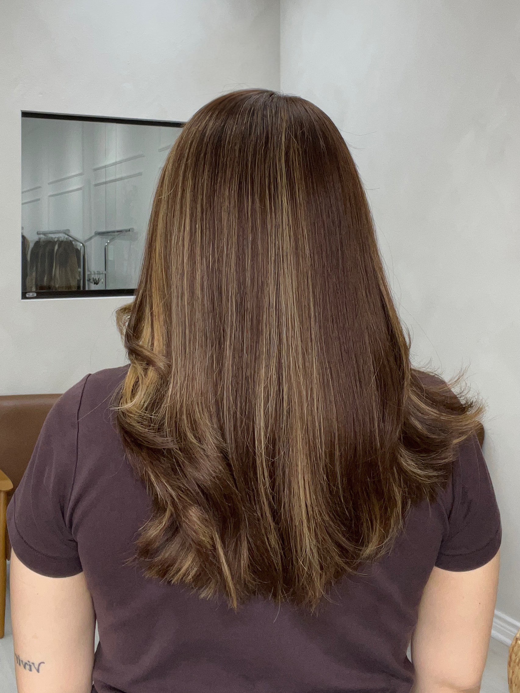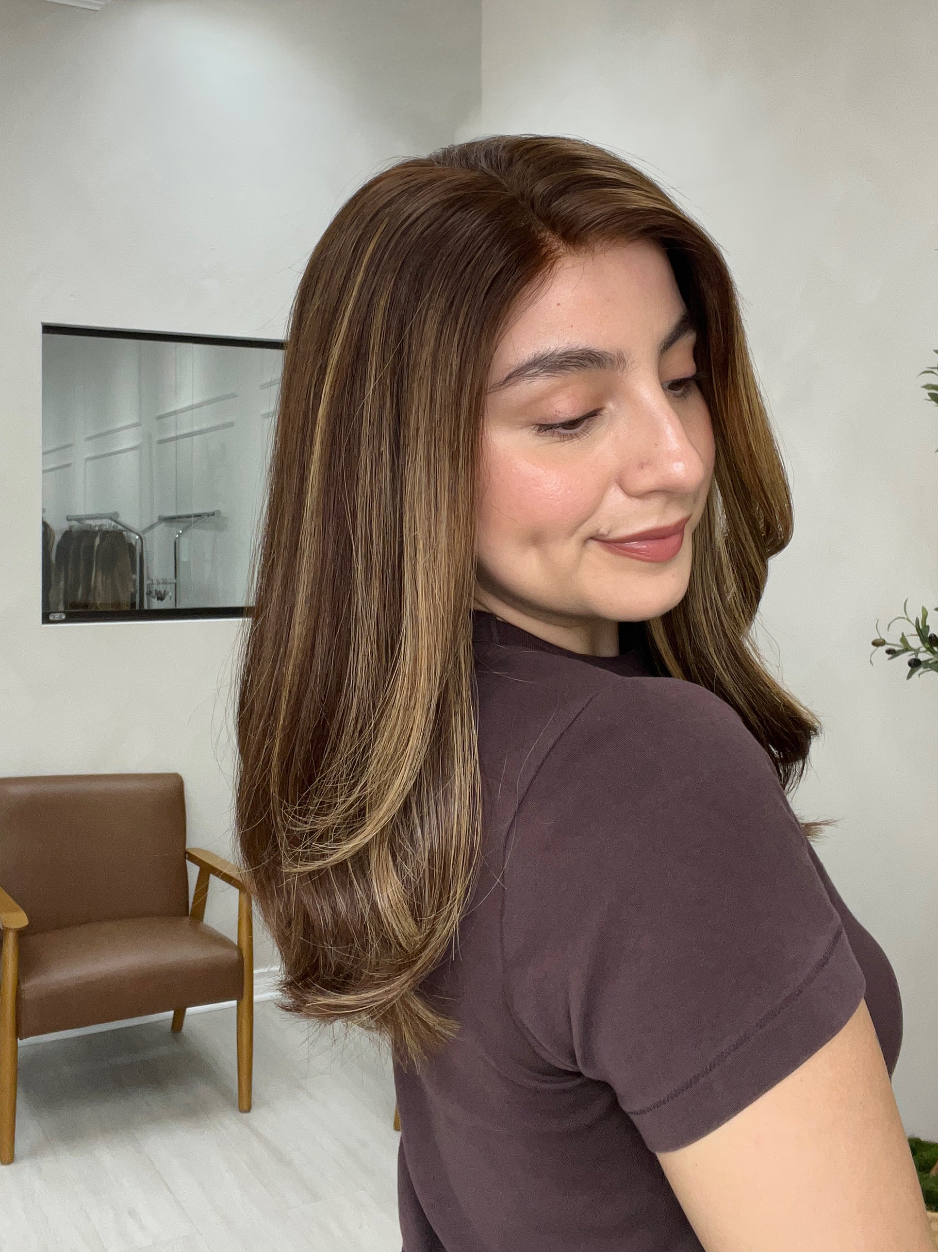Color: Warm chocolate brown base with blonde highlights