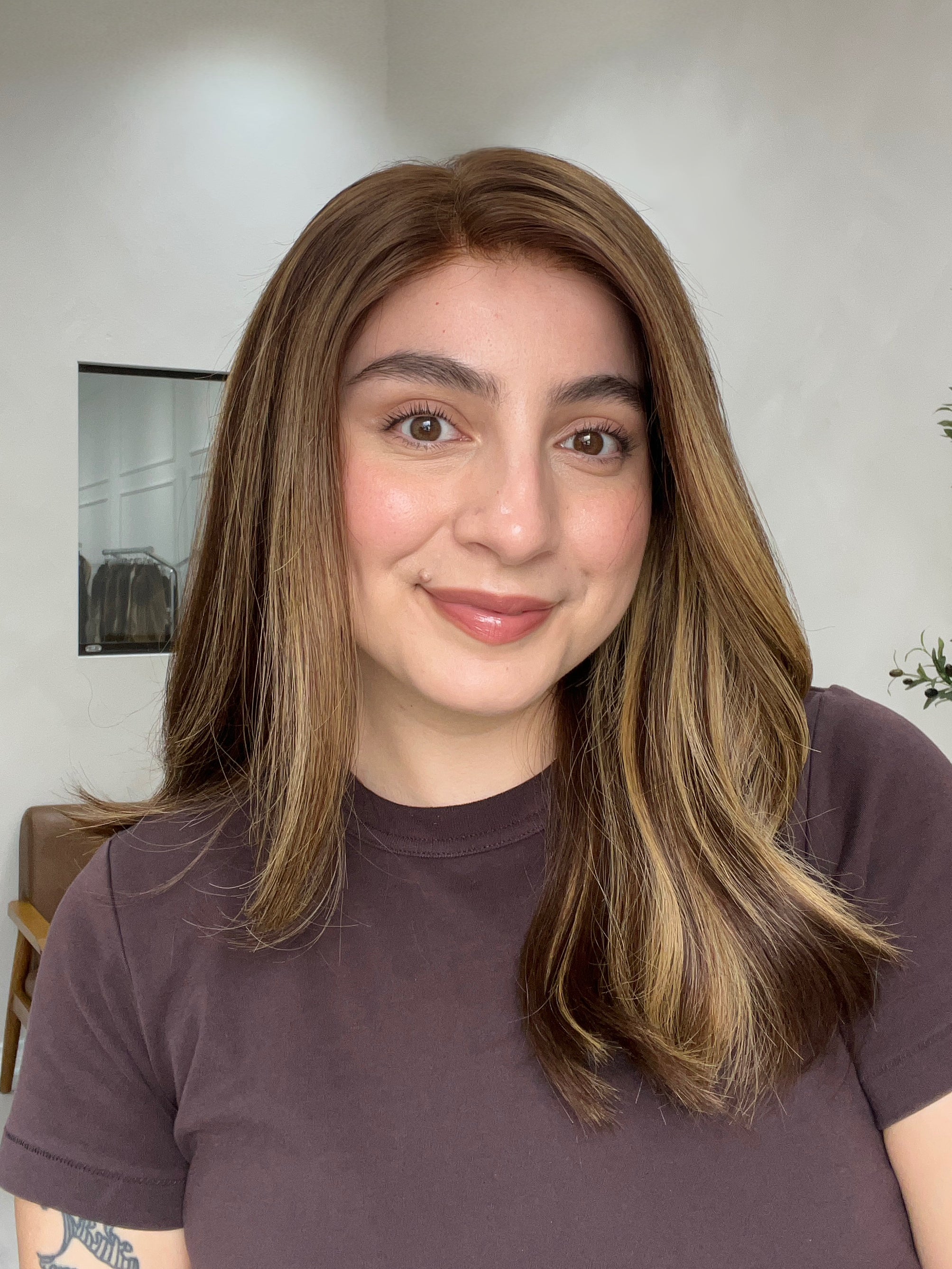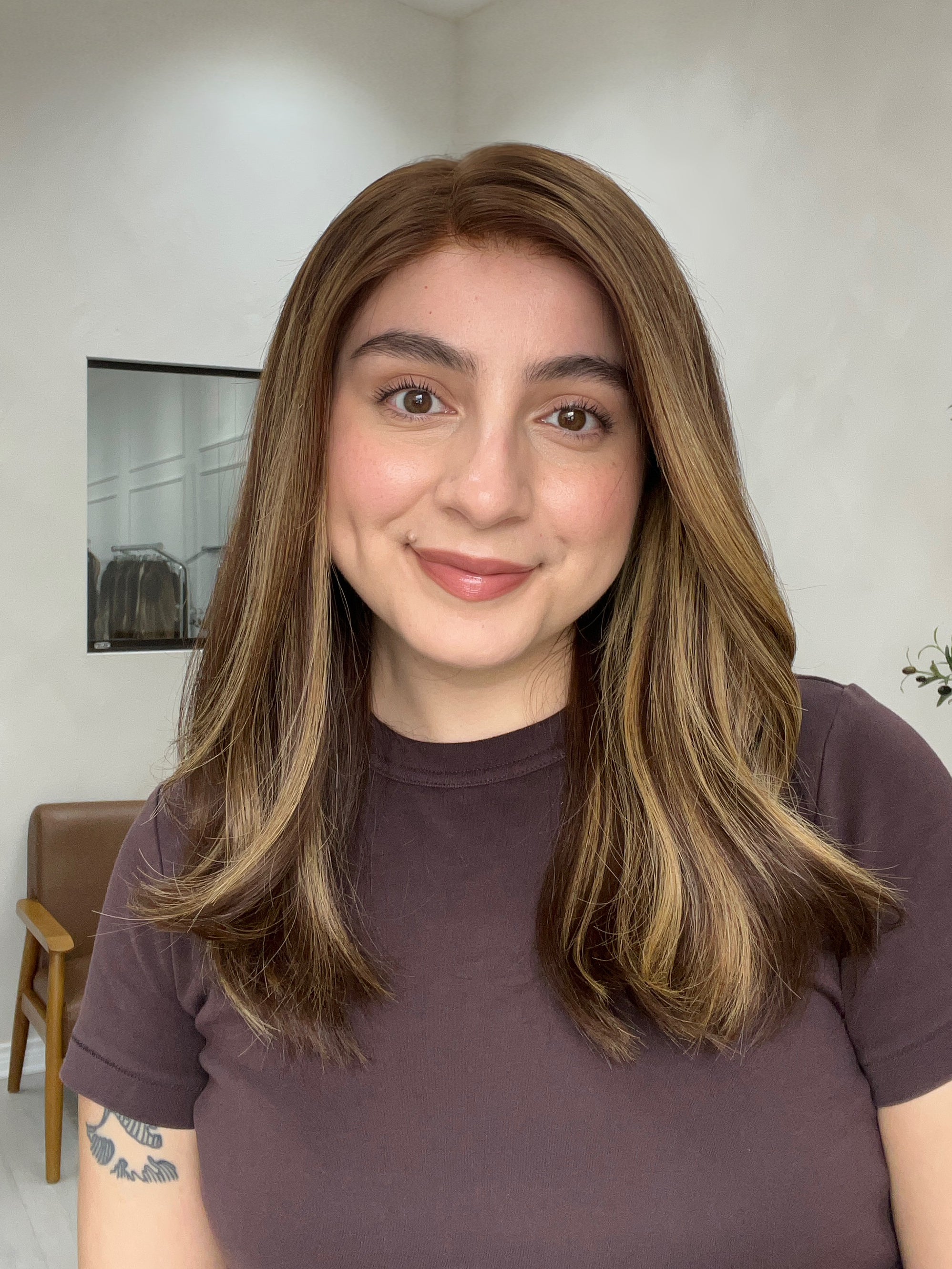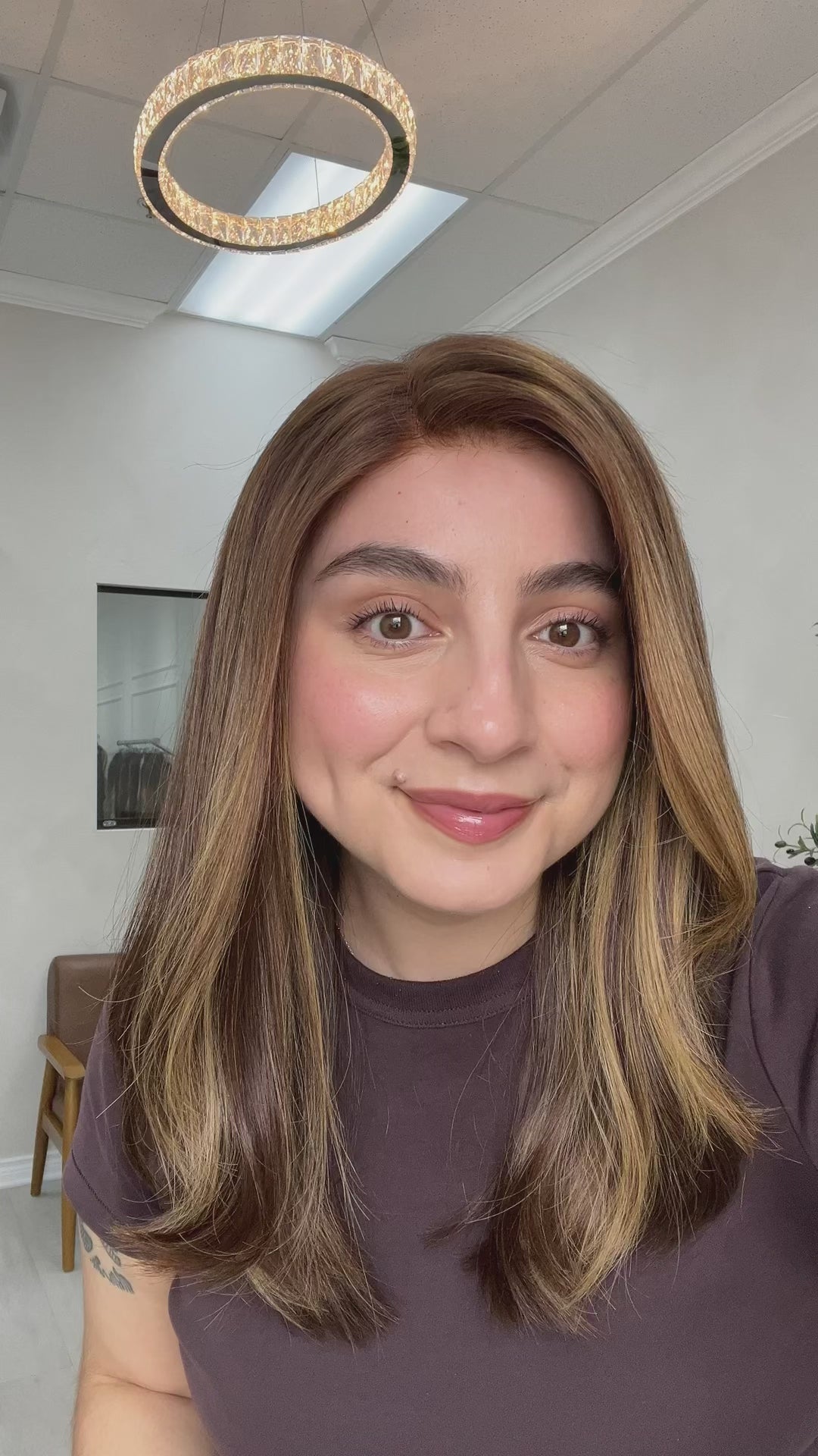 Color: Warm chocolate brown base with blonde highlights