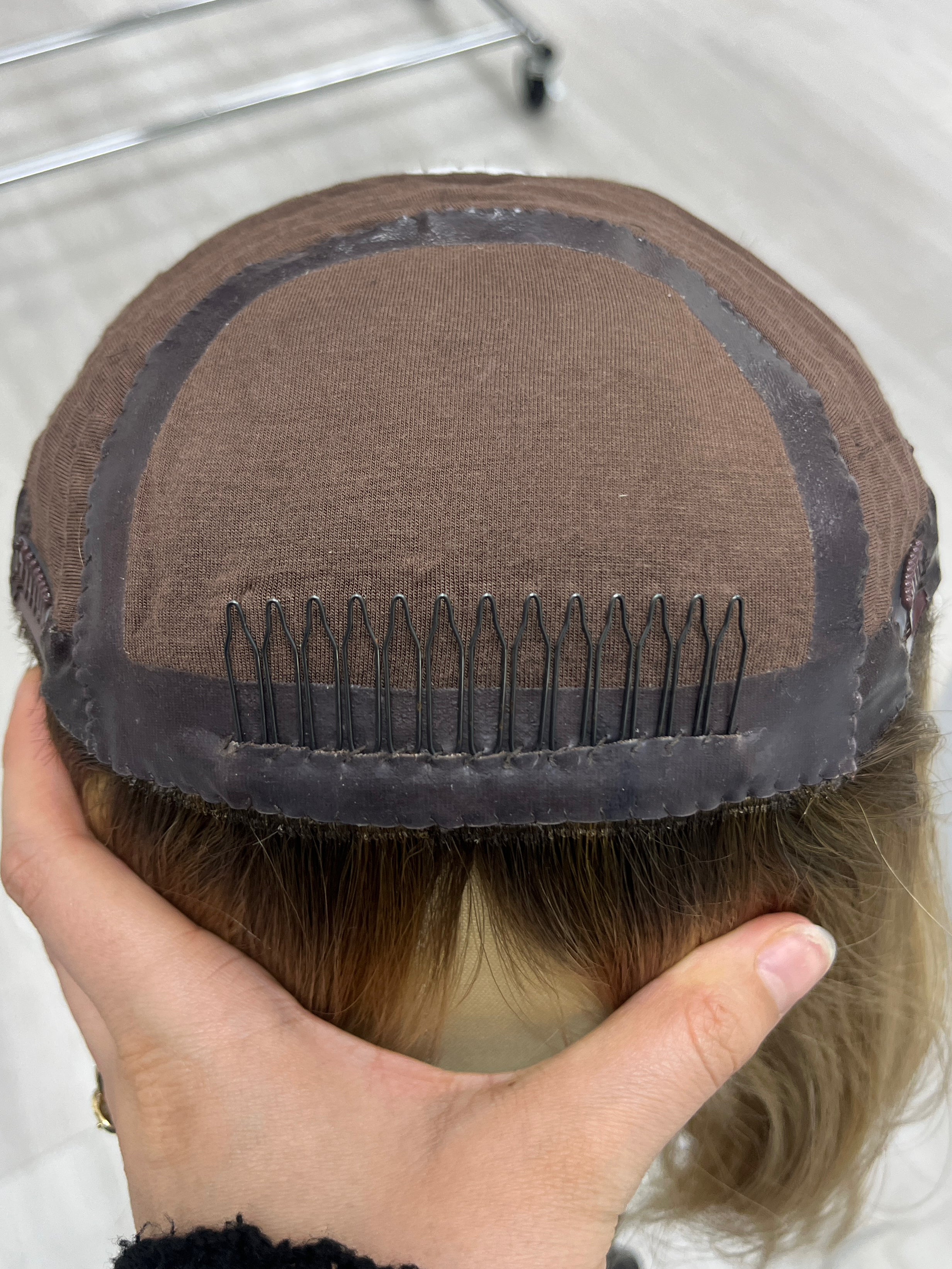 Other: Medium light density (about 120%). Wear and tear on the clips, front comb and silicone lining that does not affect the integrity of the piece. Seller added a haircut to this piece.