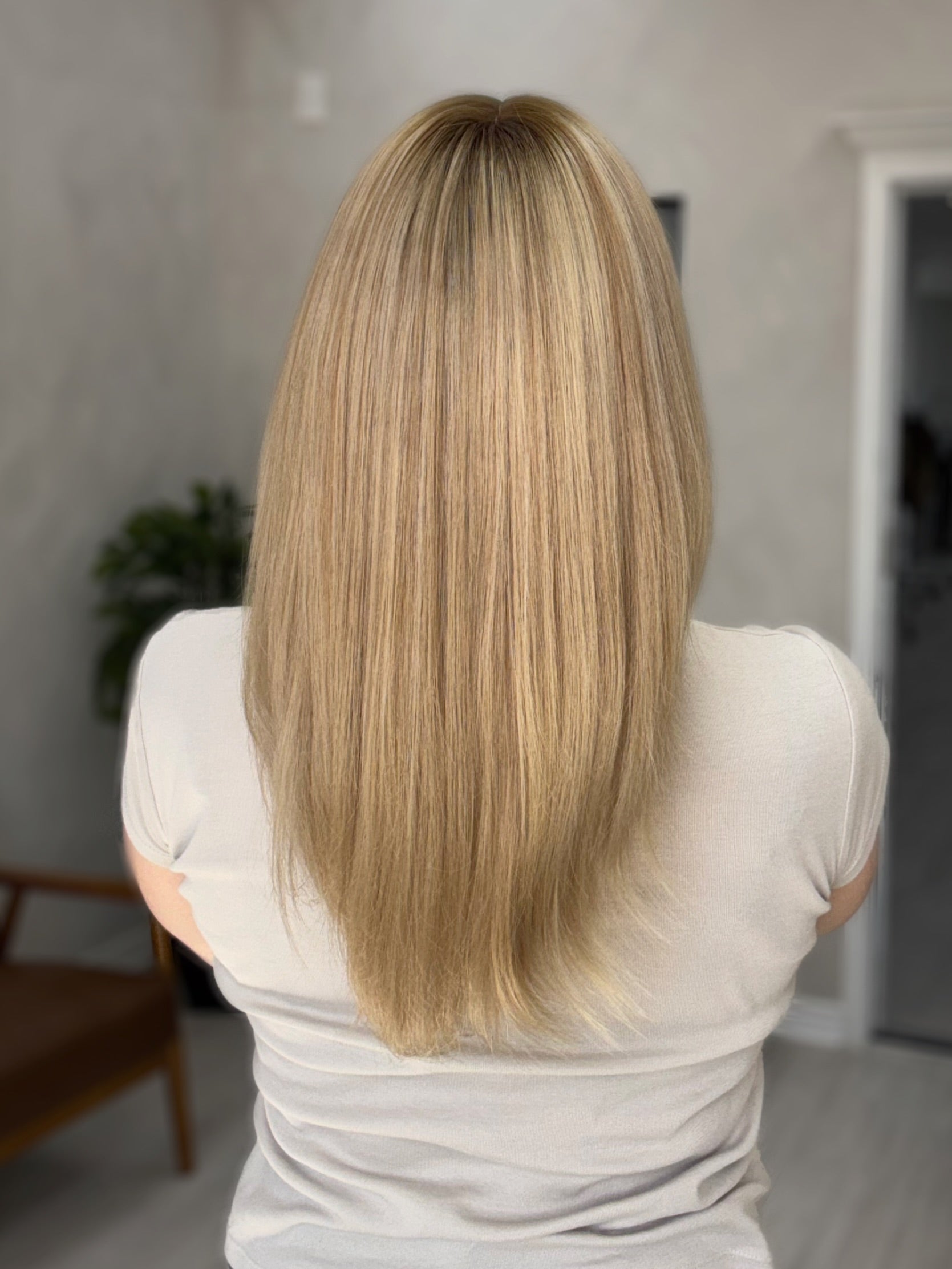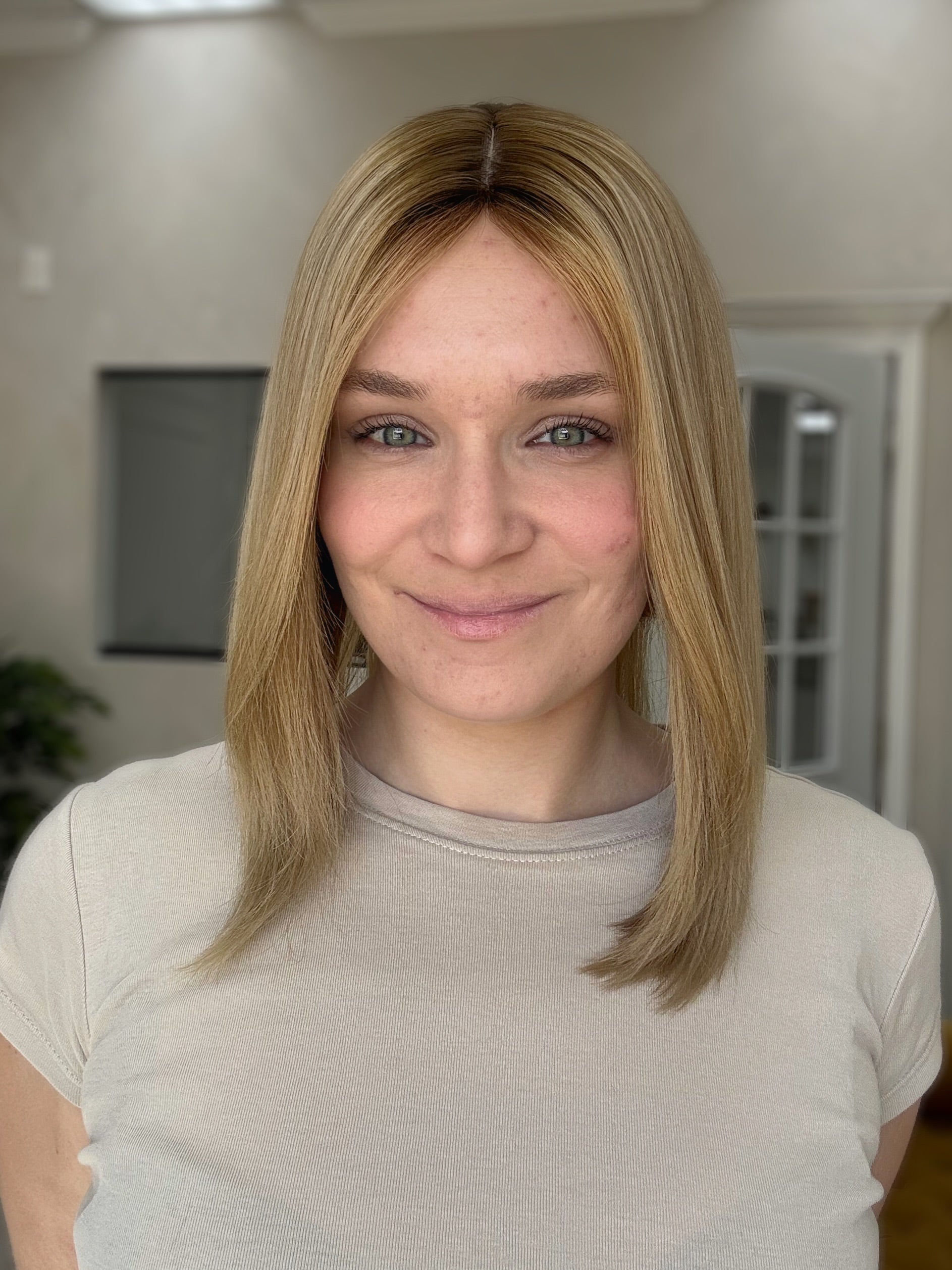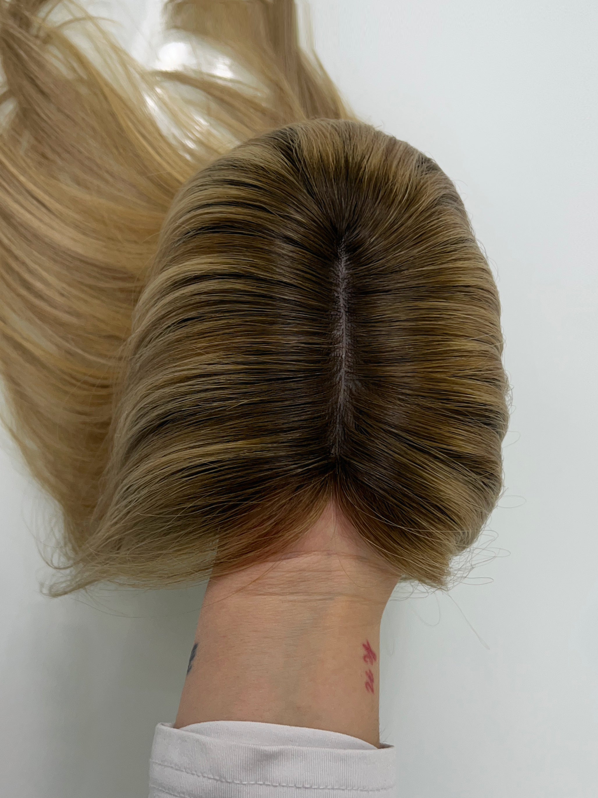 Considerations: There are a bit more return hairs than usual near the front - this gives a natural, realistic look when blended with your hair. However, if you do not prefer you can use a hot comb/wax stick/water spray bottle to pat them down further. The root and blend has oxidized a bit over time (with orange/green undertone on the root and a blue/purple undertone on the ashy blonde), you can take this piece to a professional to tone/neutralize. Overall, this piece is in good condition.