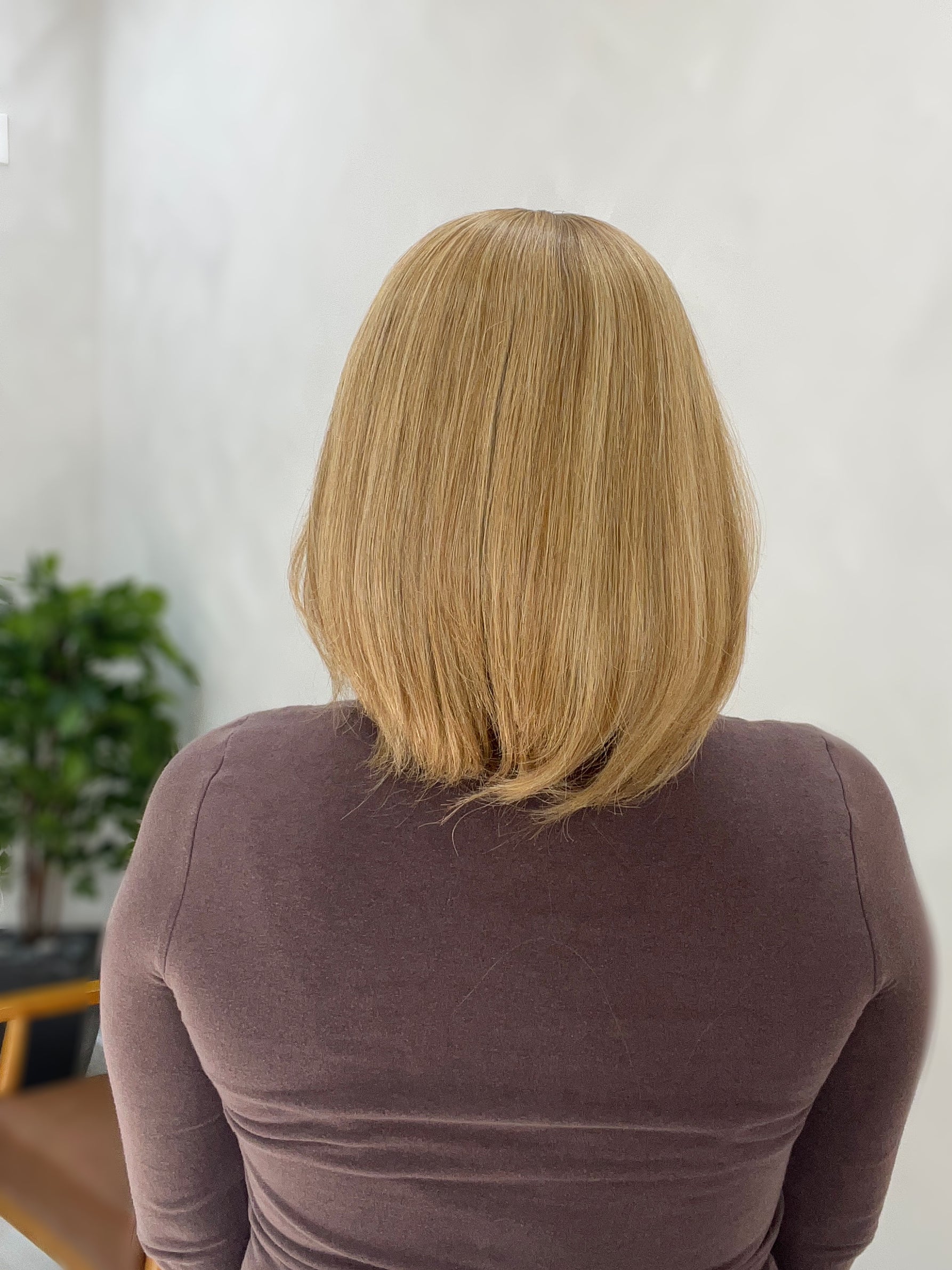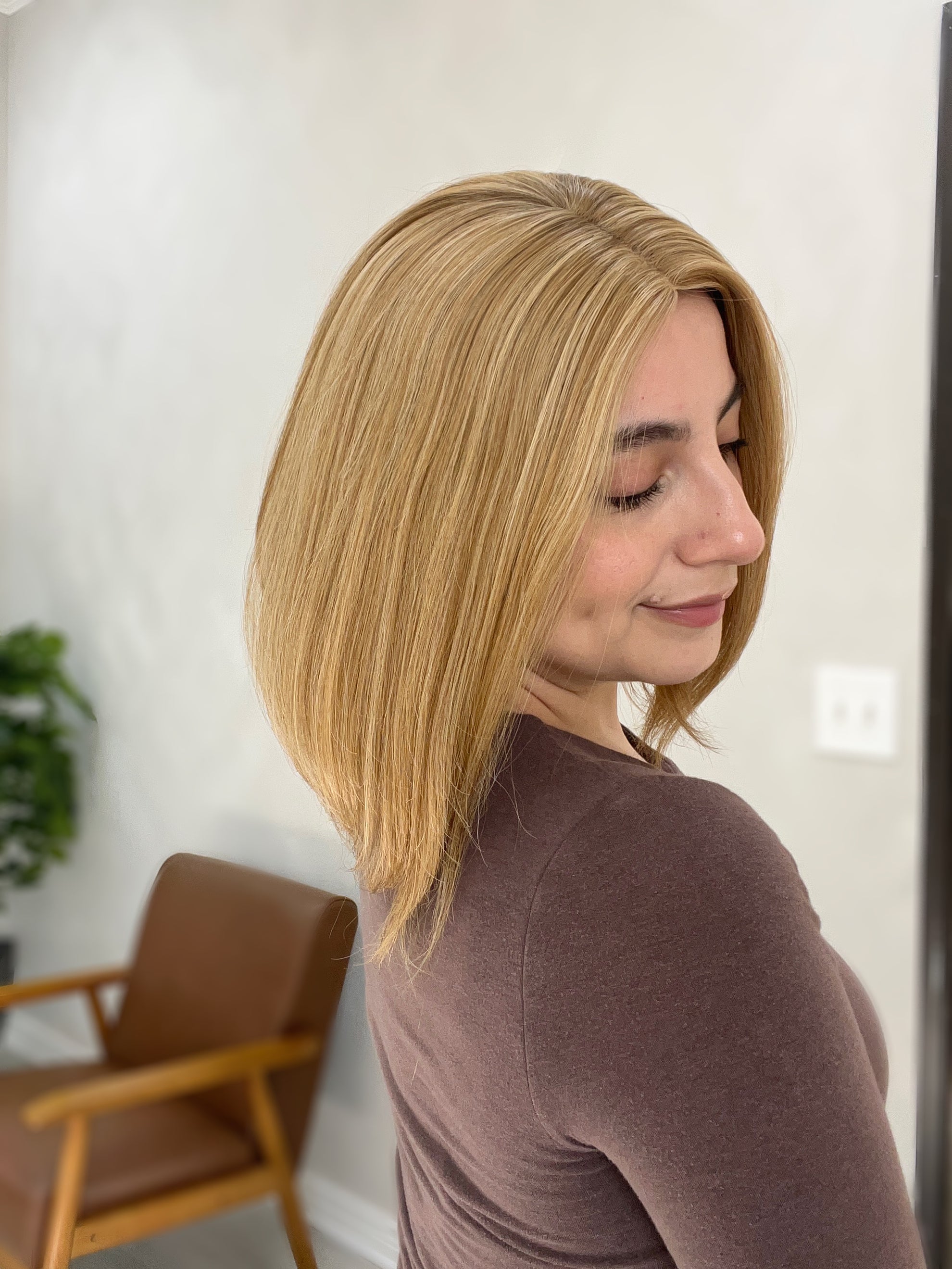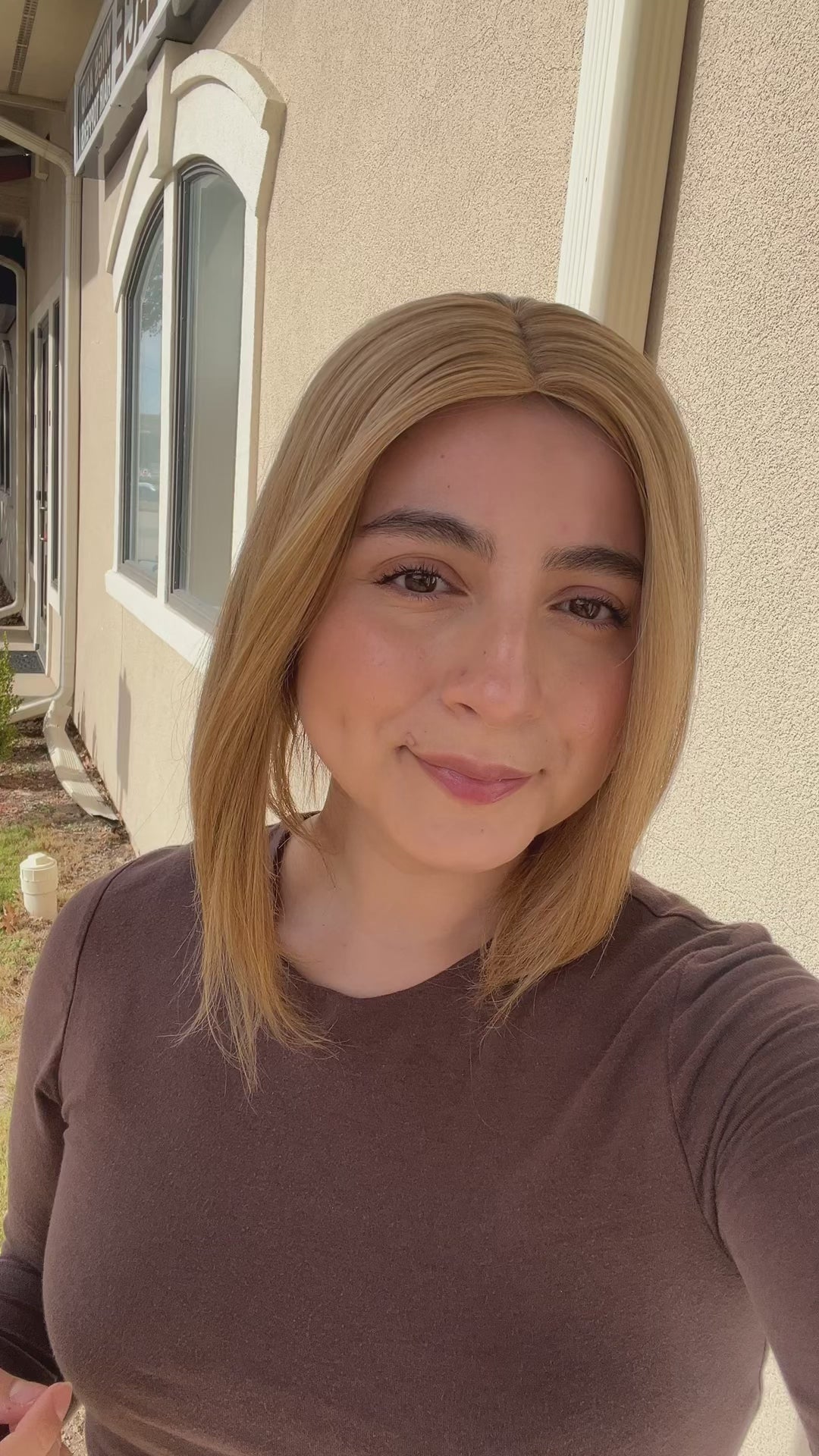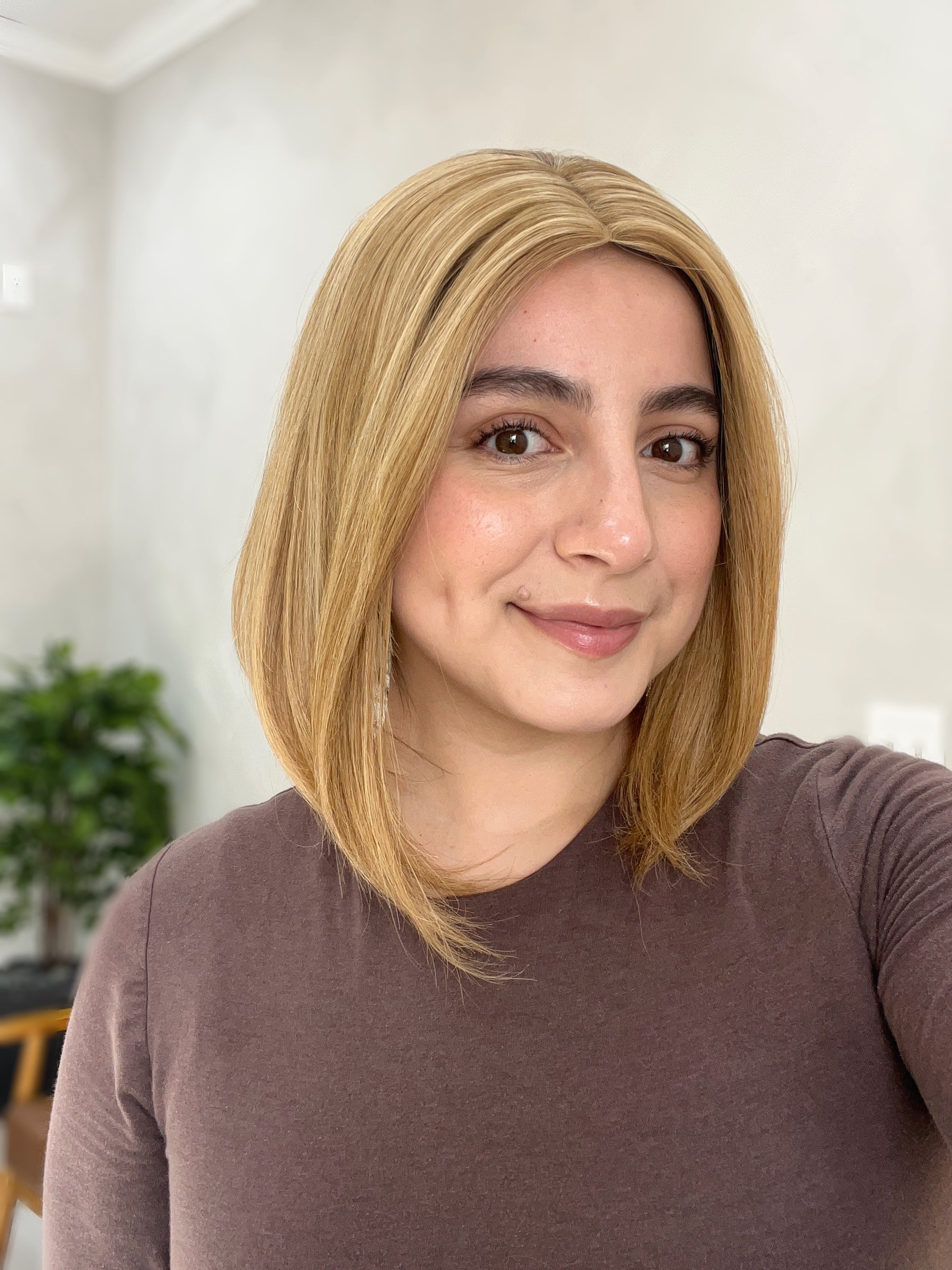 Color: Dimensional medium sandy blonde with levels 8/10/14 and a short darker shadow root