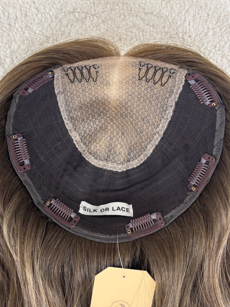 Silk or Lace Collection closed lace hair toppers function as your hair, but better! They are ultra low density, lightweight, and have a paper thin rim for an easy seamless, realistic blend for every day wear. Take note of our carefully designed details, such as our durable double lace, secure mini combs in front, and soft fine Brazilian hair!