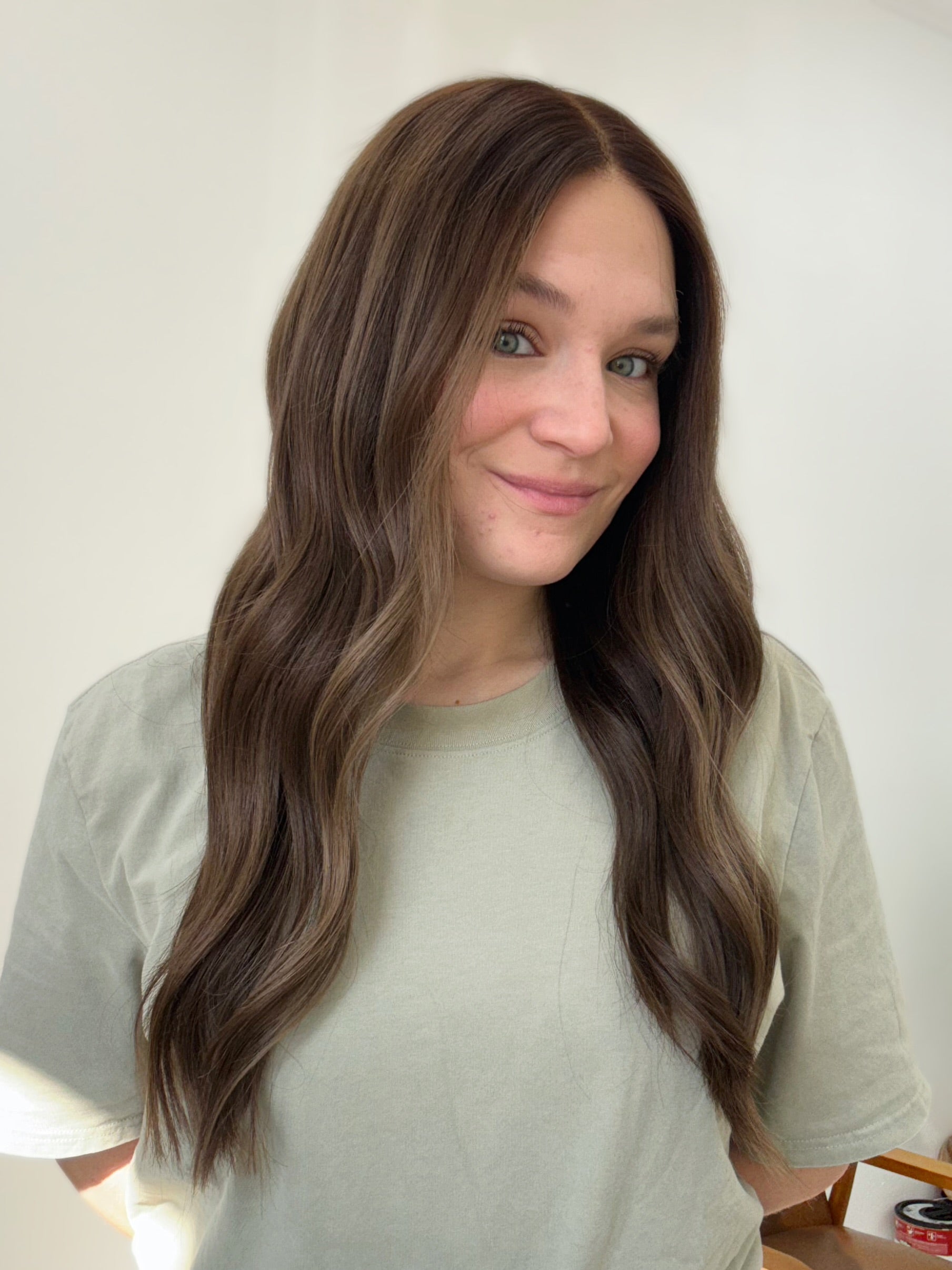 Millie is a perfect balance of classic and fashionable. She is more highlights vs balayage and has a more balanced dimension which makes her an approachable color. Leans warm-neutral.