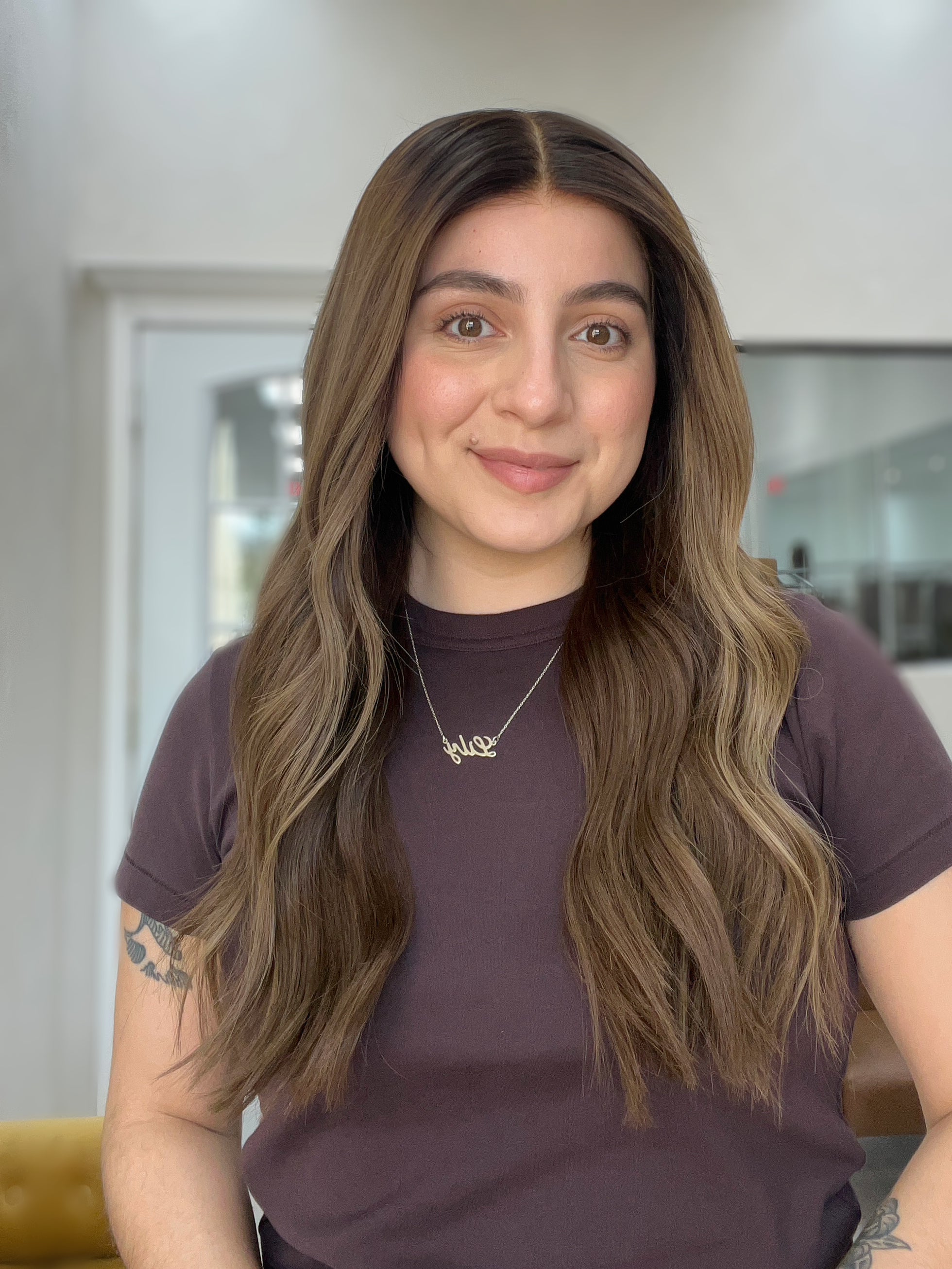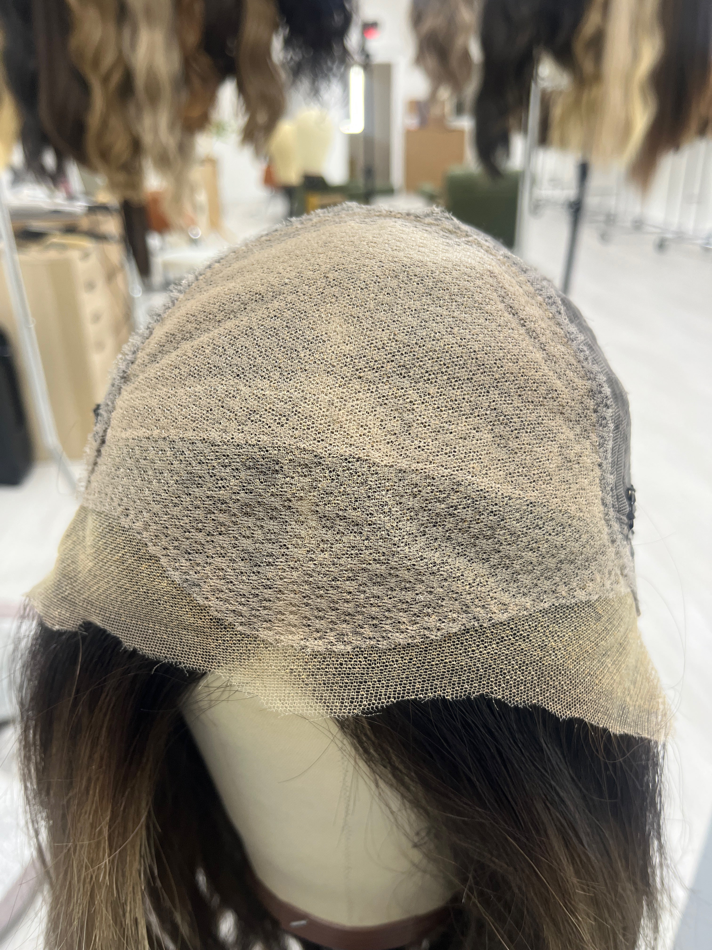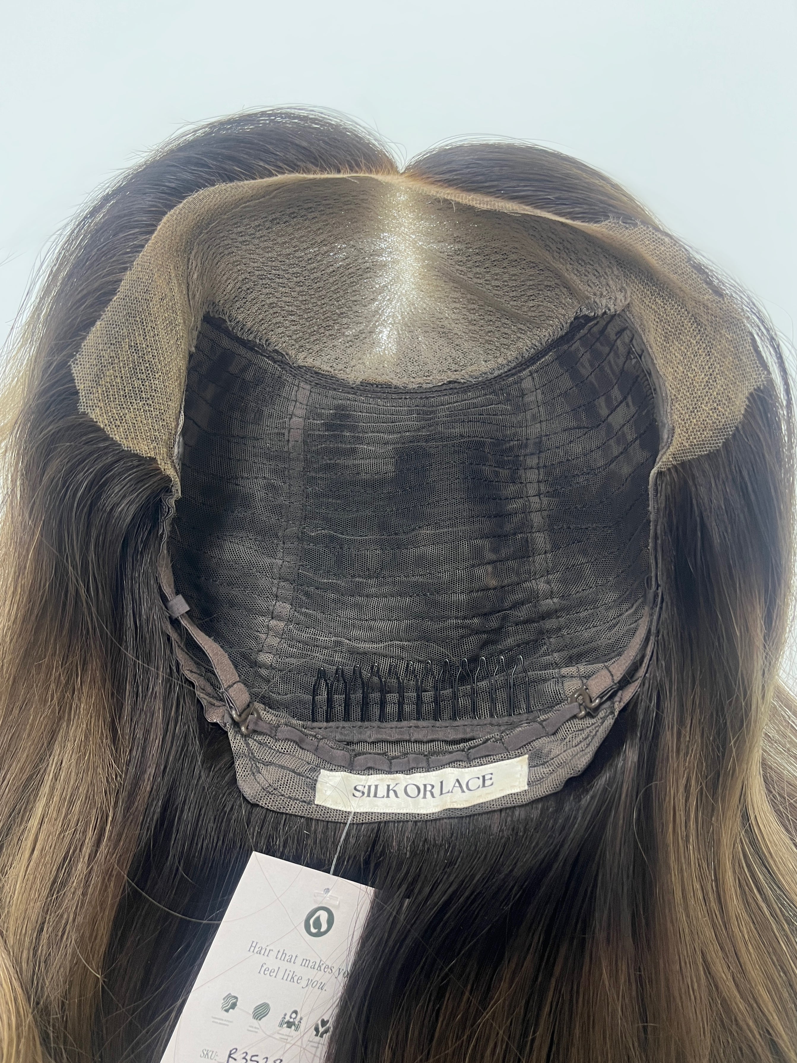A great Silk or Lace lace top wig find! The color "Millie" is the perfect balance of classic and fashionable. She is more highlights vs balayage and has a more balanced dimension which makes her an approachable color. Leans warm-neutral overall. This wig features longer layers and face framing making it have a lightweight feel. In great, like new condition with silky soft hair and a great discount.